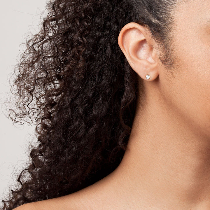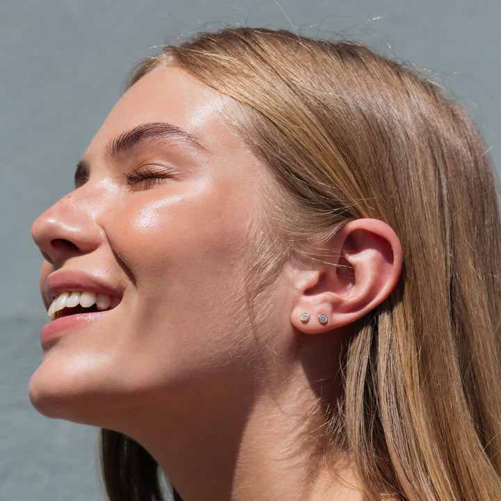 These XL Diamond Stud Earrings by Aurate in 18k gold offer the same stunning impact with a warmer, richer tone. The bezel-set design centers the conflict-free diamonds perfectly on the ear, exuding polish and confidence. A timeless choice with lasting sparkle.