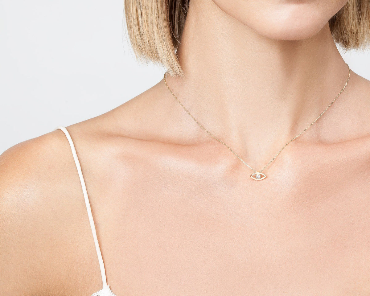 This Diamond Bezel Evil Eye Necklace by Aurate (18k) offers the same powerful design with an added richness in tone. The luminous gold and symbolic motif combine for a necklace that’s both protective and polished—an elevated everyday amulet.