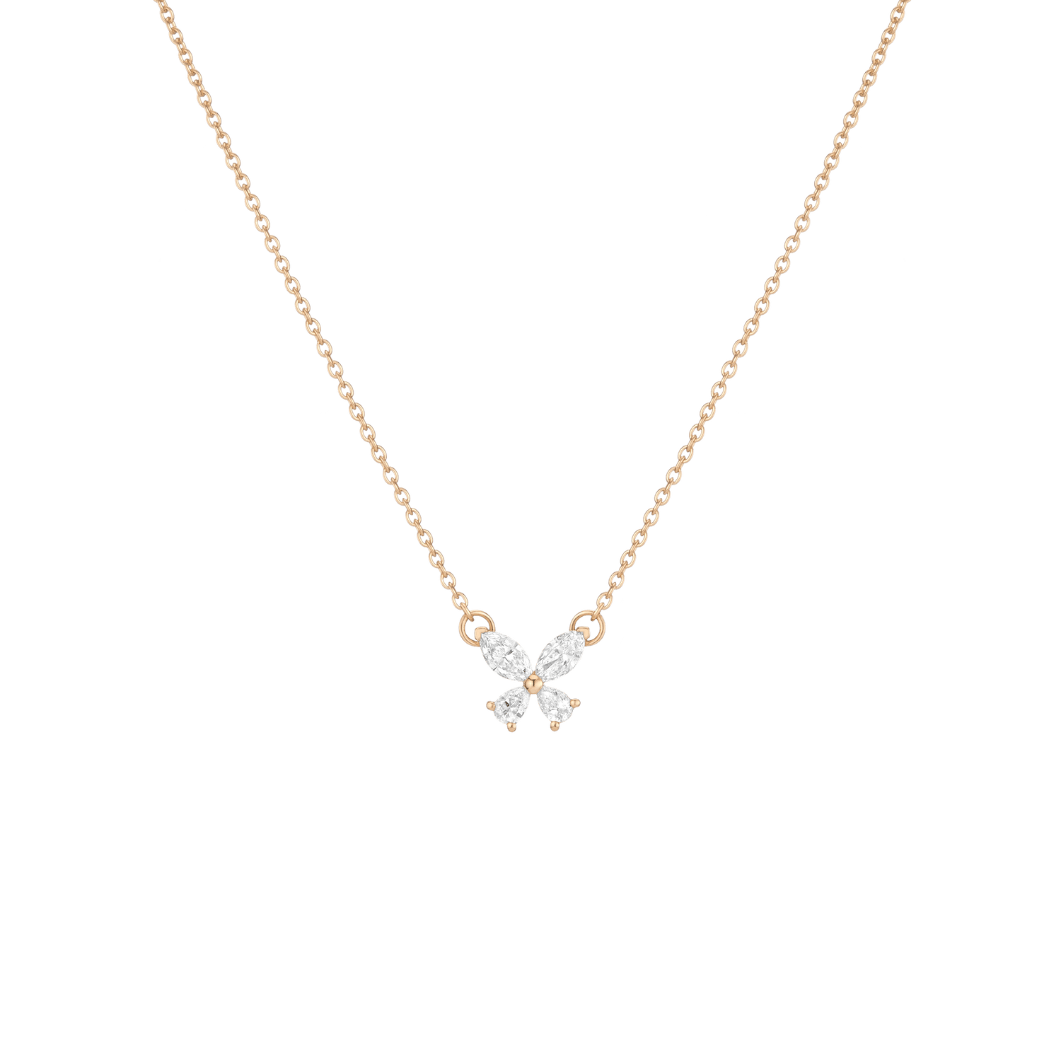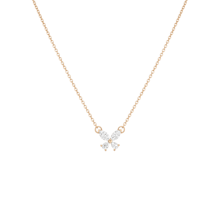 This Lab Grown Diamond Butterfly Necklace by Aurate is a poetic symbol of transformation. Four dazzling lab grown diamonds—two marquise, two pear—form a delicately symmetrical butterfly, sparkling with joyful movement. A meaningful and radiant addition to your jewelry story.