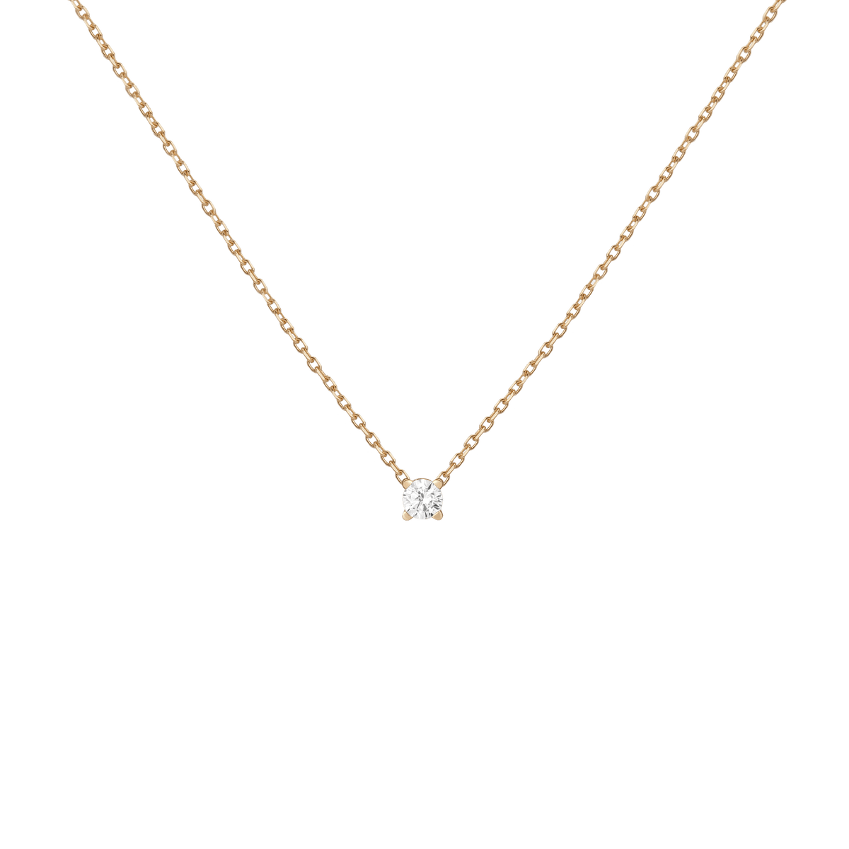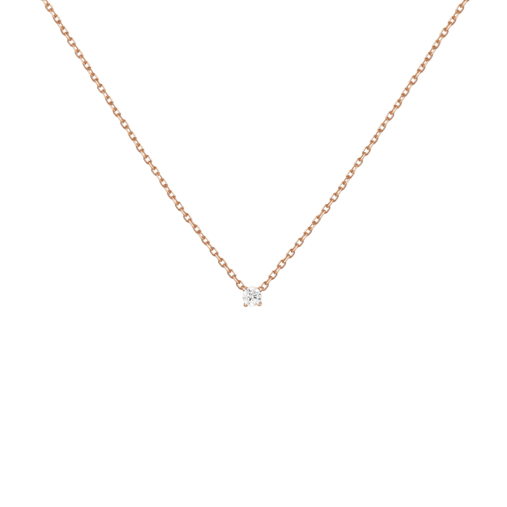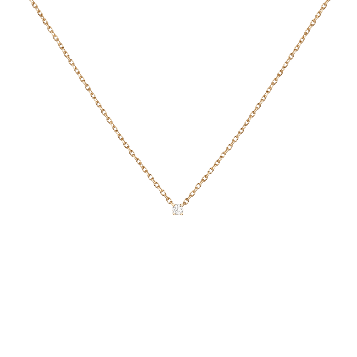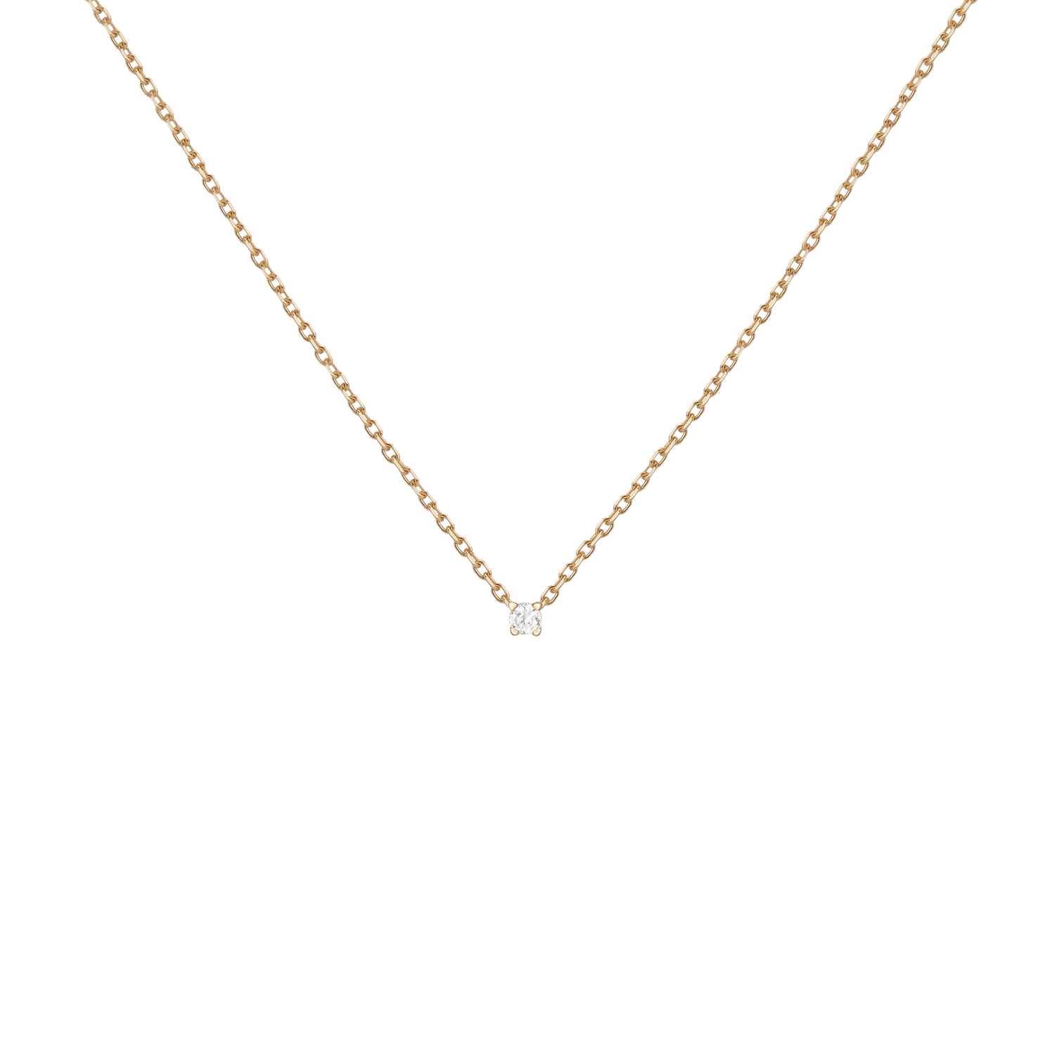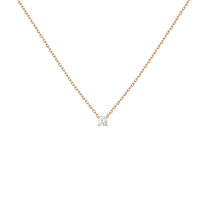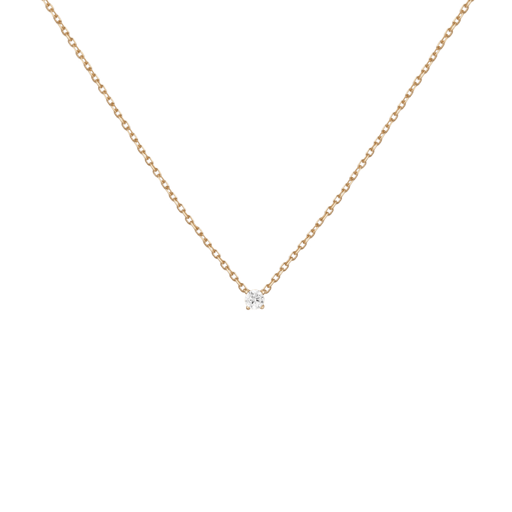 Handcrafted in 14k solid gold with GH SI-quality lab-grown round diamonds. Set in a light basket on an 18' diamond cut cable chain with 15' jump ring and spring ring clasp. Available in: 0.06ct (2.5mm), 0.12ct (3mm), 0.22ct (4mm), 0.5ct (5mm). Total necklace weight: 4.0g.