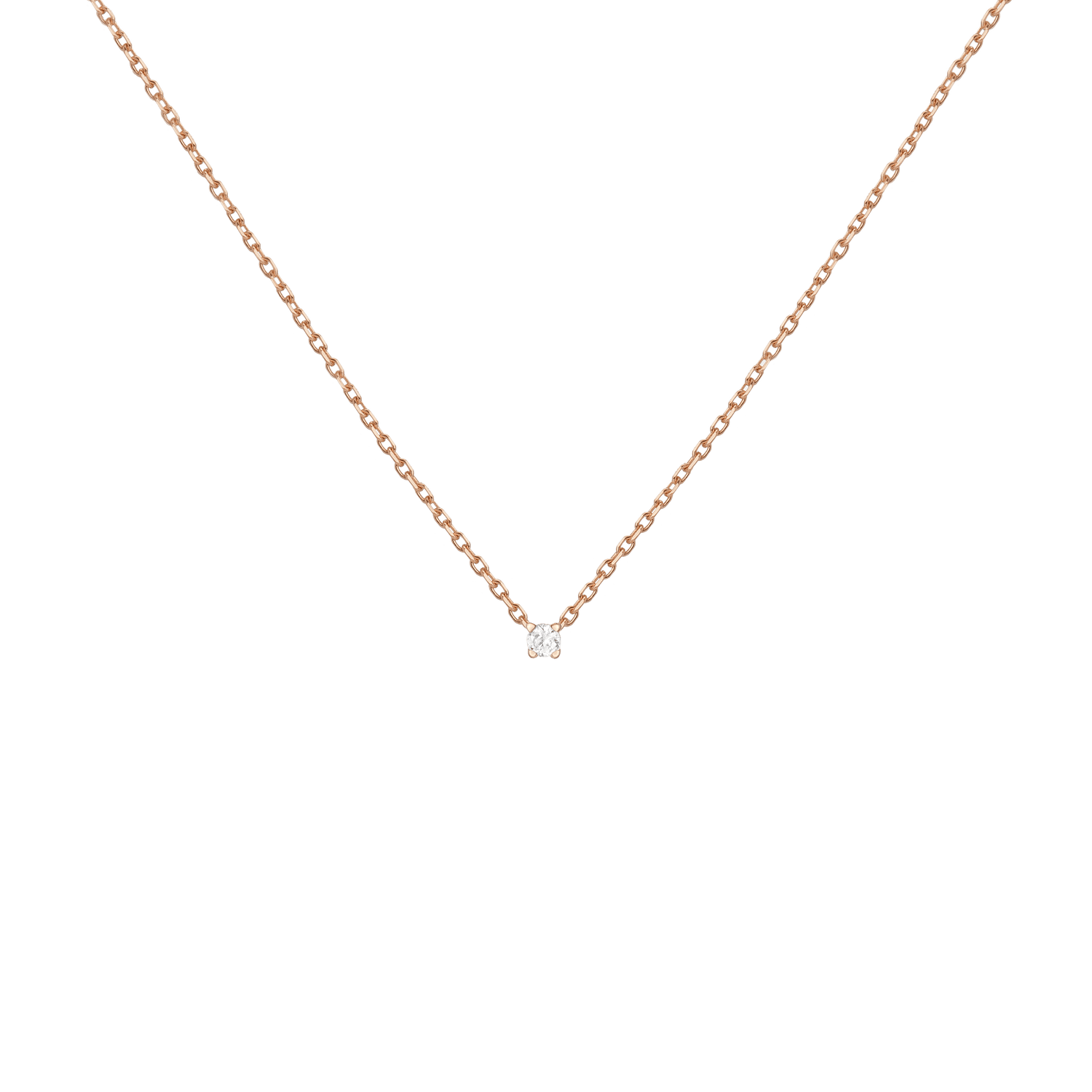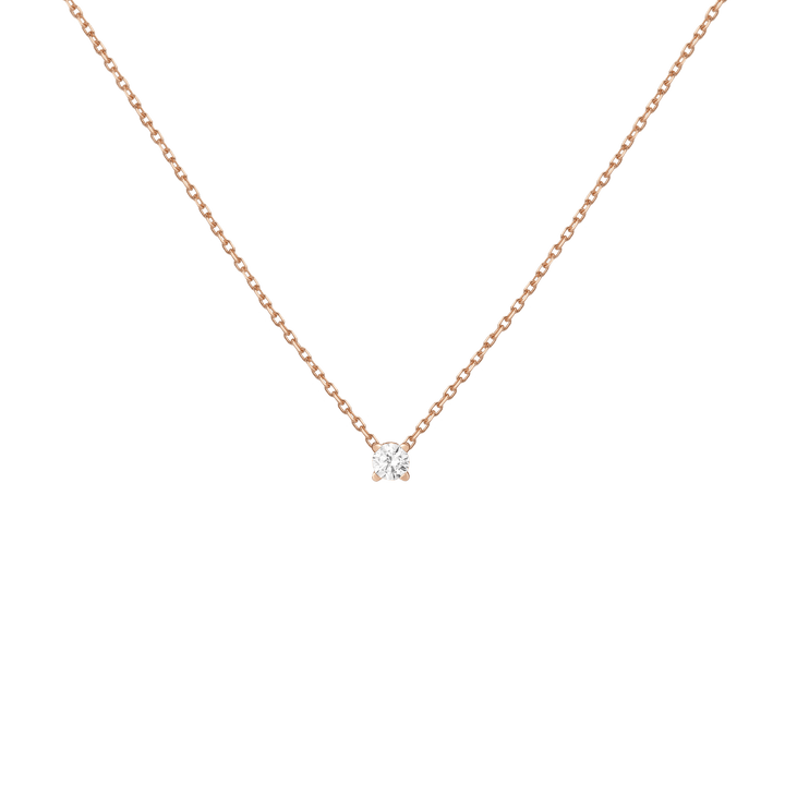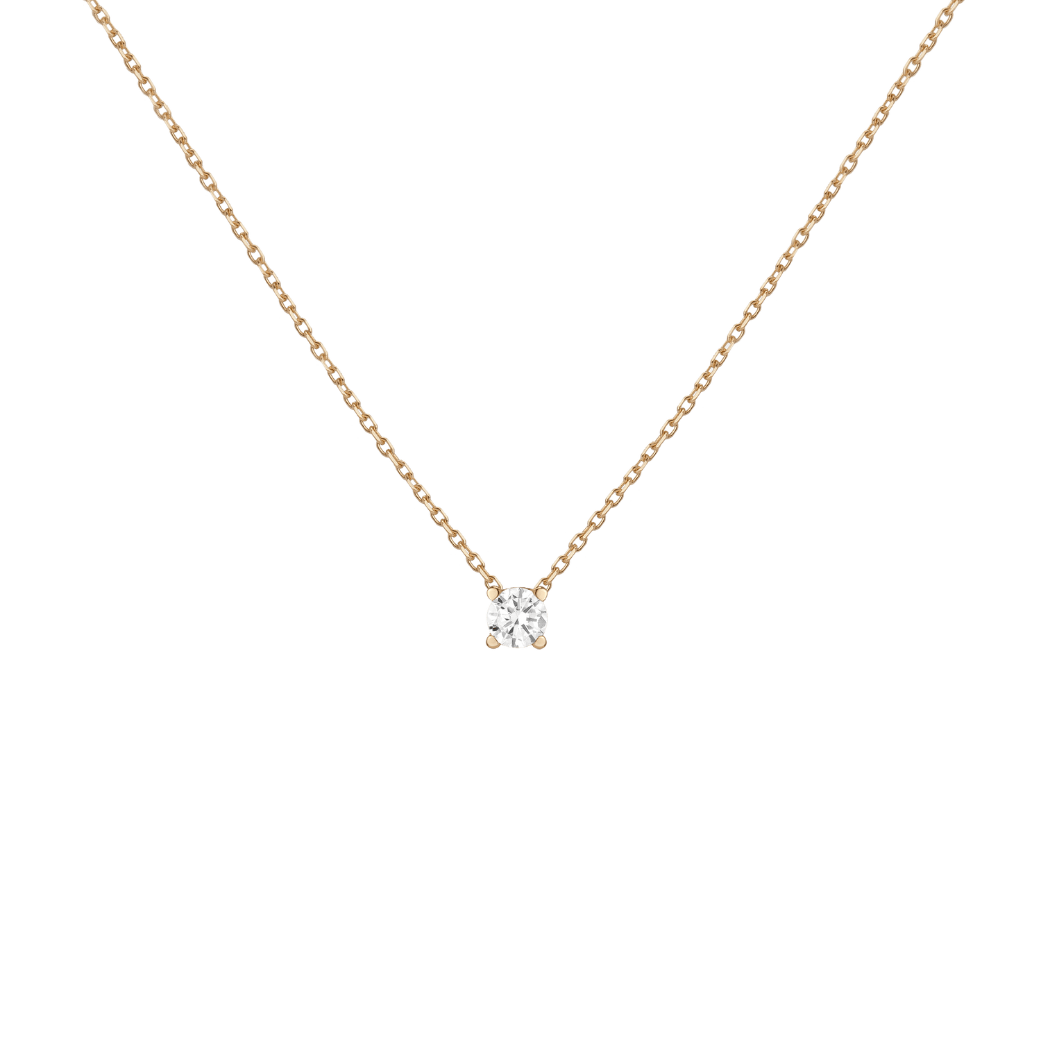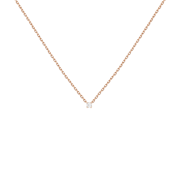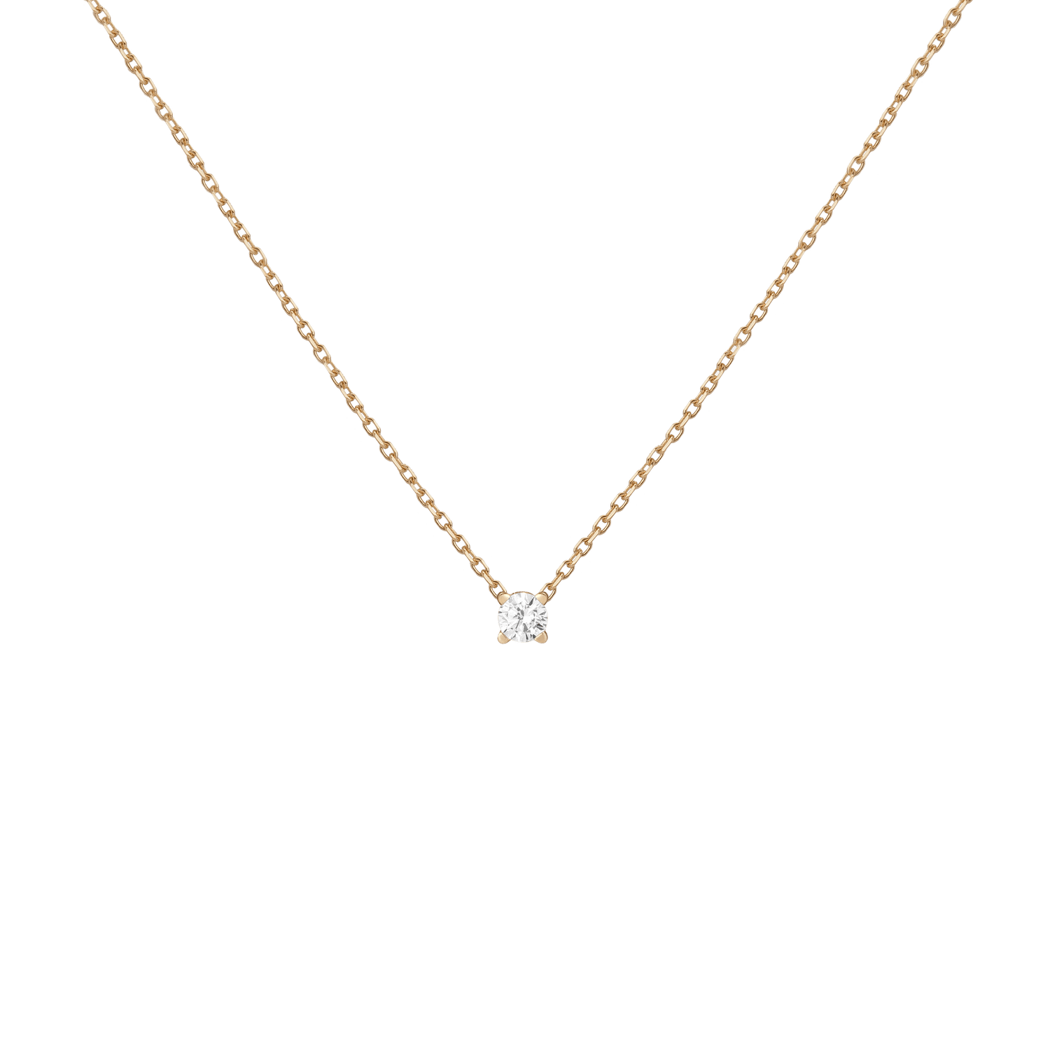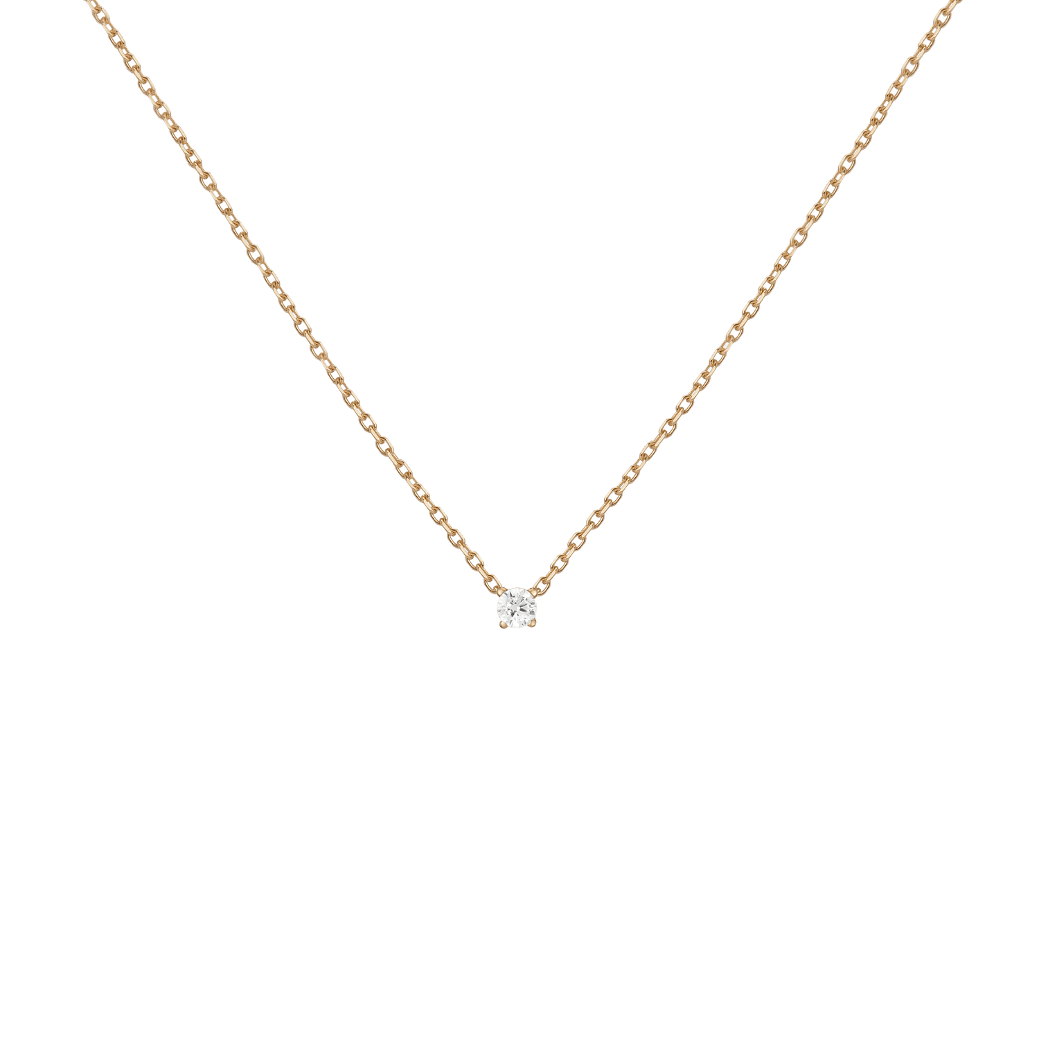 Handcrafted in 14k solid gold with GH SI-quality lab-grown round diamonds. Set in a light basket on an 18' diamond cut cable chain with 15' jump ring and spring ring clasp. Available in: 0.06ct (2.5mm), 0.12ct (3mm), 0.22ct (4mm), 0.5ct (5mm). Total necklace weight: 4.0g.