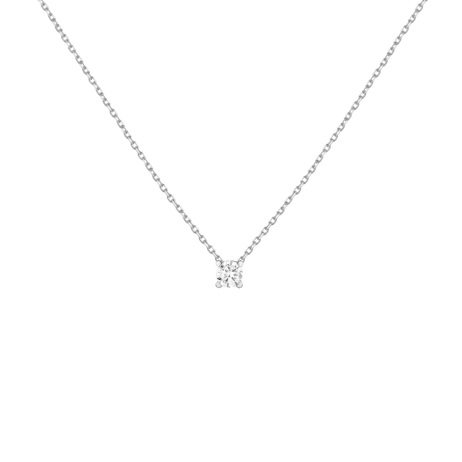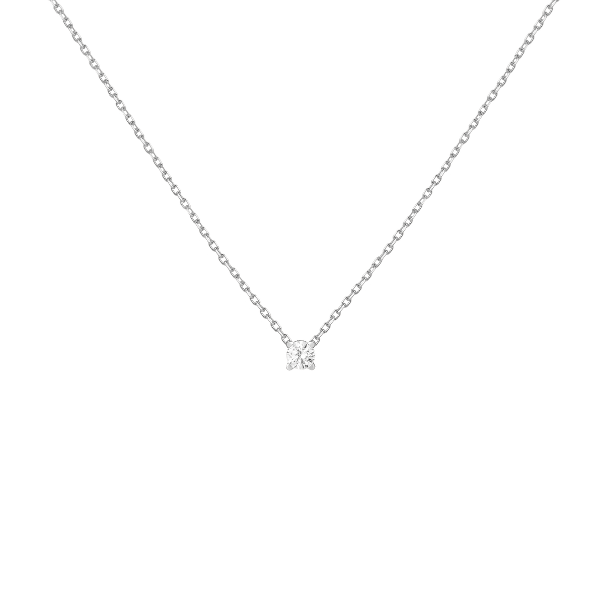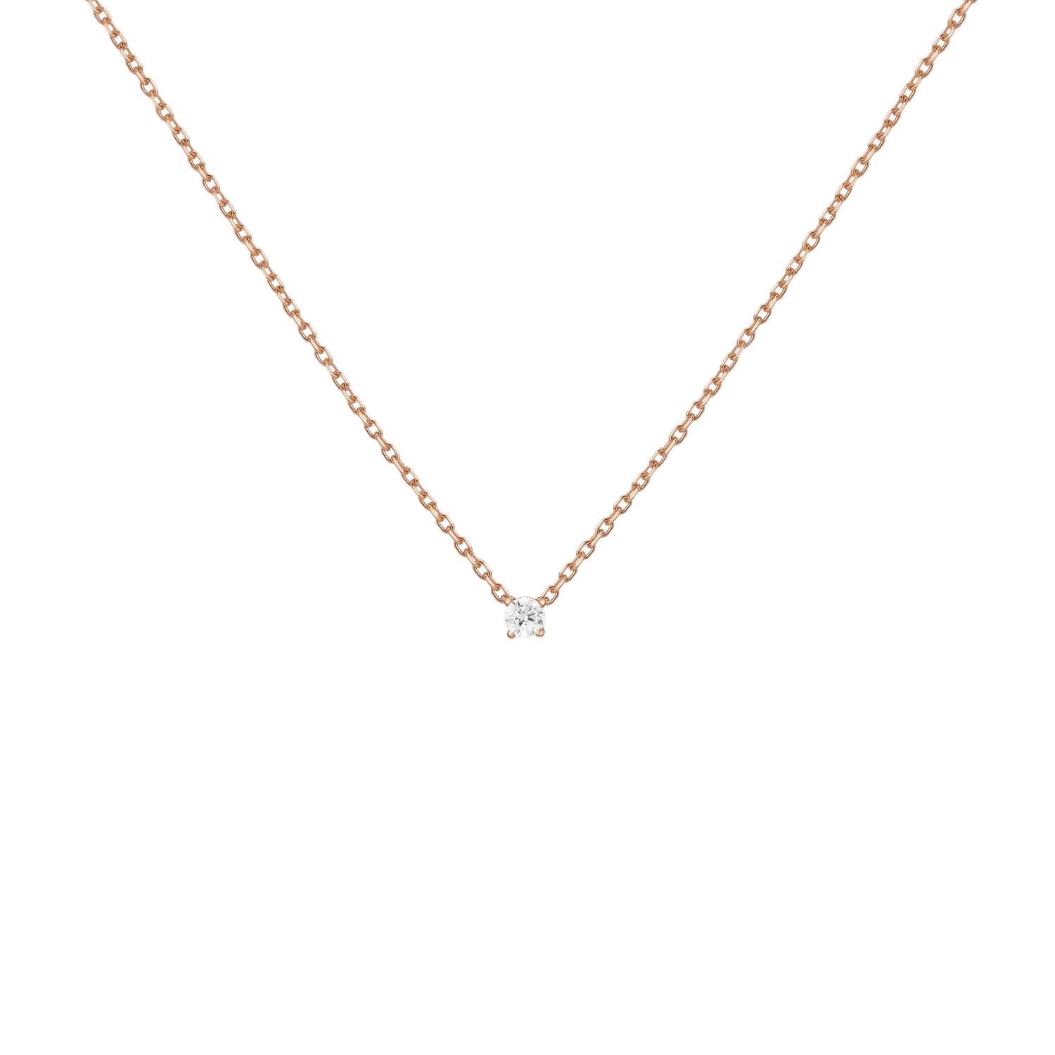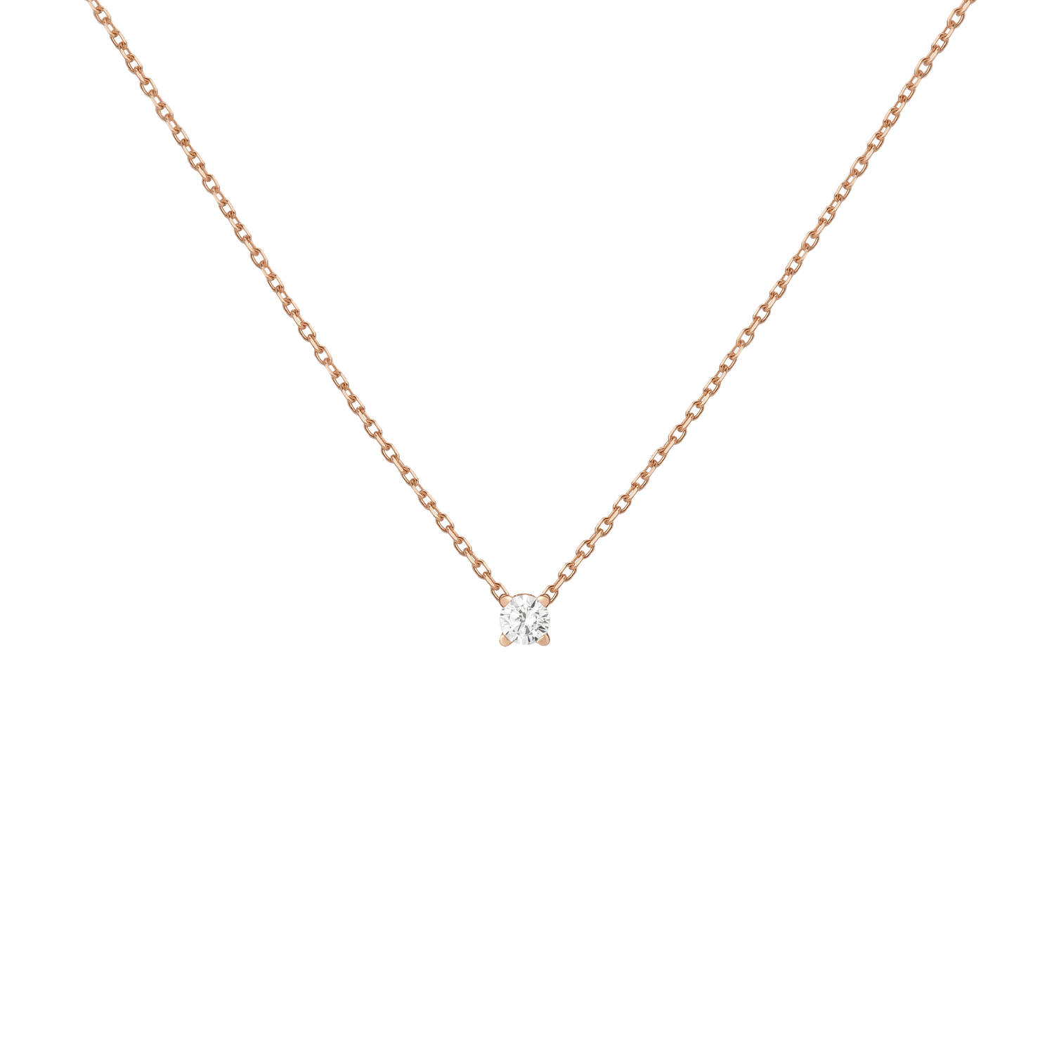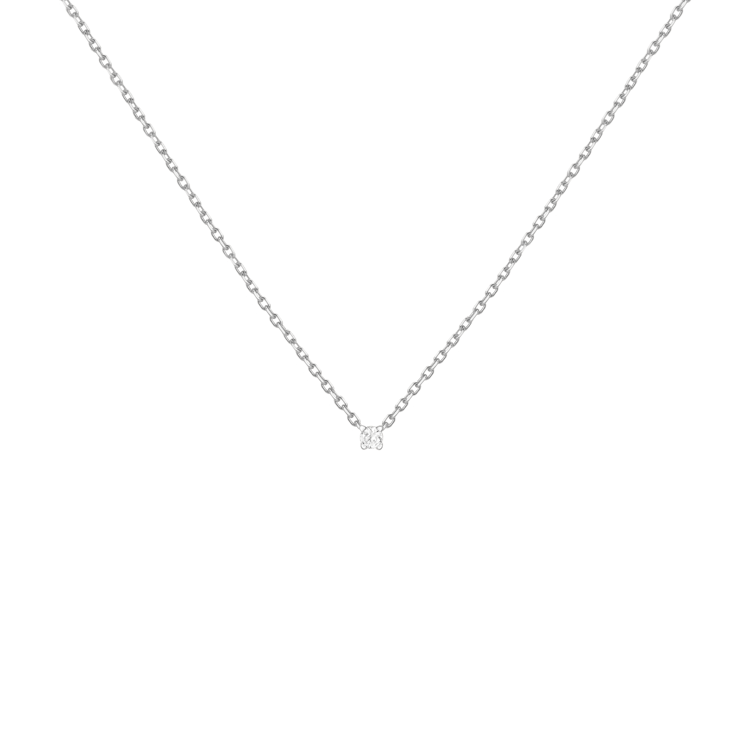 Handcrafted in 14k solid gold with GH SI-quality lab-grown round diamonds. Set in a light basket on an 18' diamond cut cable chain with 15' jump ring and spring ring clasp. Available in: 0.06ct (2.5mm), 0.12ct (3mm), 0.22ct (4mm), 0.5ct (5mm). Total necklace weight: 4.0g.