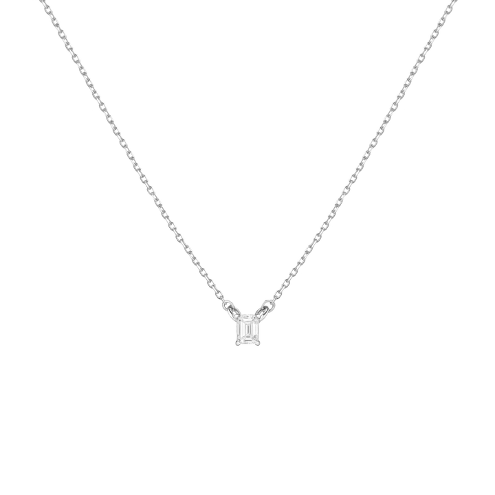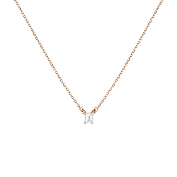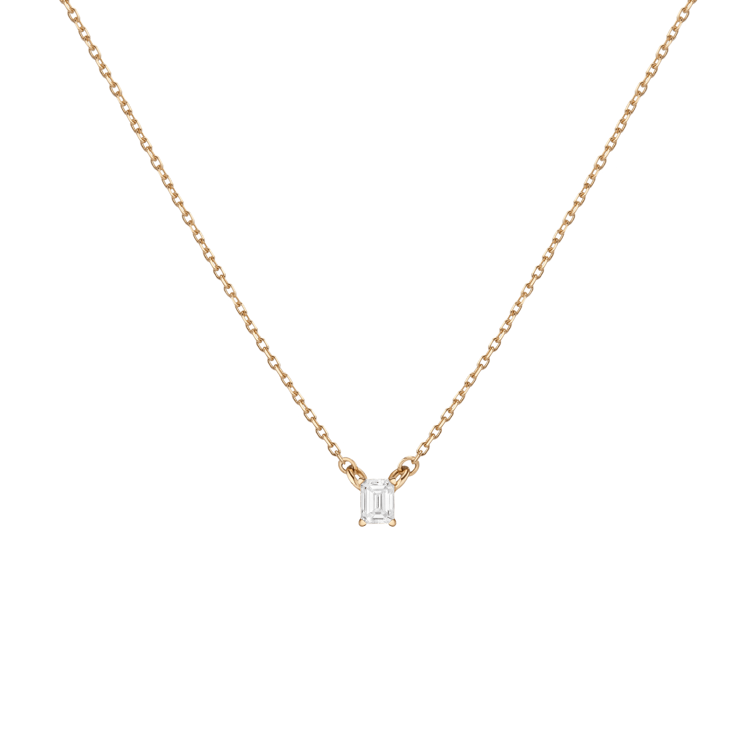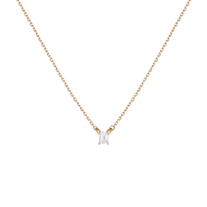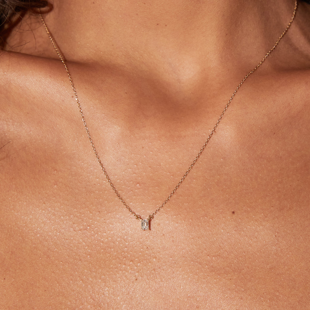 This Emerald Lab Grown Diamond Solitaire Necklace by Aurate is a bold nod to vintage glamour with a modern soul. The emerald-cut diamond, sleek and architectural, gleams against a delicate gold chain. With clean lines and captivating depth, this necklace balances strength and refinement—a powerful piece to anchor your stack.