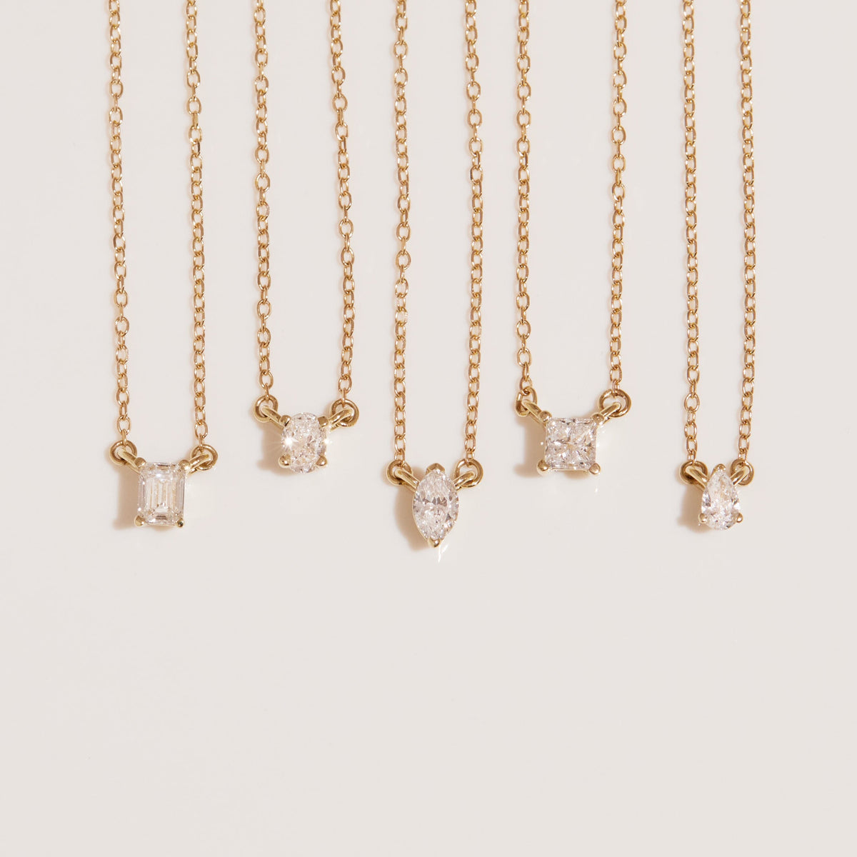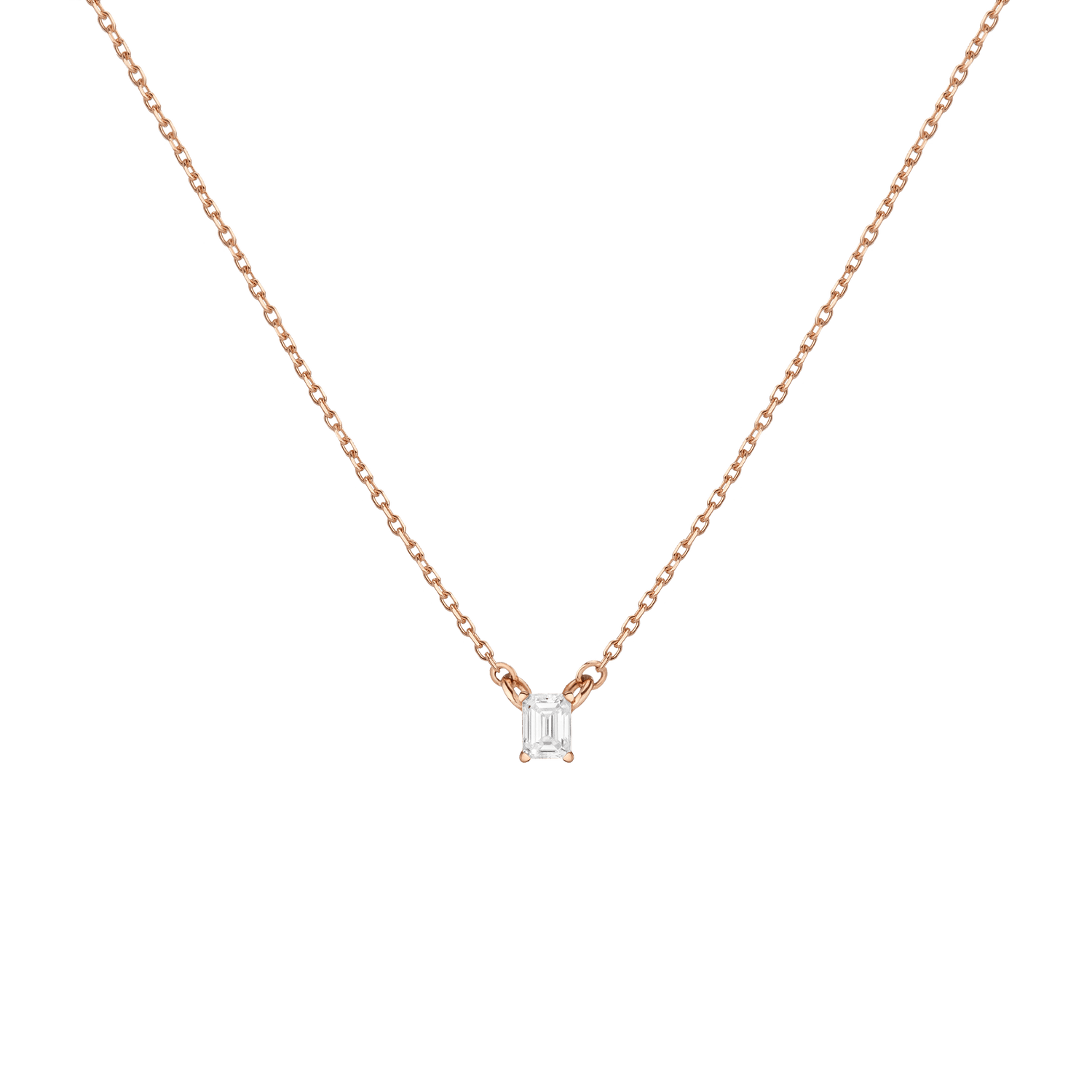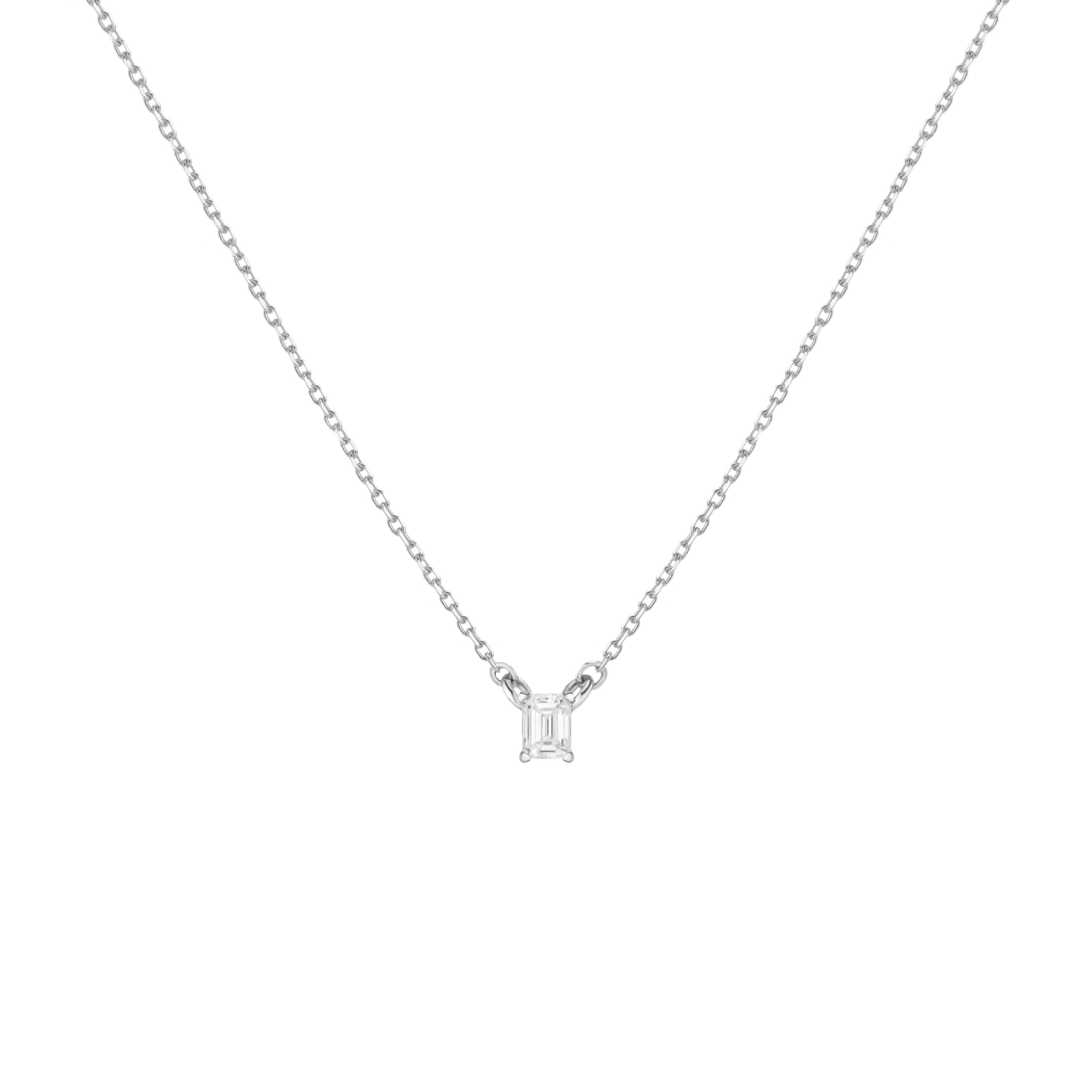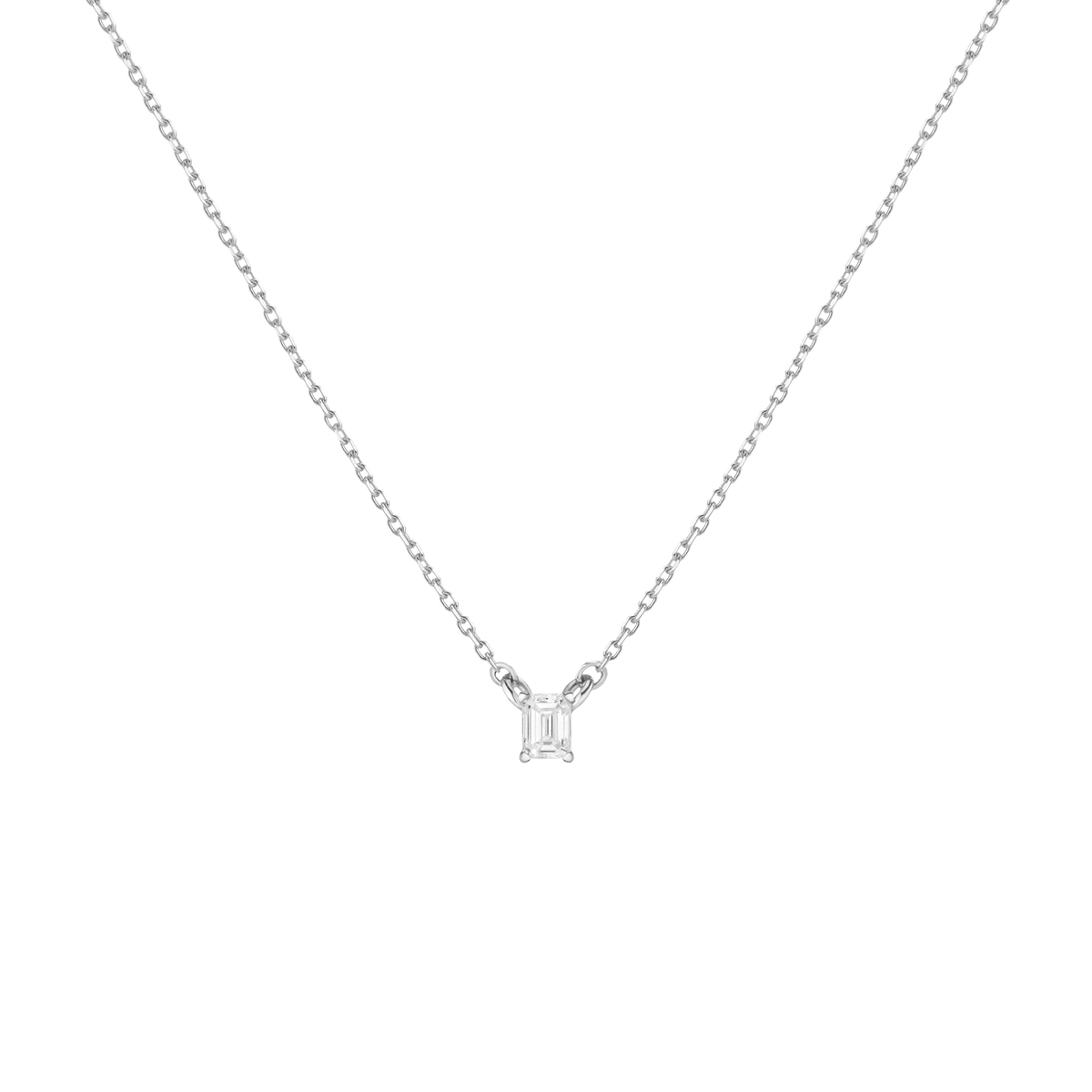 This Emerald Lab Grown Diamond Solitaire Necklace by Aurate is a bold nod to vintage glamour with a modern soul. The emerald-cut diamond, sleek and architectural, gleams against a delicate gold chain. With clean lines and captivating depth, this necklace balances strength and refinement—a powerful piece to anchor your stack.