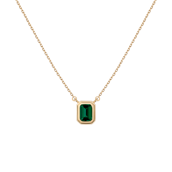 This Lab Grown Emerald Heirloom Necklace by Aurate (Vermeil) mirrors the vintage-meets-modern silhouette in a more accessible finish. With the same luminous emerald and heirloom-style bezel, it brings grace, depth, and richness to every look.
