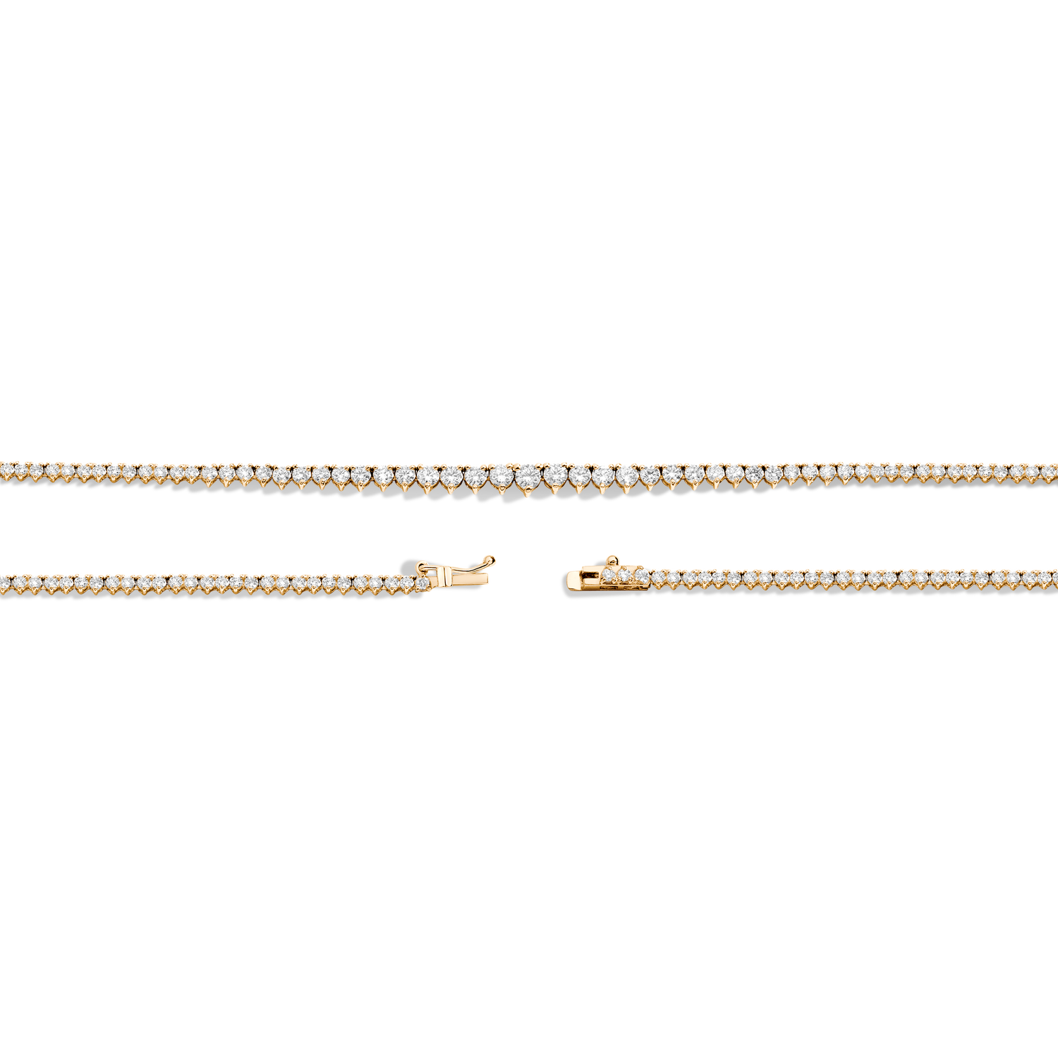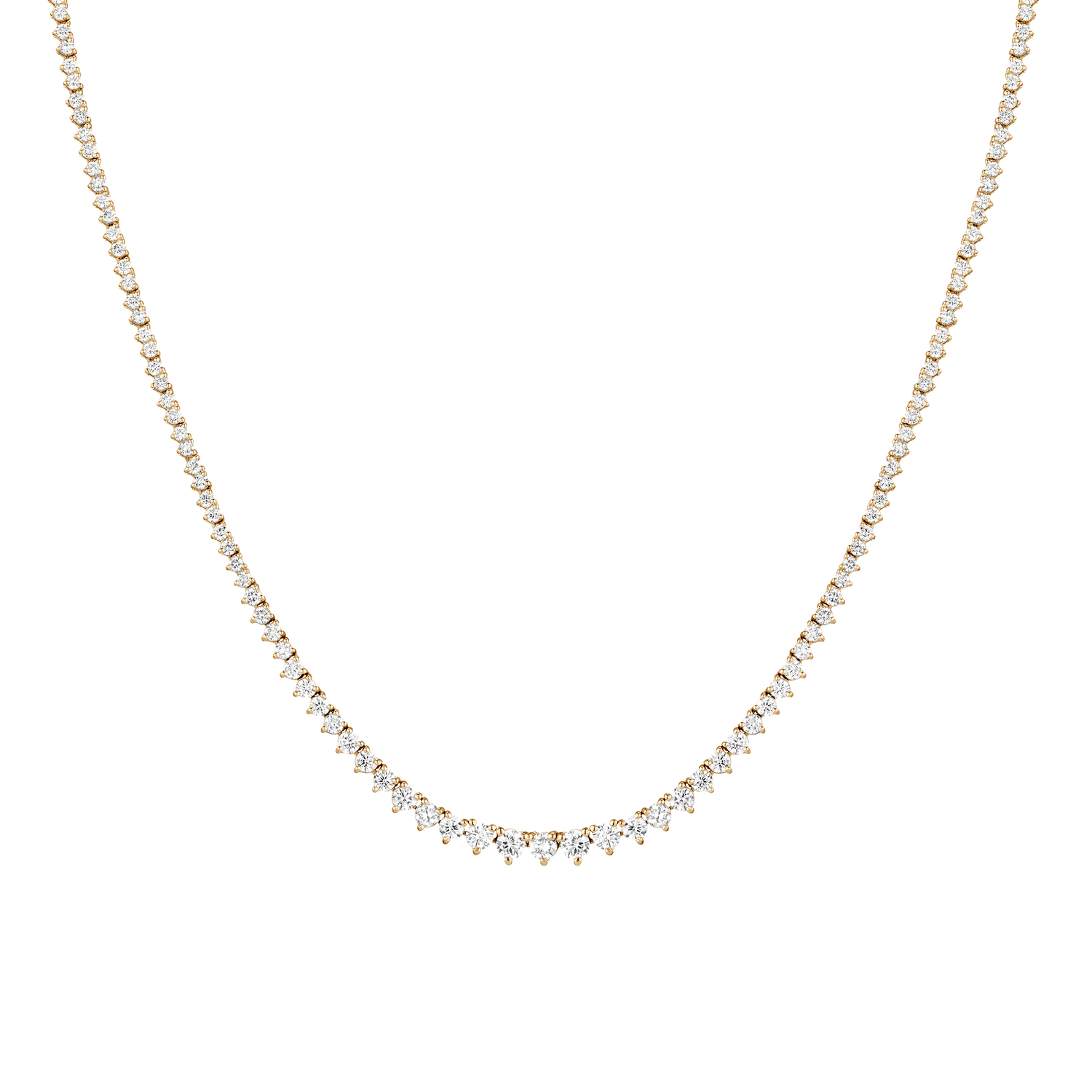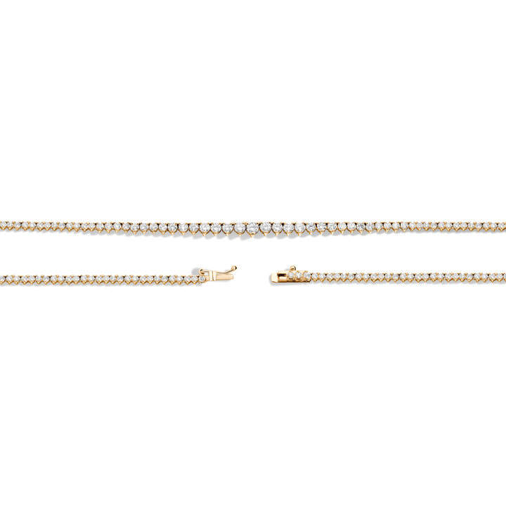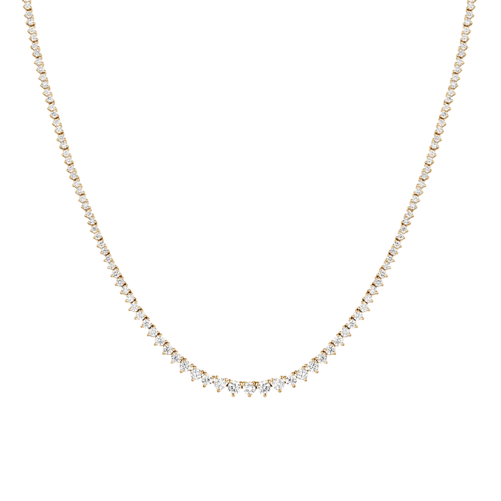 This Everyday Three-Prong Graduated Tennis Necklace by Aurate in 14k gold delivers quiet luxury through lab grown diamonds arranged in a refined three-prong setting. The graduated design adds depth and elegance, anchored by a secure box clasp—an exquisite staple for elevated minimalism.