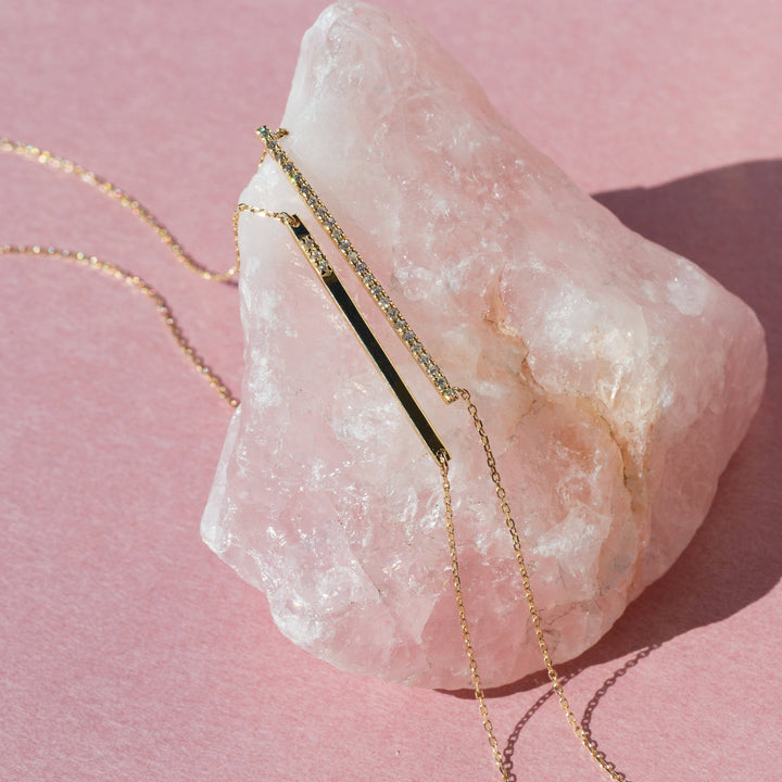 Gold Bar Necklace With Diamonds