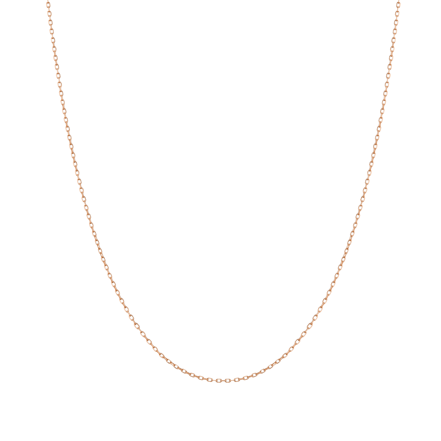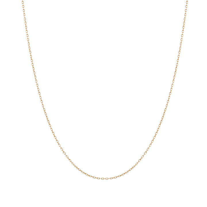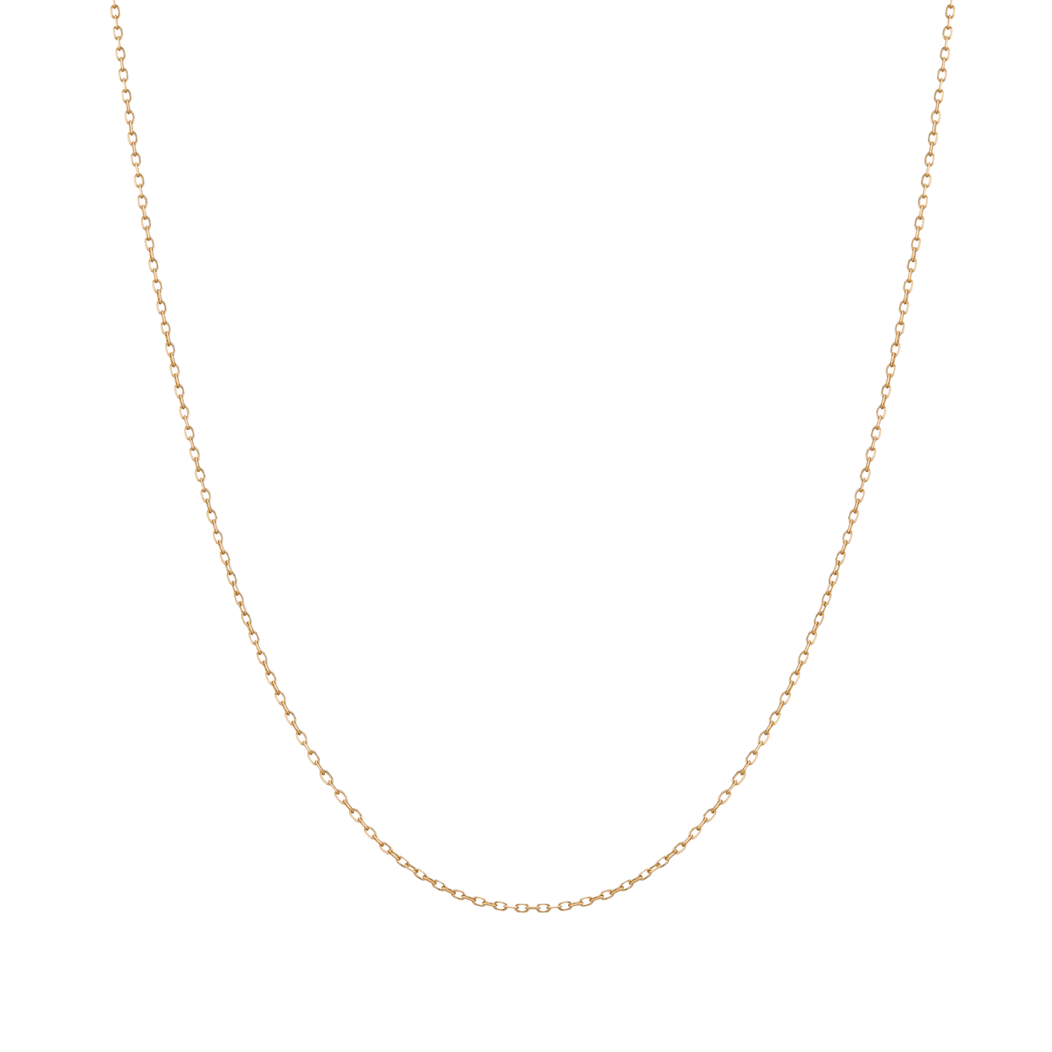 Handcrafted in 14-karat gold. Features a 0.9mm diamond-cut cable chain, 18'' in length with an extra jump ring at 15''. Weight: 0.9g. Secured by a spring ring clasp.
