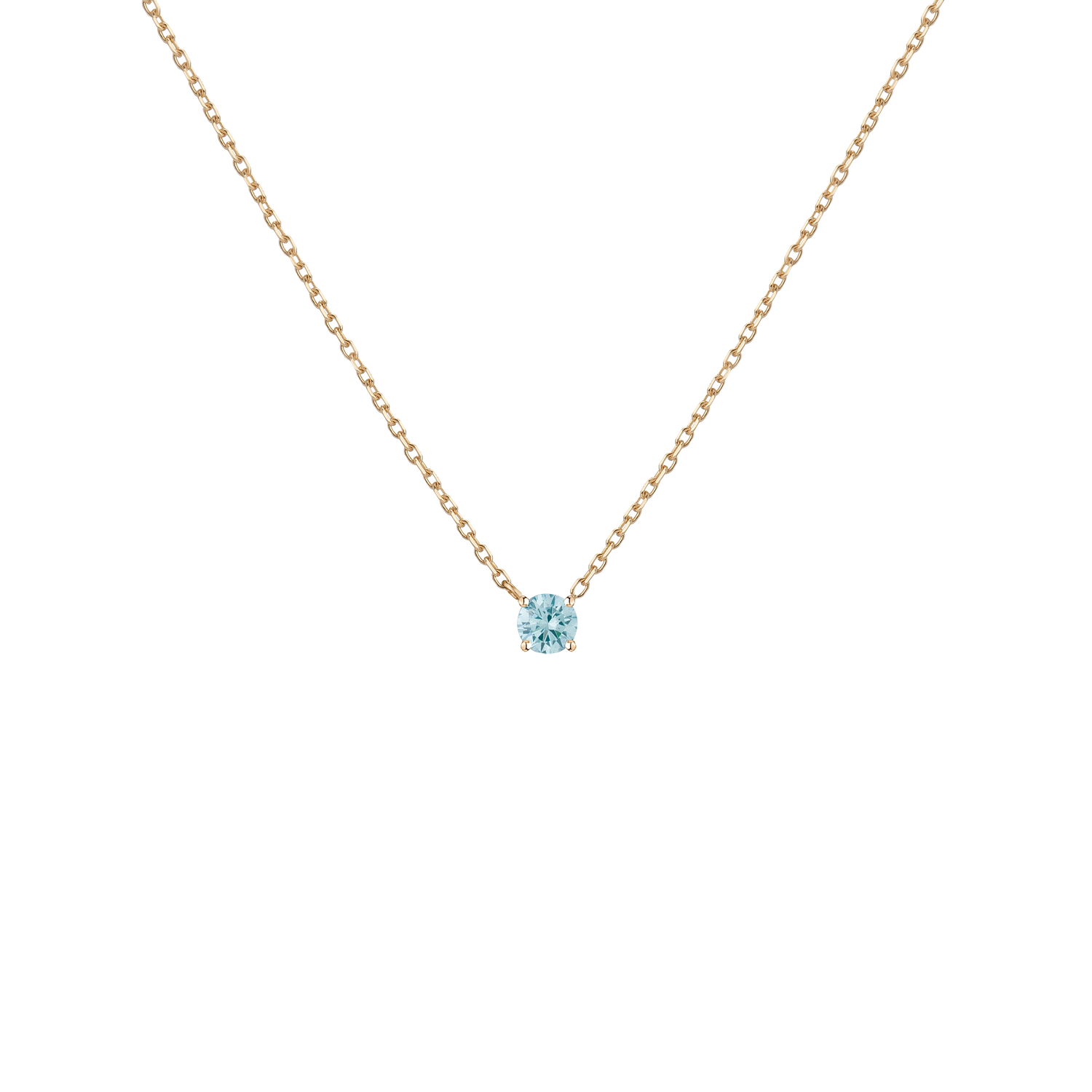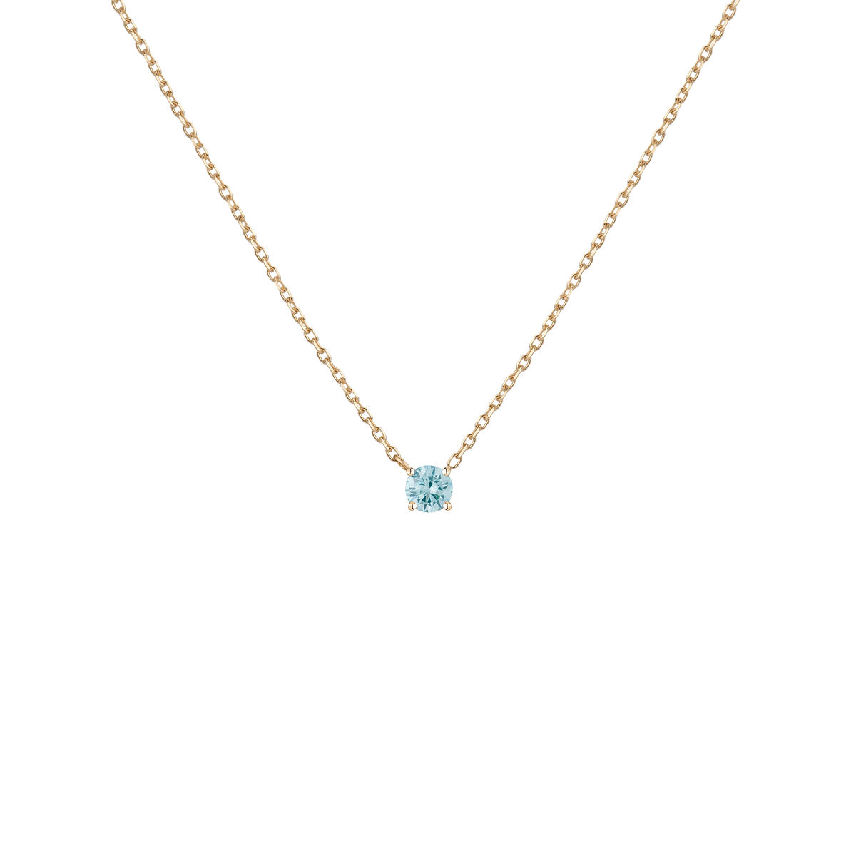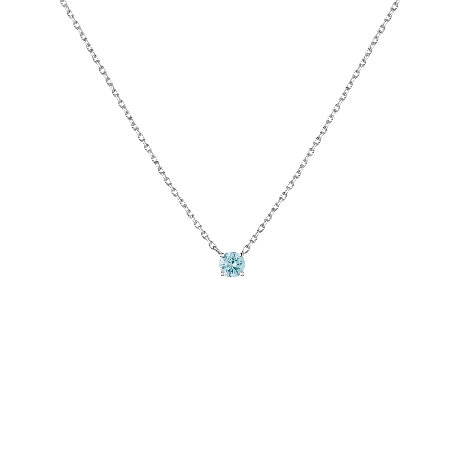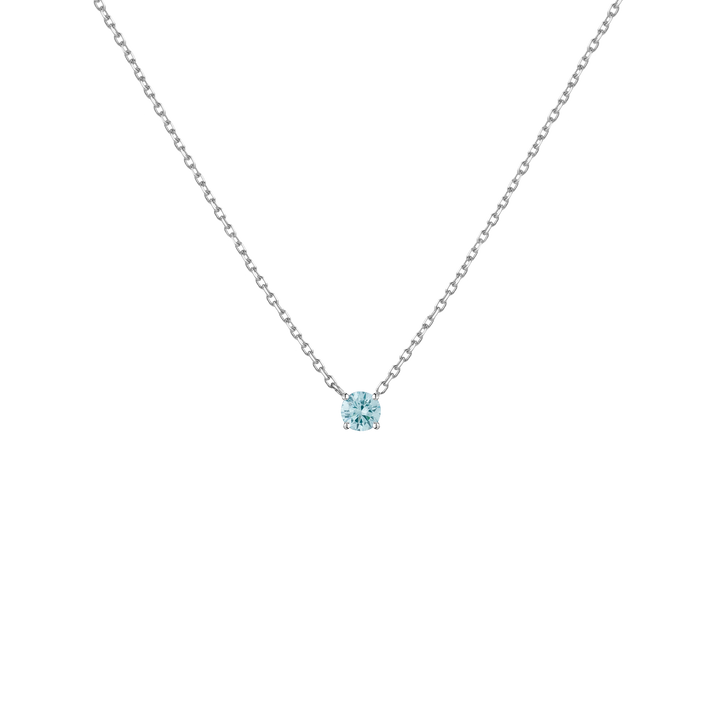 Crafted in sterling silver. Features one round lab-grown blue diamond totaling 0.17tcw. Pendant width: 3.5mm. Thickness: 3mm. Chain length: 18'. Weight: 1.2g.