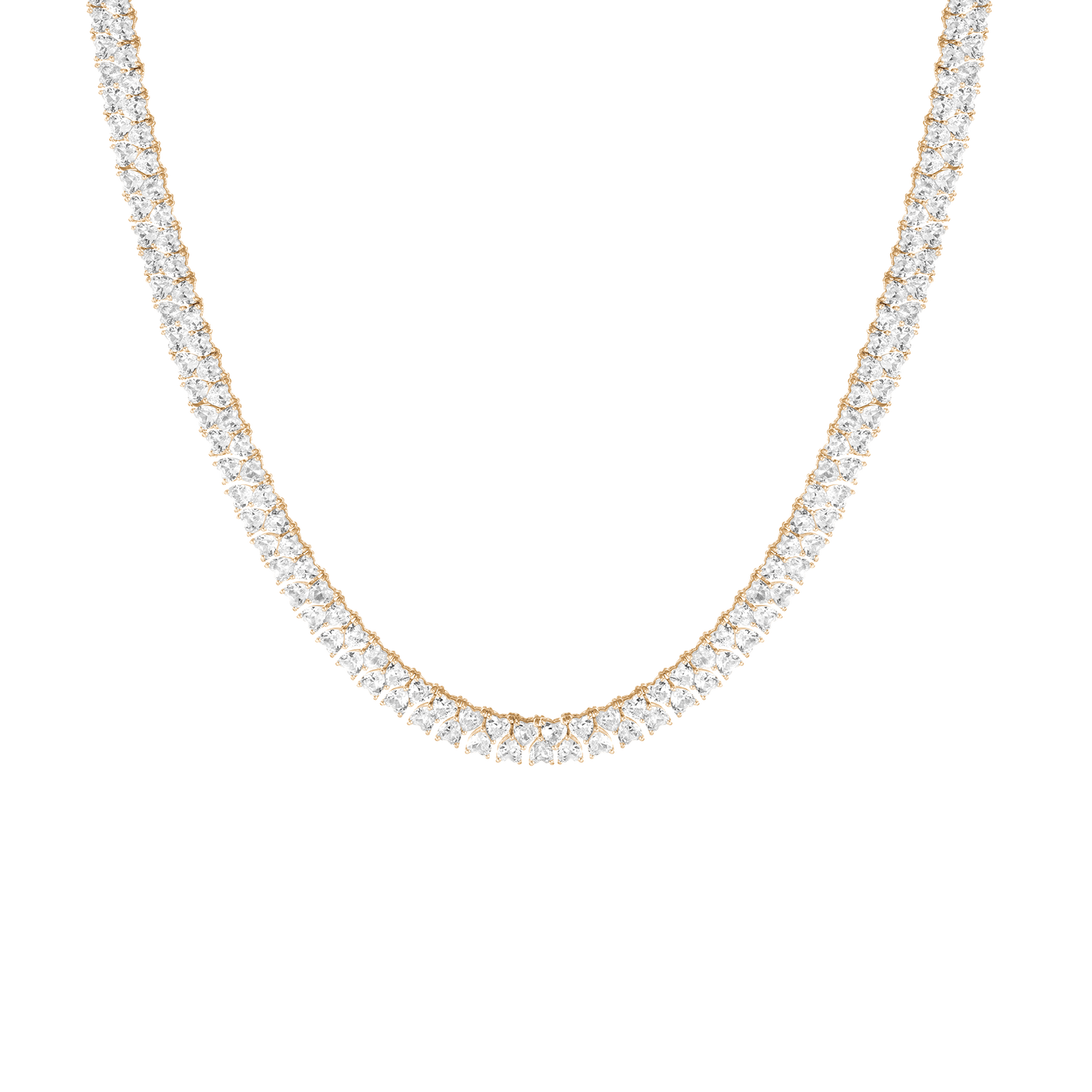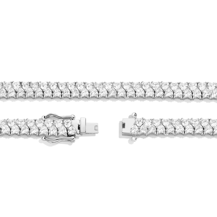This Lab Grown White Sapphire Love Affair Tennis Necklace by Aurate is a lavish celebration of romance and refinement. With a cascade of 253 heart-shaped sapphires totaling over 25 carats, this statement piece is a show-stopping gift of love and light. Pair it with the matching bracelet for ultimate sparkle.