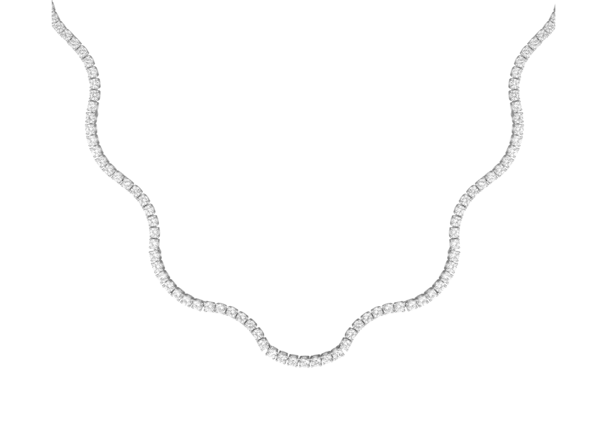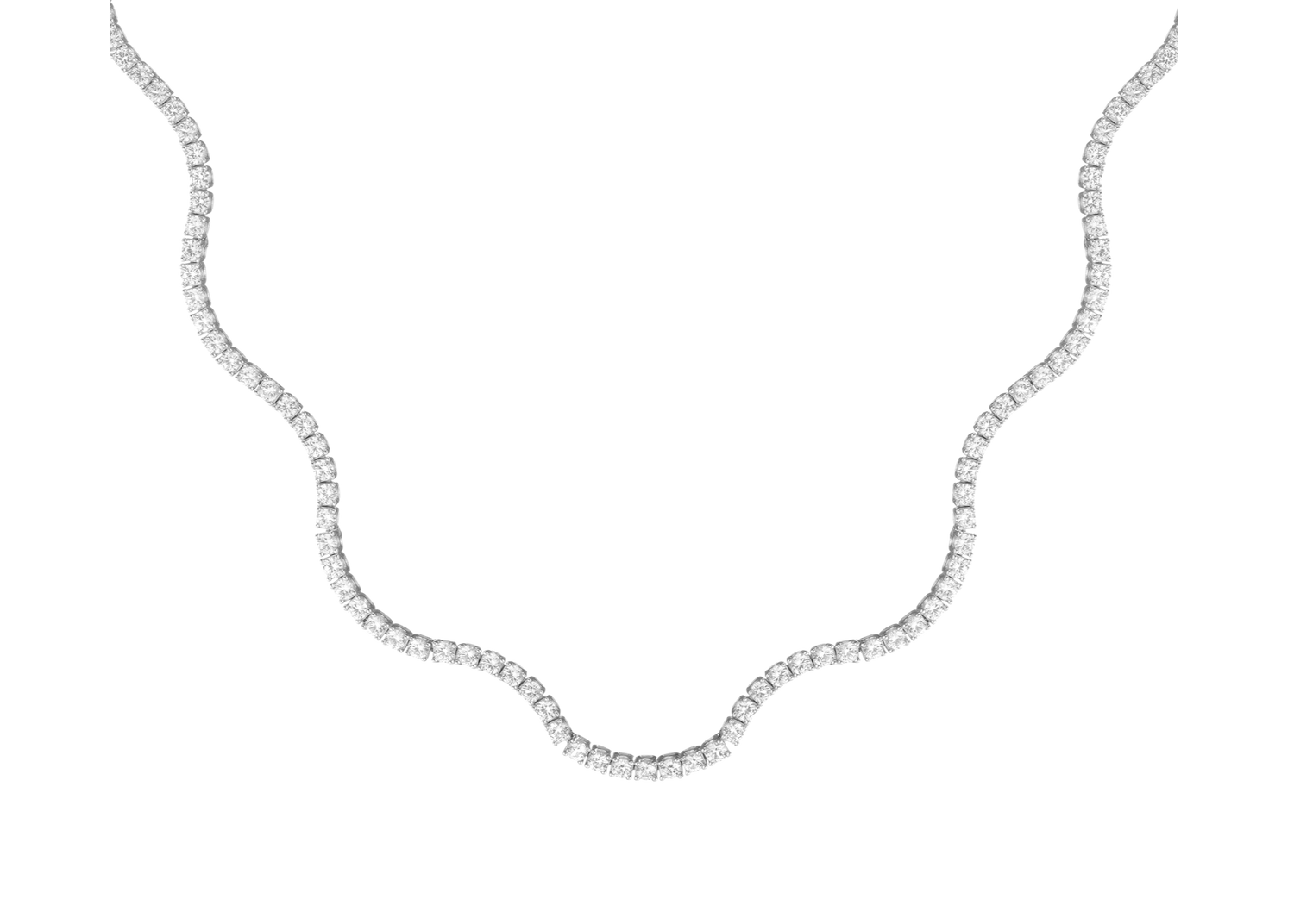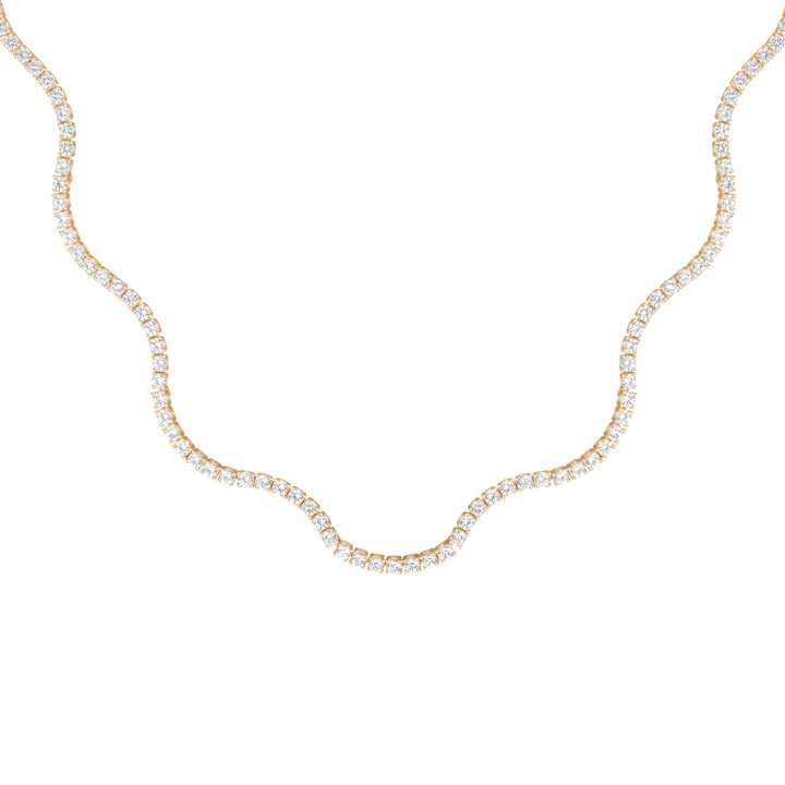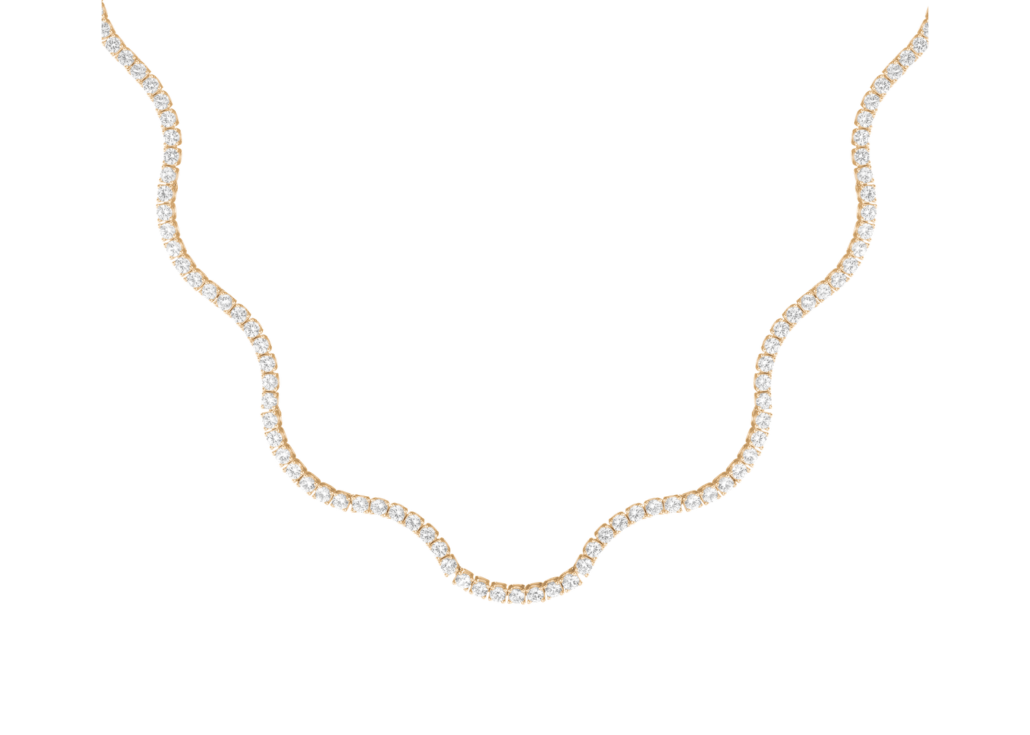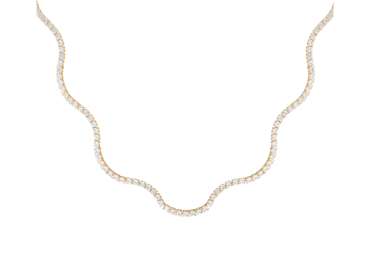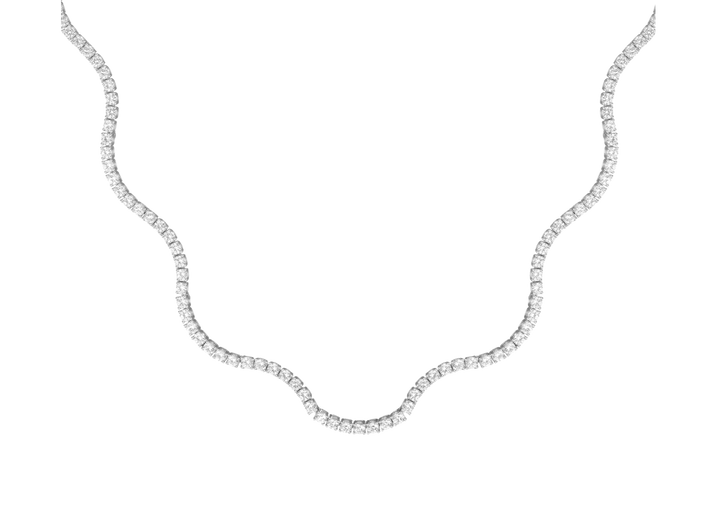 This Lab Grown White Sapphire Wave Tennis Necklace by Aurate is a true statement of sophisticated sparkle. With 155 brilliant sapphires set in a subtle wave pattern, it creates a fluid, luminous neckline. Set in timeless vermeil, it’s your new signature for elevated evenings or daytime elegance.