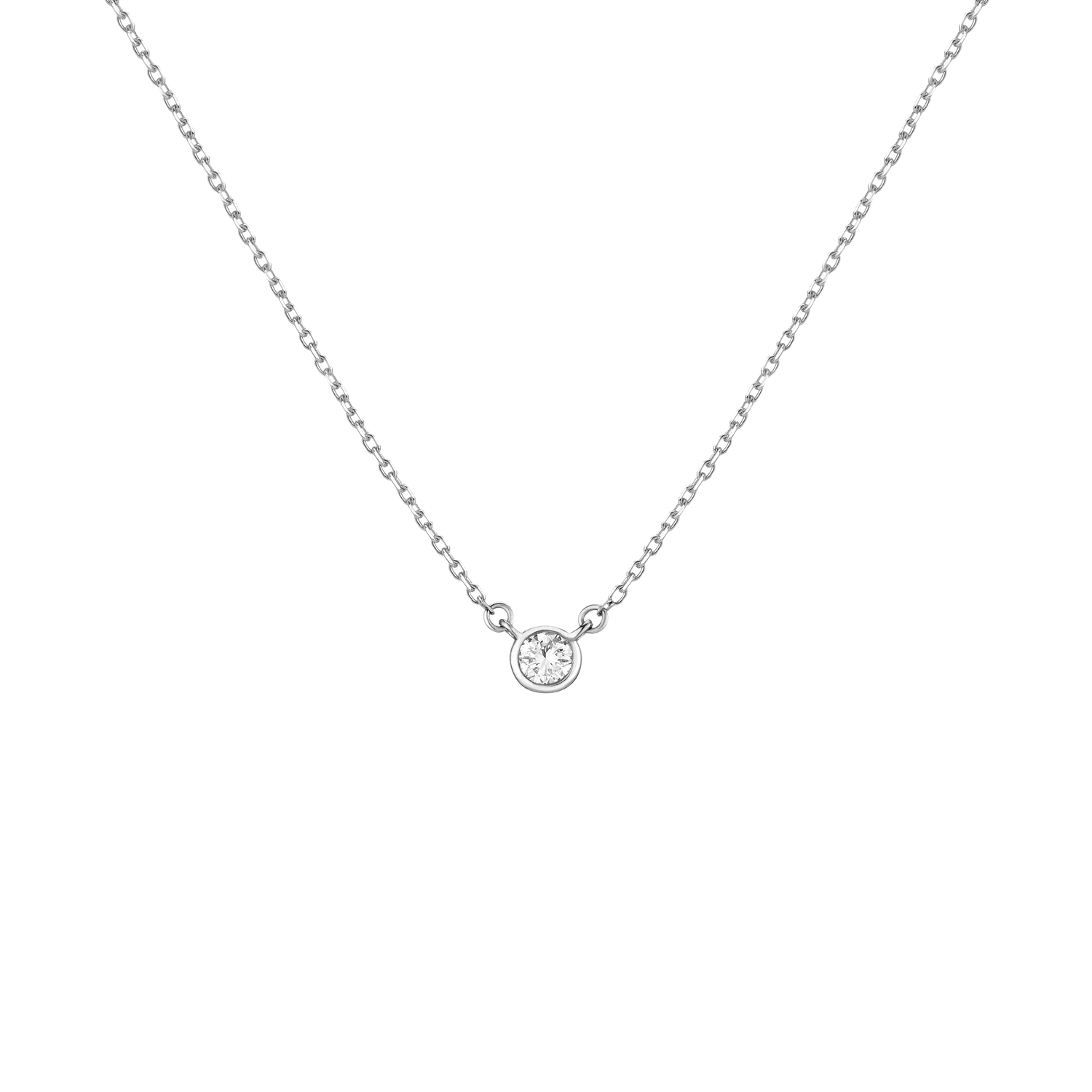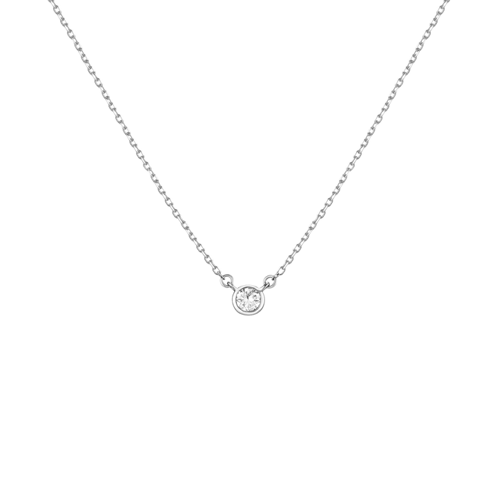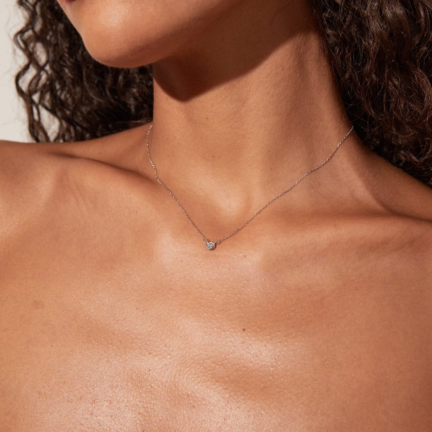 This Medium Lab Grown Diamond Bezel Necklace by Aurate in Silver offers the same refined elegance as the gold version. A minimalist bezel setting holds a 3.5mm diamond, elegantly placed on an 18'' chain with an adjustable jump ring at 15.5''.