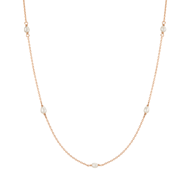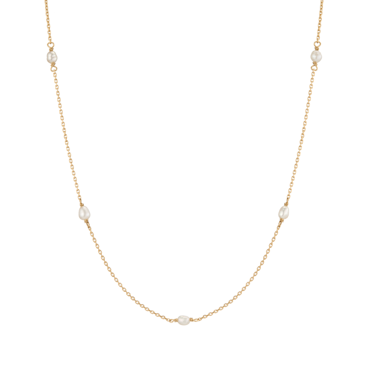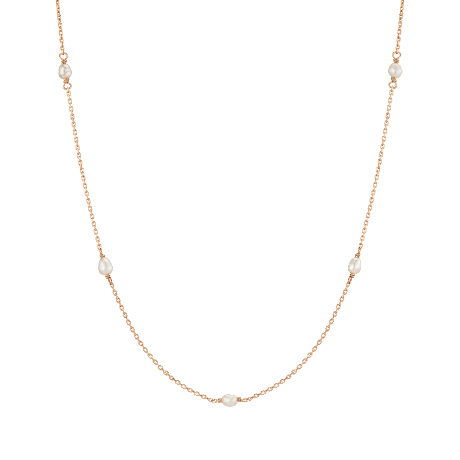 This Organic Pearl Station Necklace by Aurate in vermeil blends timeless tradition with delicate modernity. Each unique pearl is suspended across a gleaming chain, adding softness and elegance to any look.