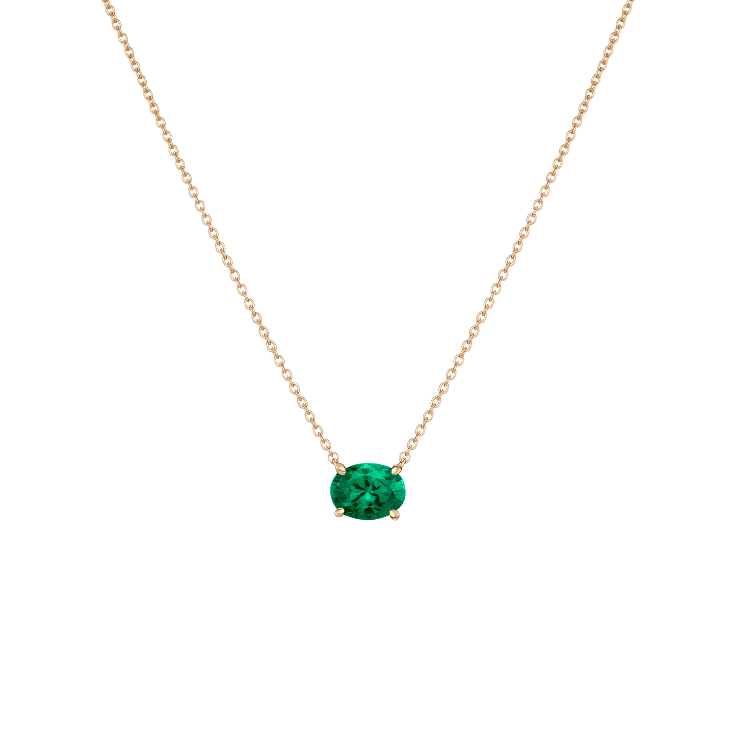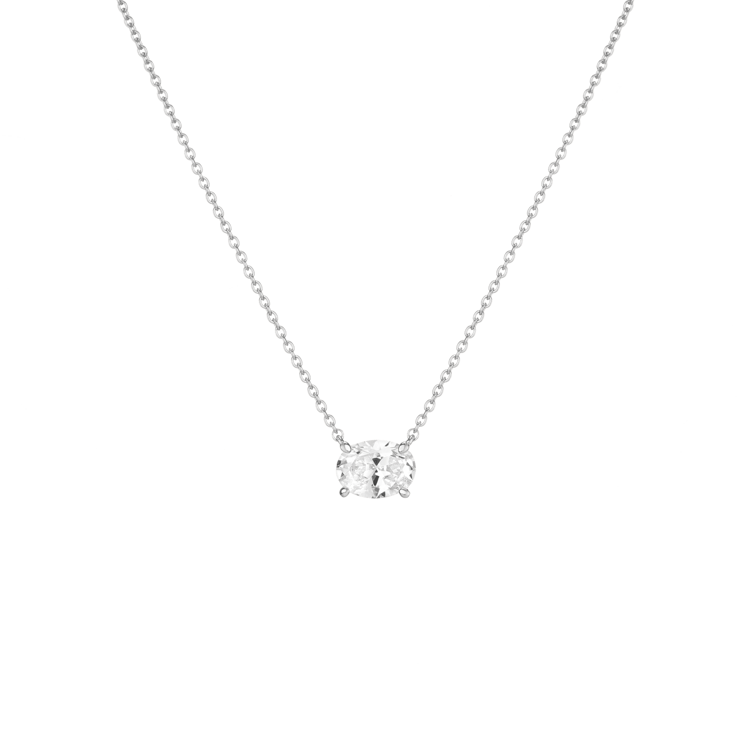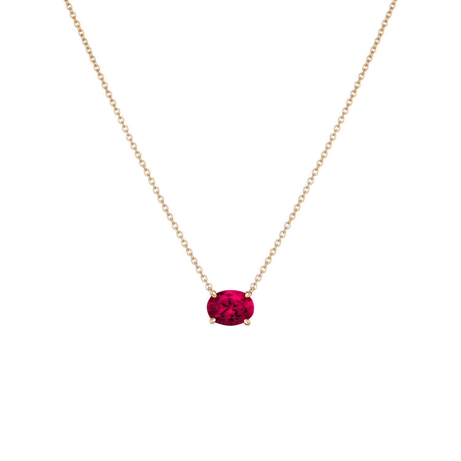 Prong set in vermeil with an 8x6mm (2ct) oval-cut AAA quality created White Sapphire, Emerald, Ruby, Blue Sapphire, or Aquamarine. Chain length: 18' with three adjustable sizes. Lobster clasp. Thickness: 5mm, Weight: 2.5g.