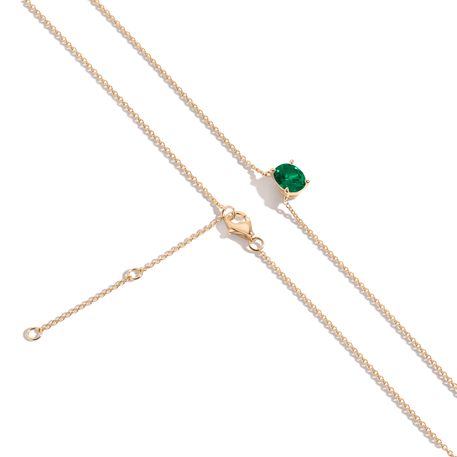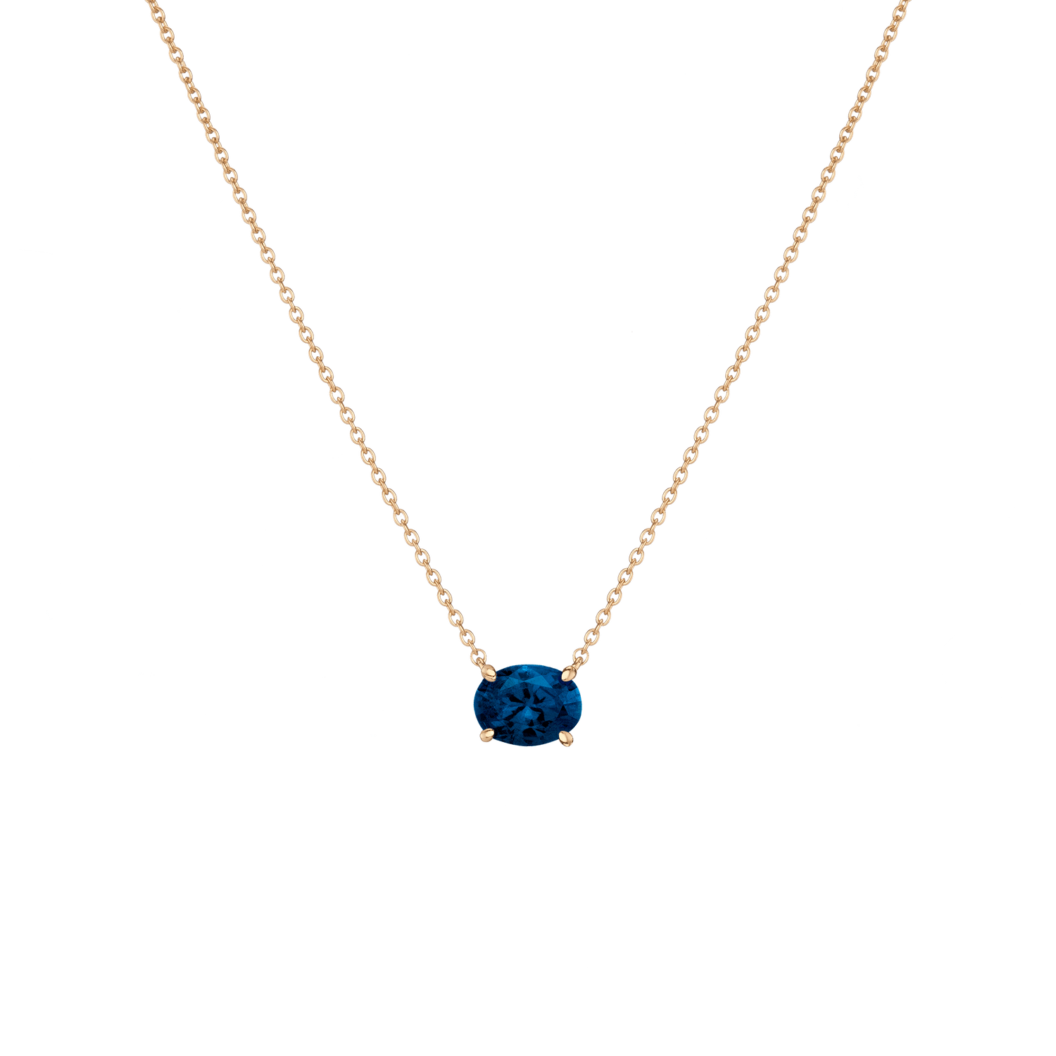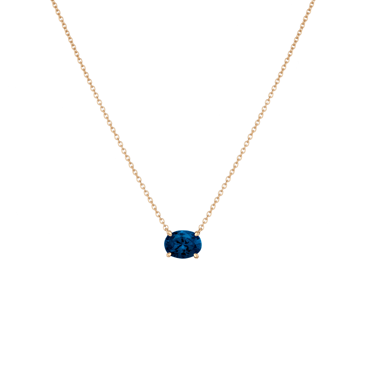 Prong set in vermeil with an 8x6mm (2ct) oval-cut AAA quality created White Sapphire, Emerald, Ruby, Blue Sapphire, or Aquamarine. Chain length: 18' with three adjustable sizes. Lobster clasp. Thickness: 5mm, Weight: 2.5g.