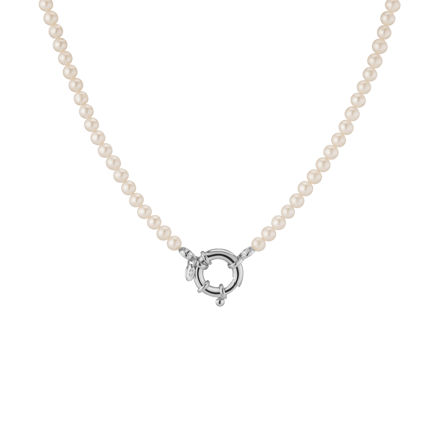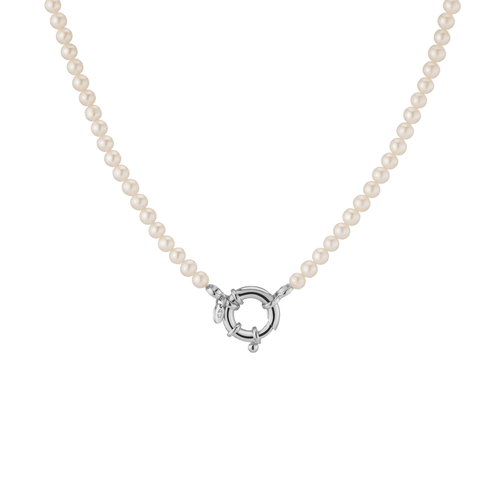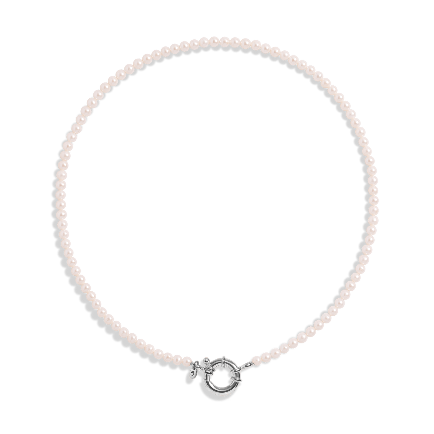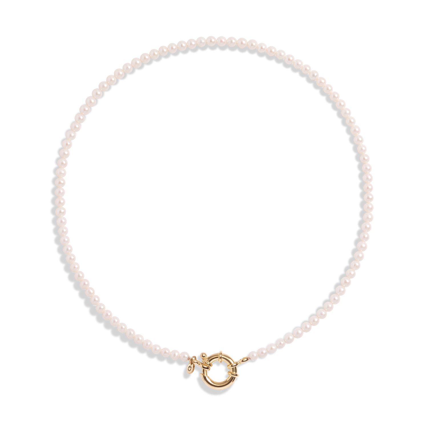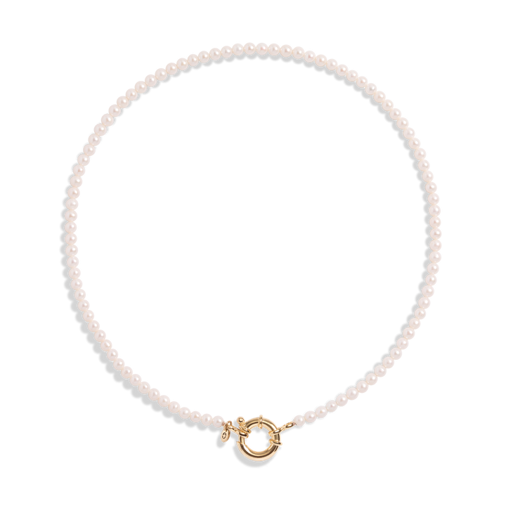 This Pearl Aura Beaded Necklace by Aurate blends timeless pearl beauty with a fresh, spiritual energy. Strung with luminous 4mm freshwater pearls, it evokes wisdom, serenity, and a modern sense of calm. The oversized vermeil clasp adds a contemporary finish, making it the perfect blend of classic and cool.
