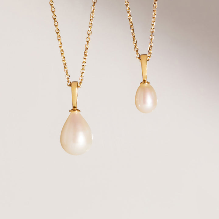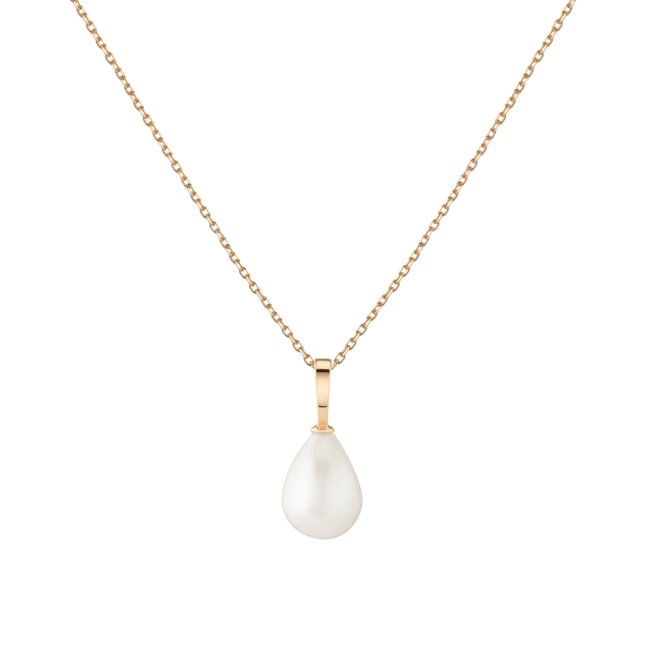 This Pearl Drop Necklace by Aurate in vermeil is a poetic piece of softness and shimmer. A luminous teardrop-shaped pearl glides along a fine gold chain, casting light and grace with every movement. Perfect for romantic gestures or elevating everyday elegance.