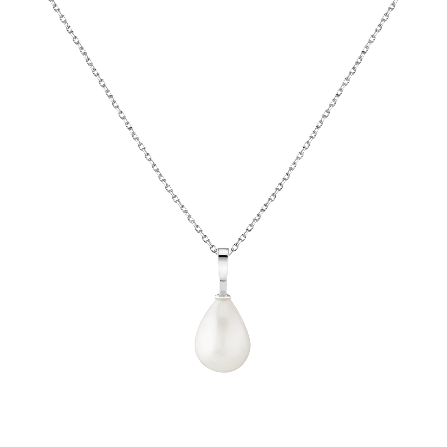 Handcrafted in vermeil with an 11x8mm cultured freshwater pearl suspended from a custom bail. Total pendant height: 19mm. Width: 8mm. Weight: 2.5g. Diamond cut cable chain with lobster clasp.