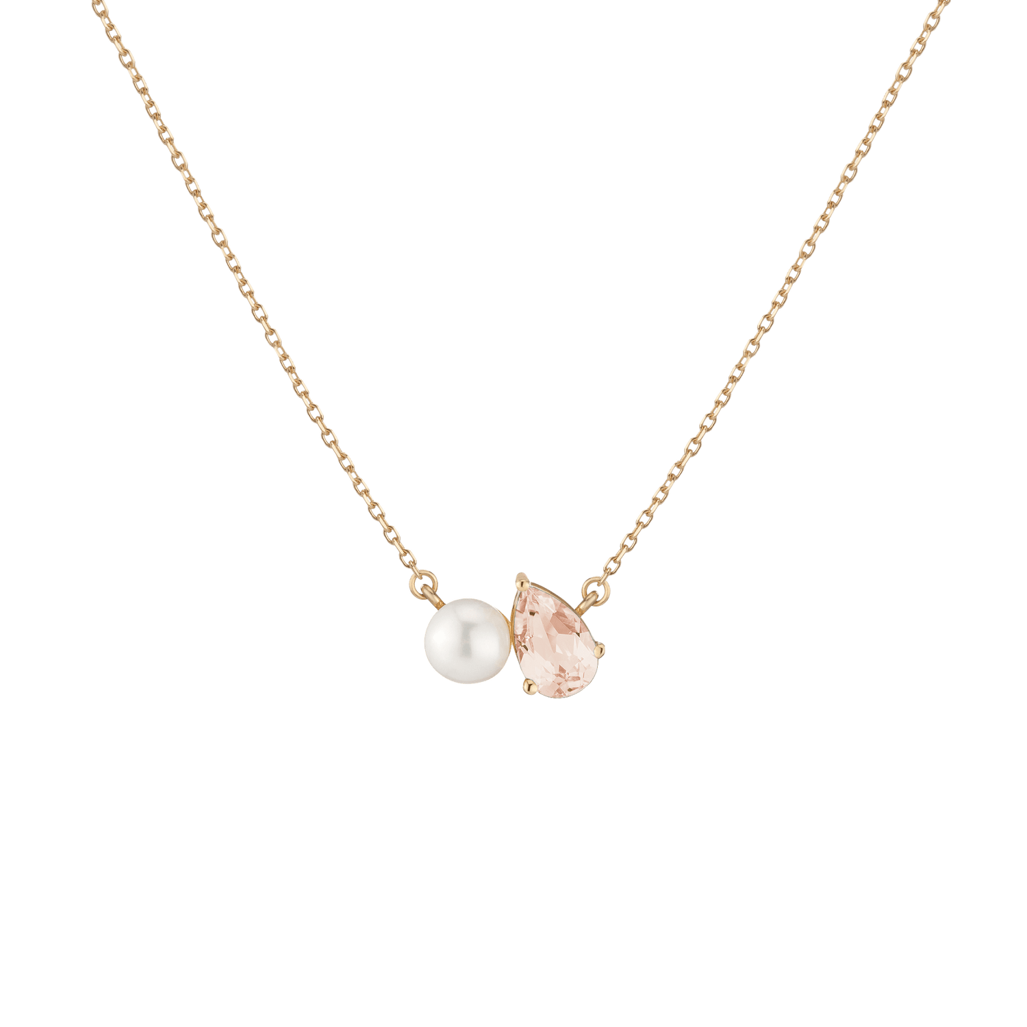Prong-set in high-quality vermeil with an 8x5mm (1ct) pear-cut gemstone and 5.5mm freshwater cultured pearl. Chain: 18' with jump ring at 15.5'. Setting: 8x14mm; Chain thickness: 1.5mm; Weight: 2.5g.
