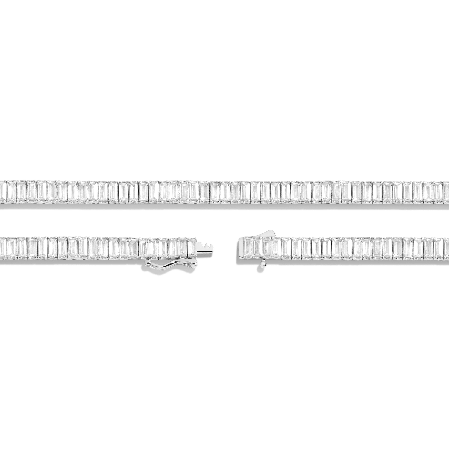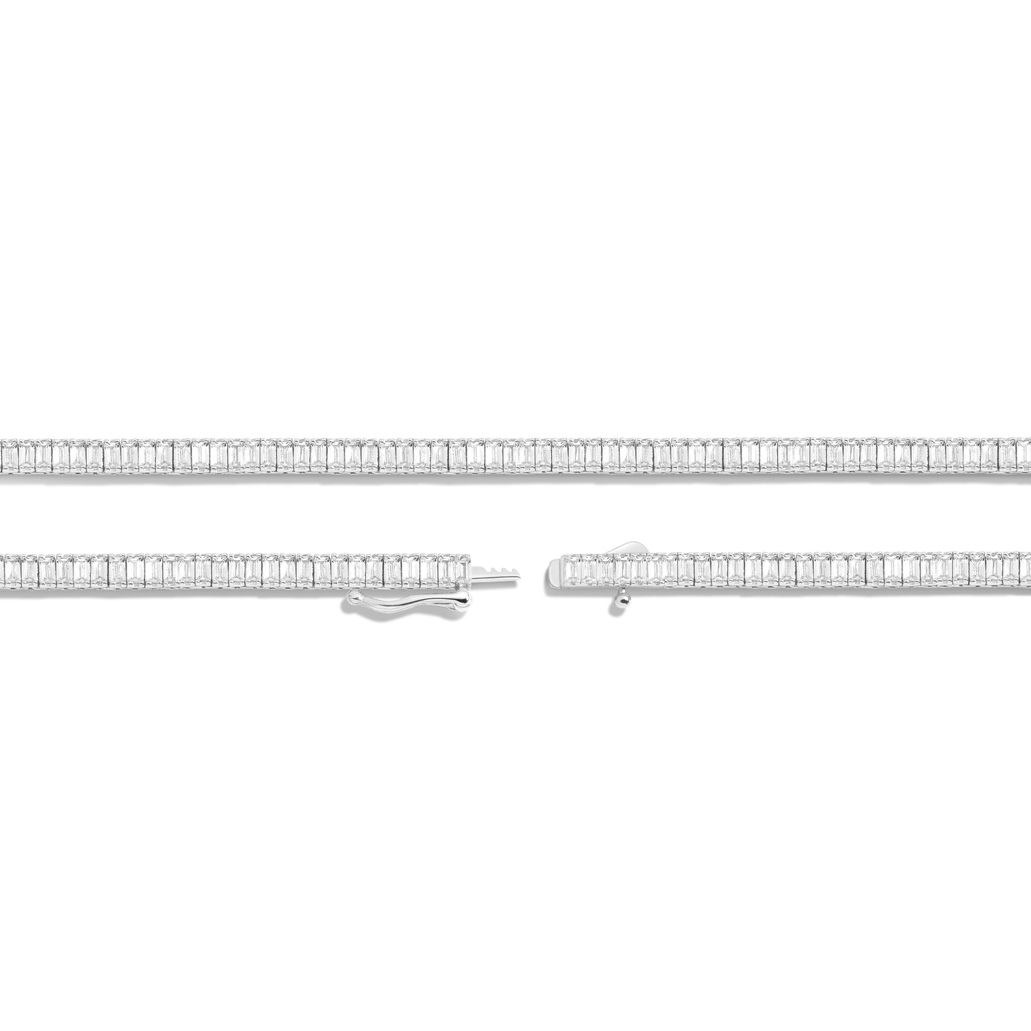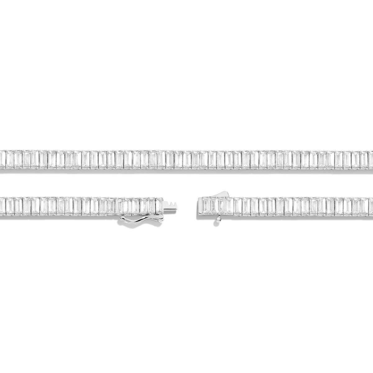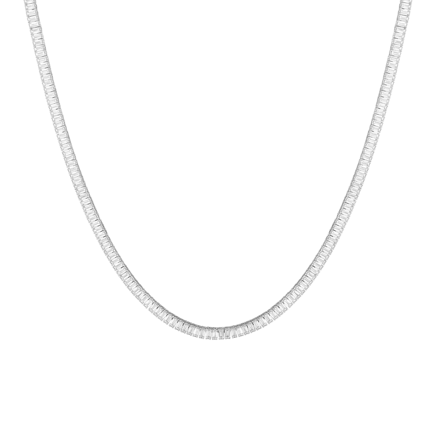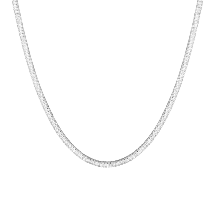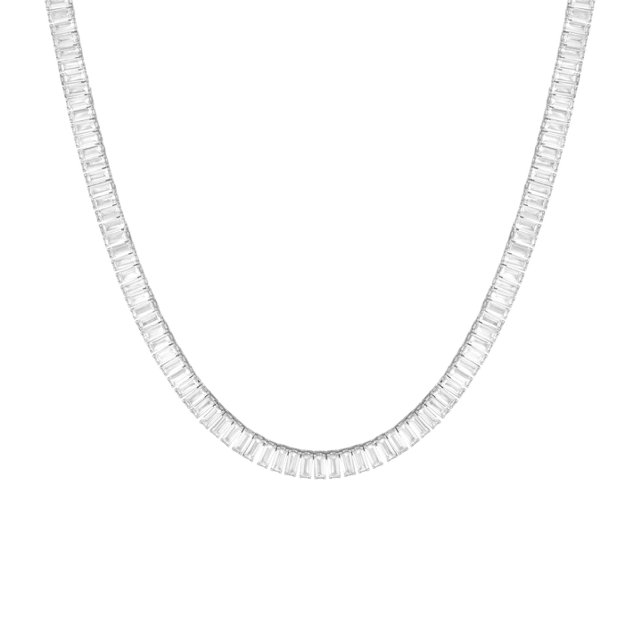Lab Grown White Sapphire Baguette Tennis Necklace