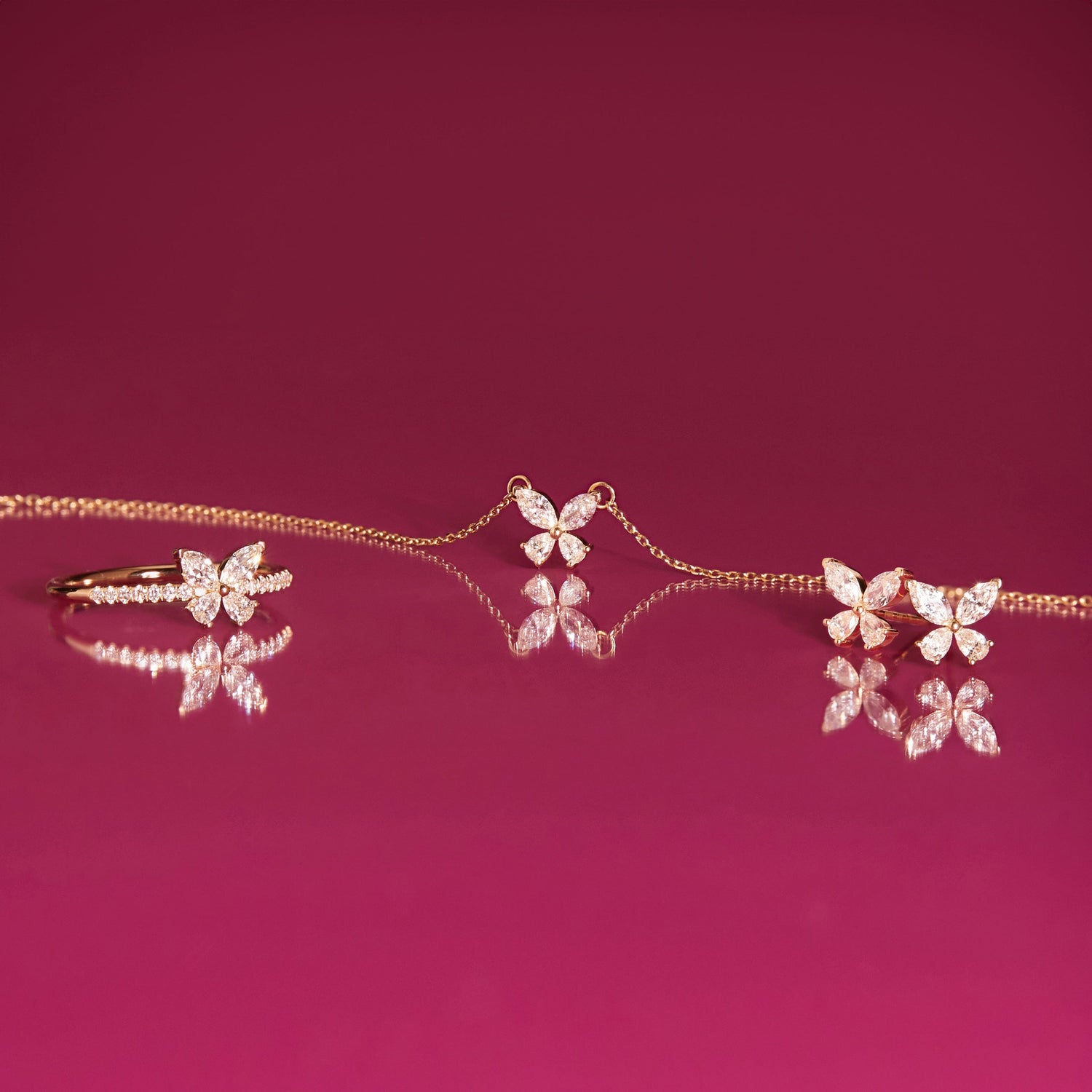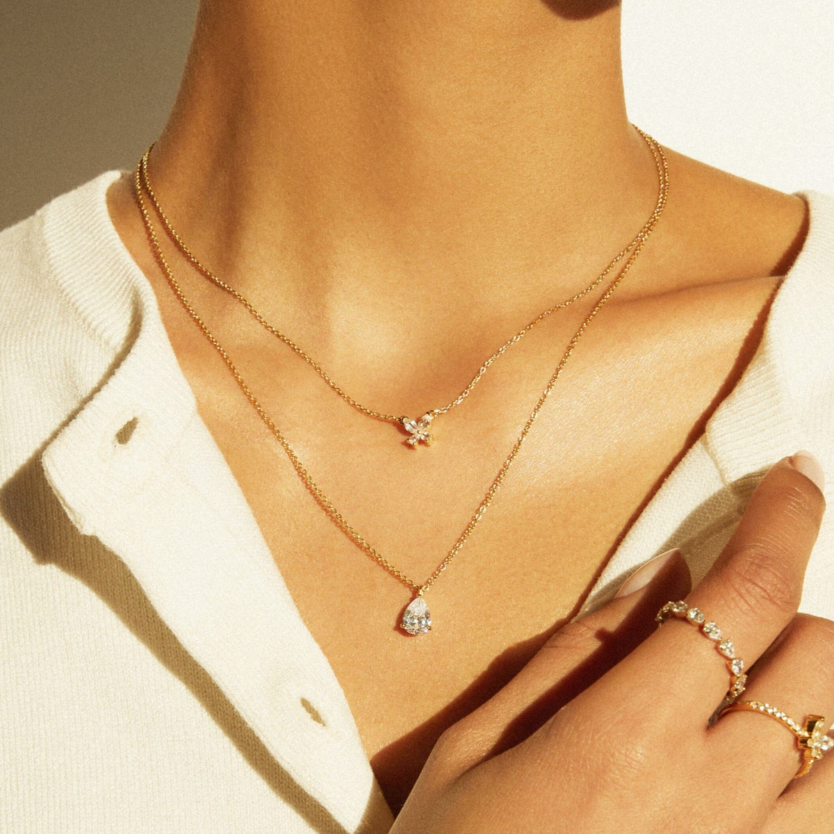 This Lab Grown White Sapphire Butterfly Necklace by Aurate brings classic charm with contemporary sparkle. Four white sapphires—two marquise and two pear—form a radiant butterfly pendant, suspended from a fine cable chain. A meaningful, eye-catching everyday piece.