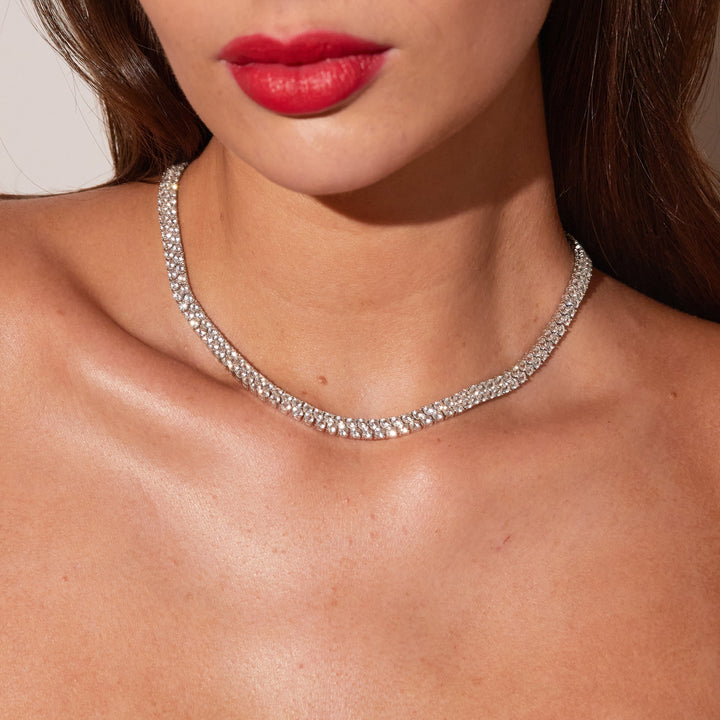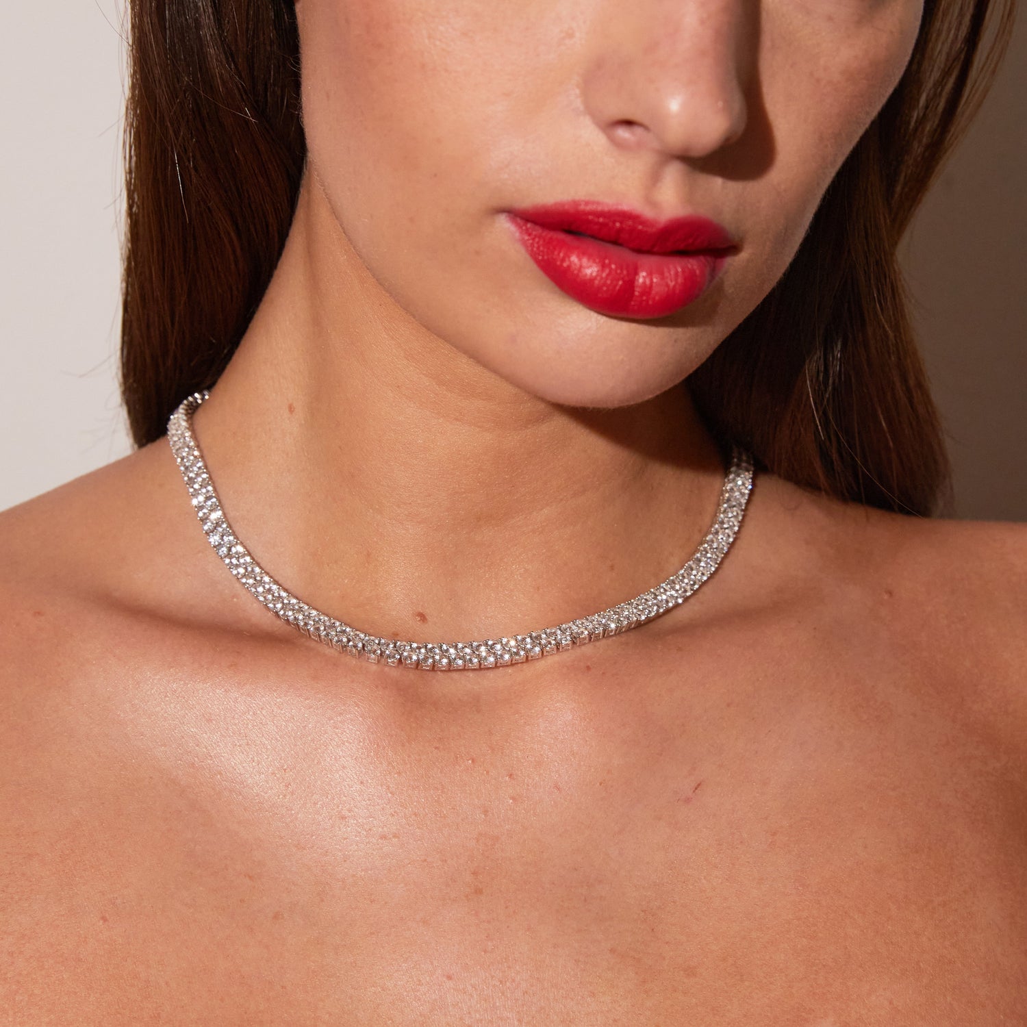 Lab Grown White Sapphire Double Row Tennis Necklace