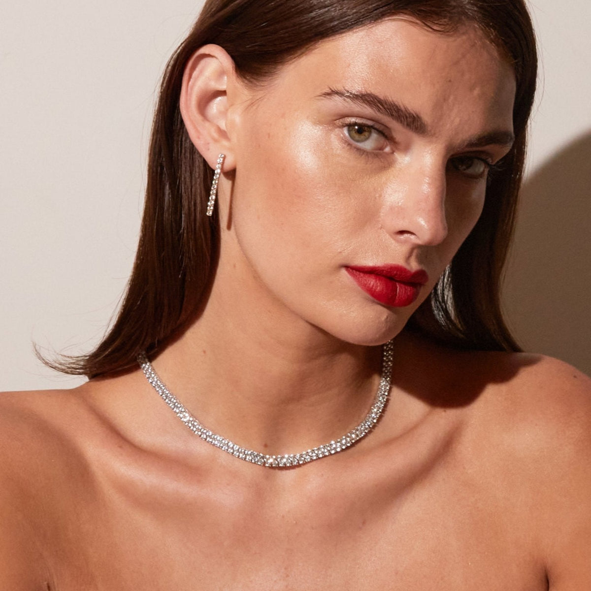 This Lab Grown White Sapphire Double Row Tennis Necklace by Aurate is the pinnacle of radiant luxury. With two rows of prong-set sapphires, this 44tcw showpiece redefines grandeur with refined symmetry and shimmer.
