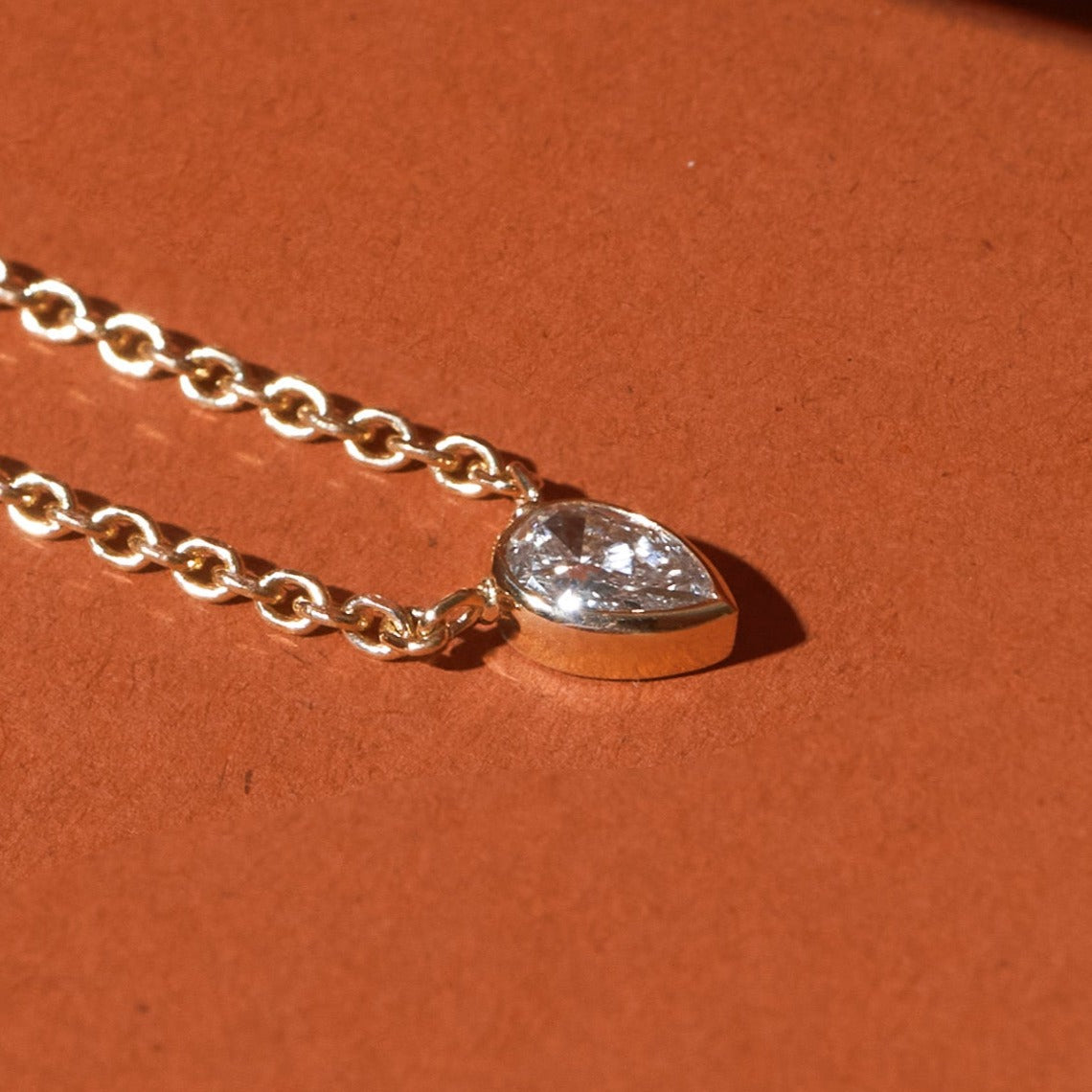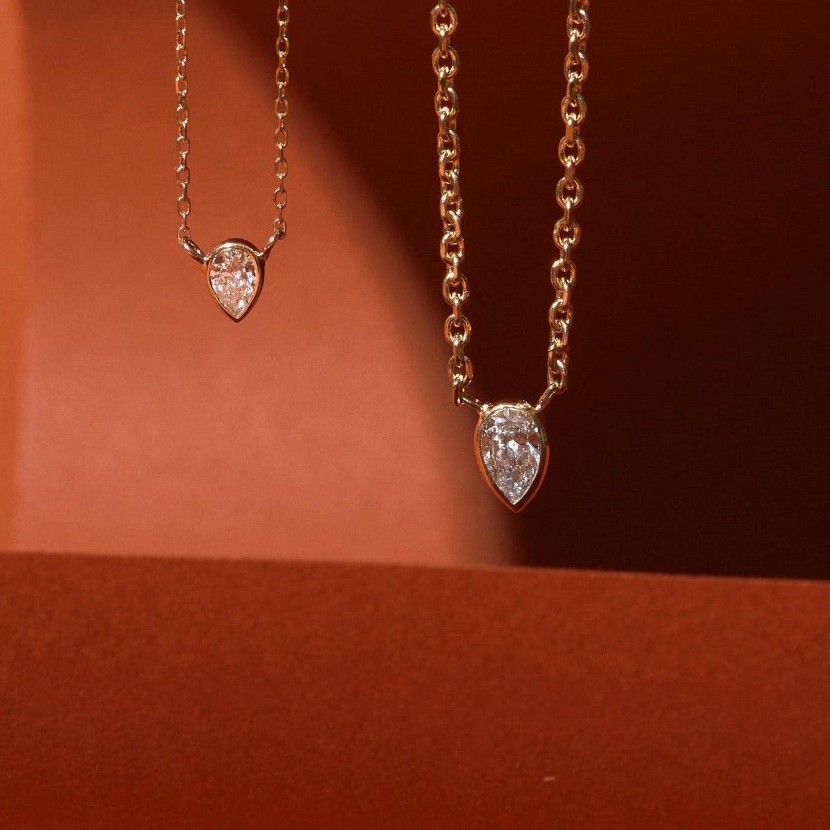 This XL Lab Grown Diamond Pear Bezel Necklace by Aurate (18k) transforms the same dazzling design with a deeper golden tone. Bezel-set for modern elegance and paired with a delicate yet durable cable chain, it’s an instant icon. Ideal for marking milestones or layering with luxe.