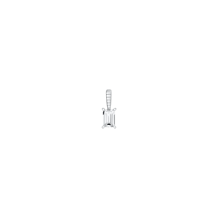 Handcrafted in vermeil. Set with a 6x4mm AAA-rated baguette-cut gemstone. Pendant size: 13x4mm with bail; thickness: 5mm; weight: 1.0–1.8g. Mix of lab-grown and natural gemstones.