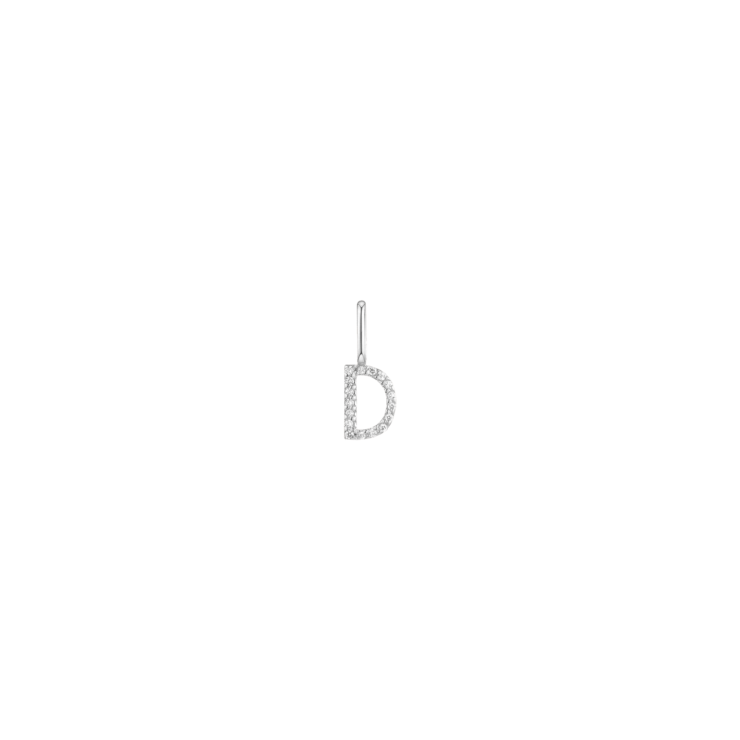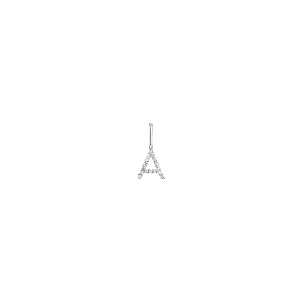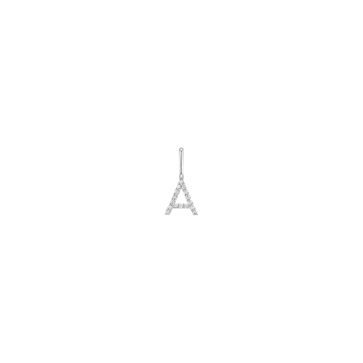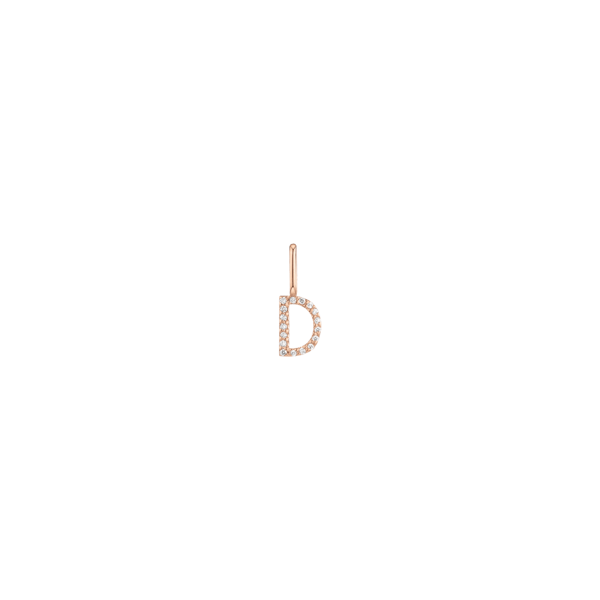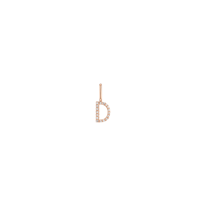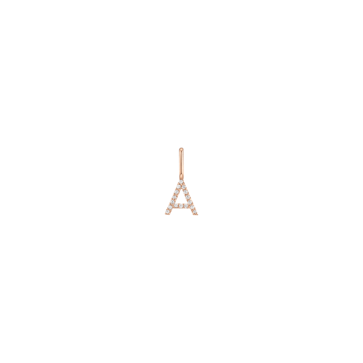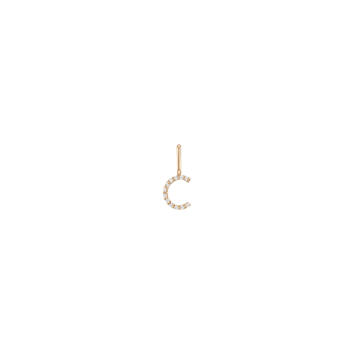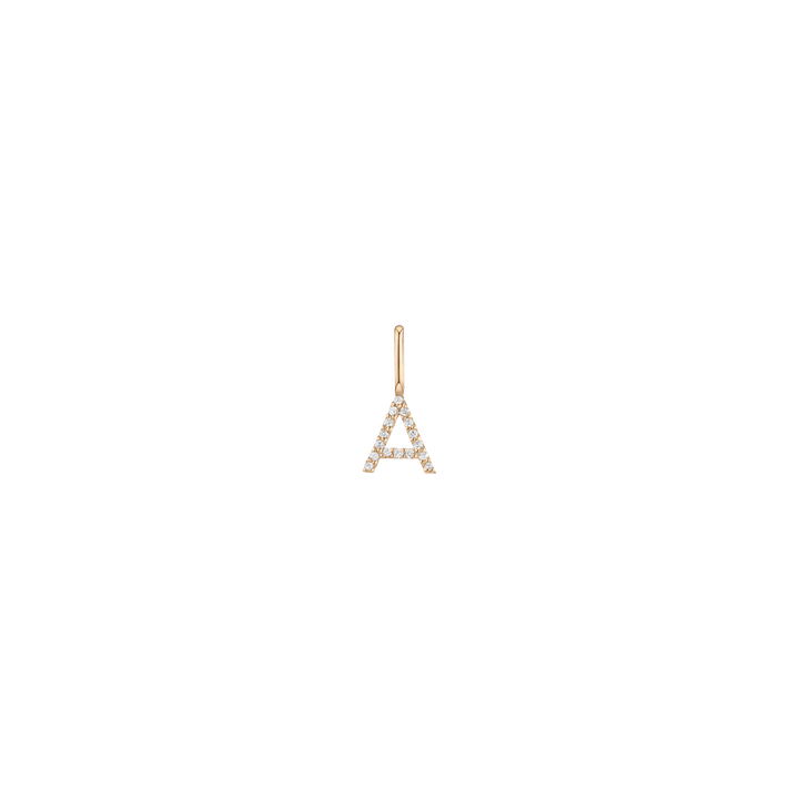 Crafted in 18k gold with SI clarity round diamonds (1.0mm). Pendant length: 1cm, Thickness: 1.5mm. Width varies by letter. Equipped with a bail.