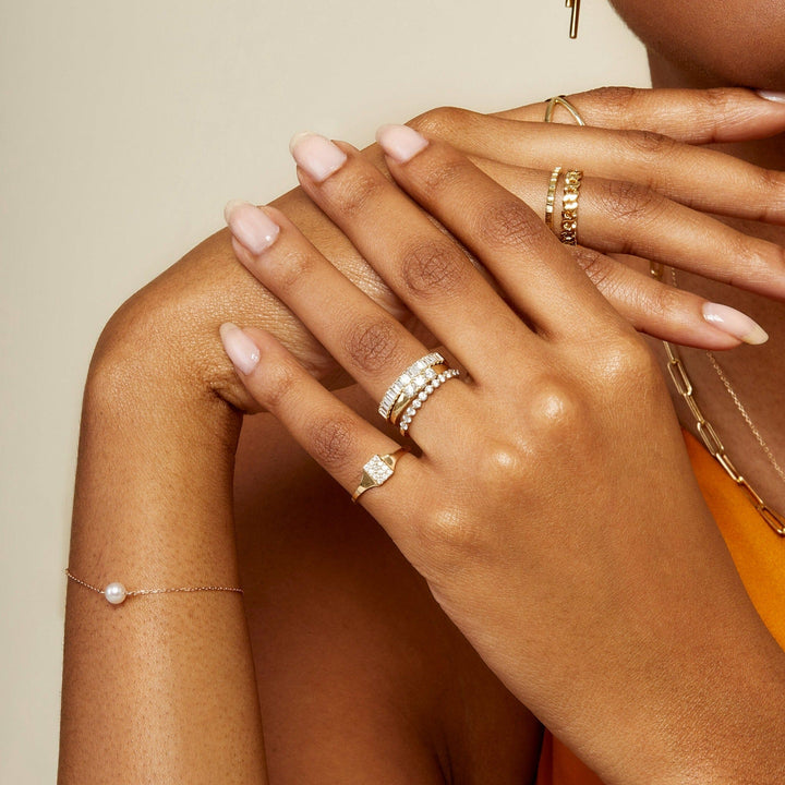 This Bold Diamond Stacker Ring by Aurate in 14k is made for those who crave a touch more brilliance. Three dazzling diamonds sit boldly across a sleek square band, offering elegance and edge in equal measure. Perfect worn solo or stacked high.