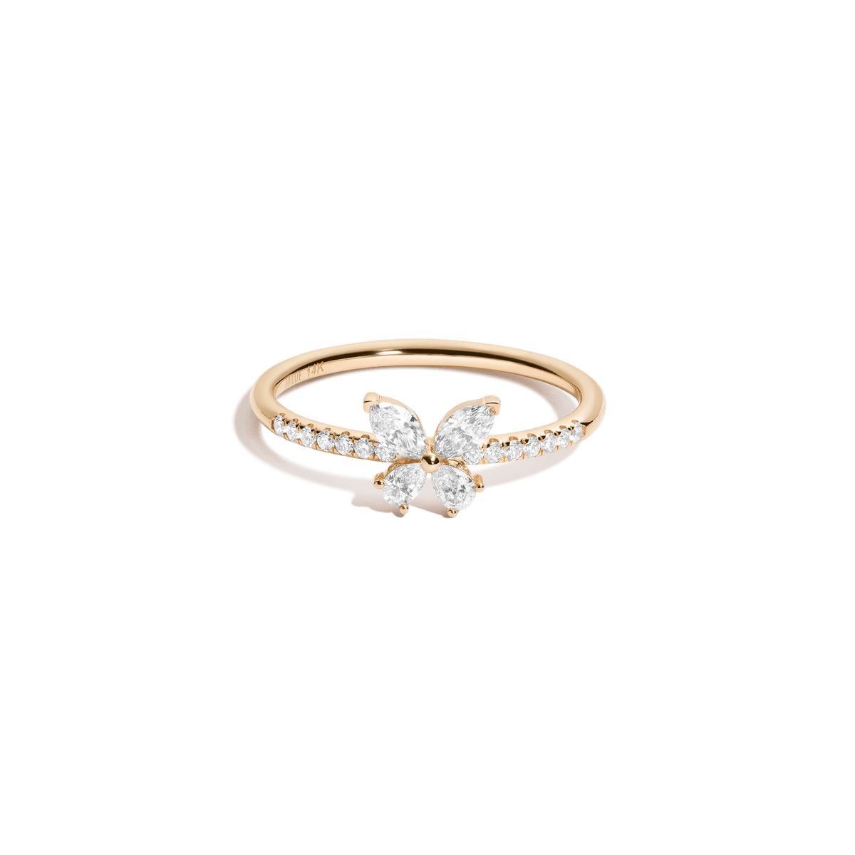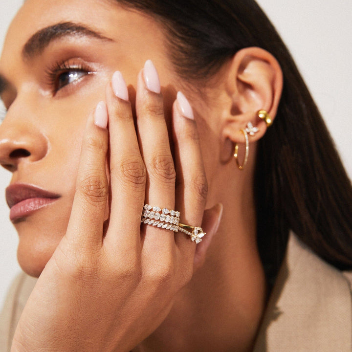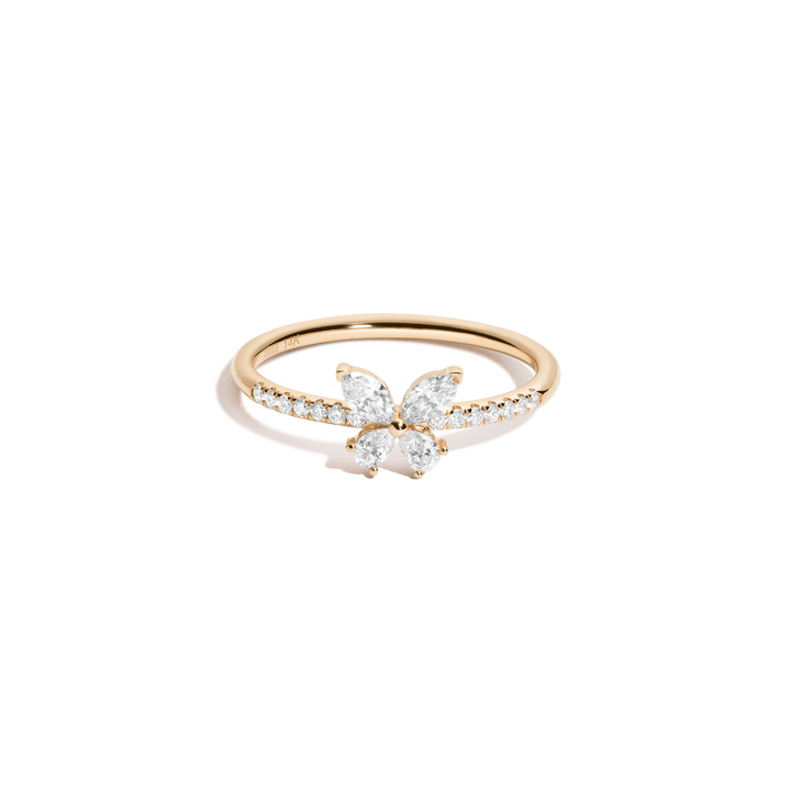This Lab Grown Diamond Butterfly Ring by Aurate is a delicate statement of transformation. Four lab grown diamonds form graceful butterfly wings on a pavé-accented band, blending whimsical design with refined craftsmanship. A sparkling symbol of change and beauty.