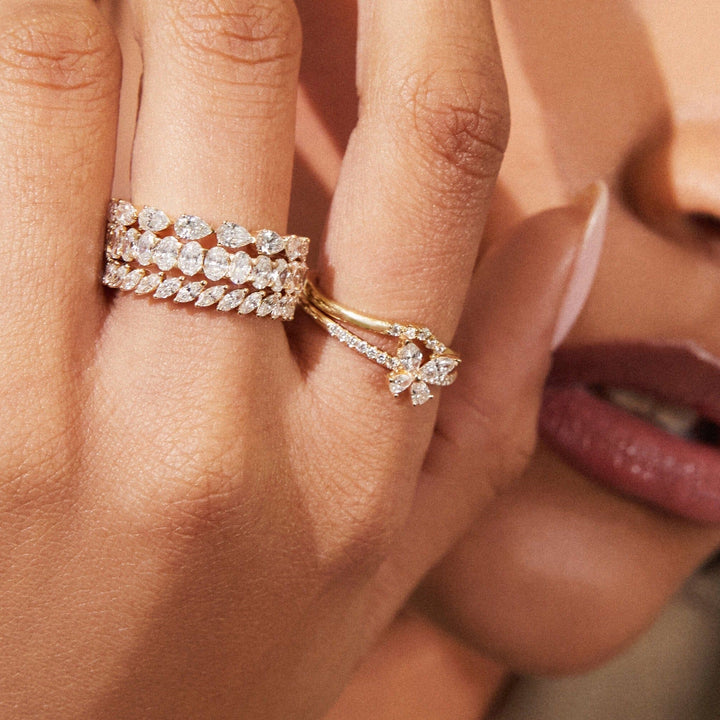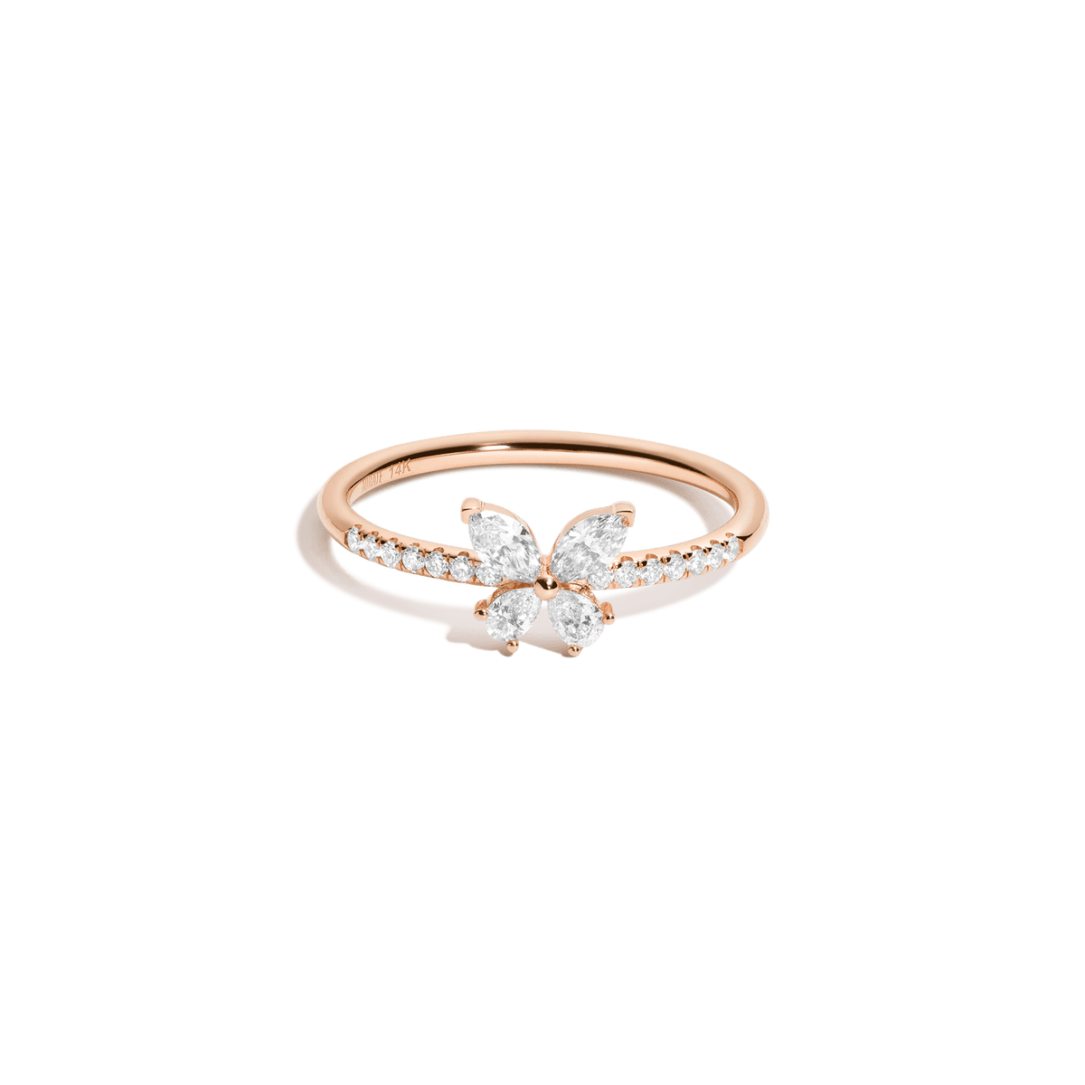 This Lab Grown Diamond Butterfly Ring by Aurate in 18k gold is a sparkling tribute to nature’s elegance. Four perfectly set lab grown diamonds form a delicate butterfly at the center, with a pavé-accented band for added brilliance. A radiant piece that symbolizes transformation and beauty.