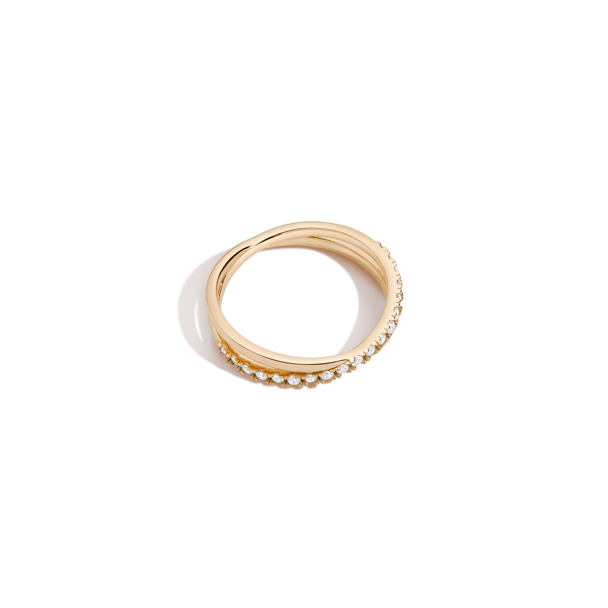 This Diamond Crossover Ring by Aurate in 18k gold adds richness and depth to the iconic silhouette. With the warmth of high-karat gold and a flash of diamonds, it elegantly balances minimalism and impact. Designed to complement any stack or shine on its own, it’s the ring you reach for when you want timeless with a twist. Perfect for marking milestones or making the everyday sparkle.