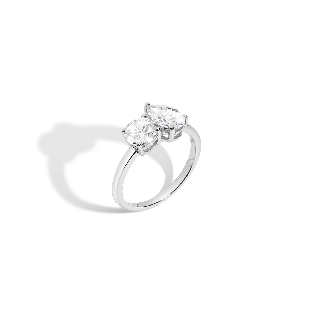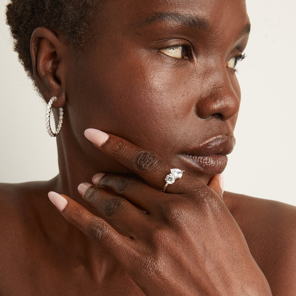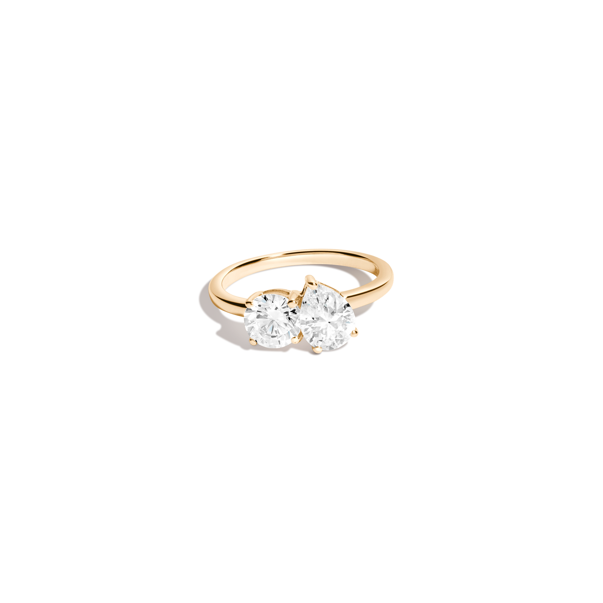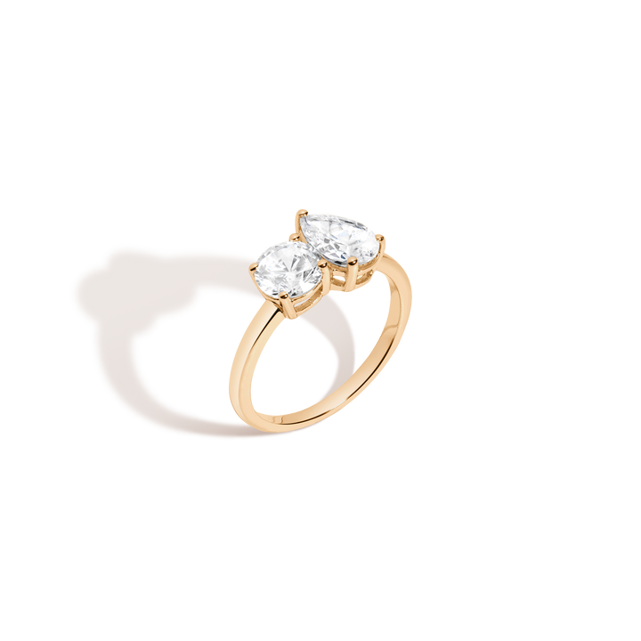 This Lab Grown Diamond Toi et Moi Ring by Aurate captures the poetry of duality in a breathtaking design. Featuring emerald- and pear-cut lab-grown diamonds in a side-by-side tension setting, the ring symbolizes partnership, contrast, and harmony. With its high-impact sparkle and timeless sentiment, it's an elegant ode to love, whether shared with another or reserved for yourself.