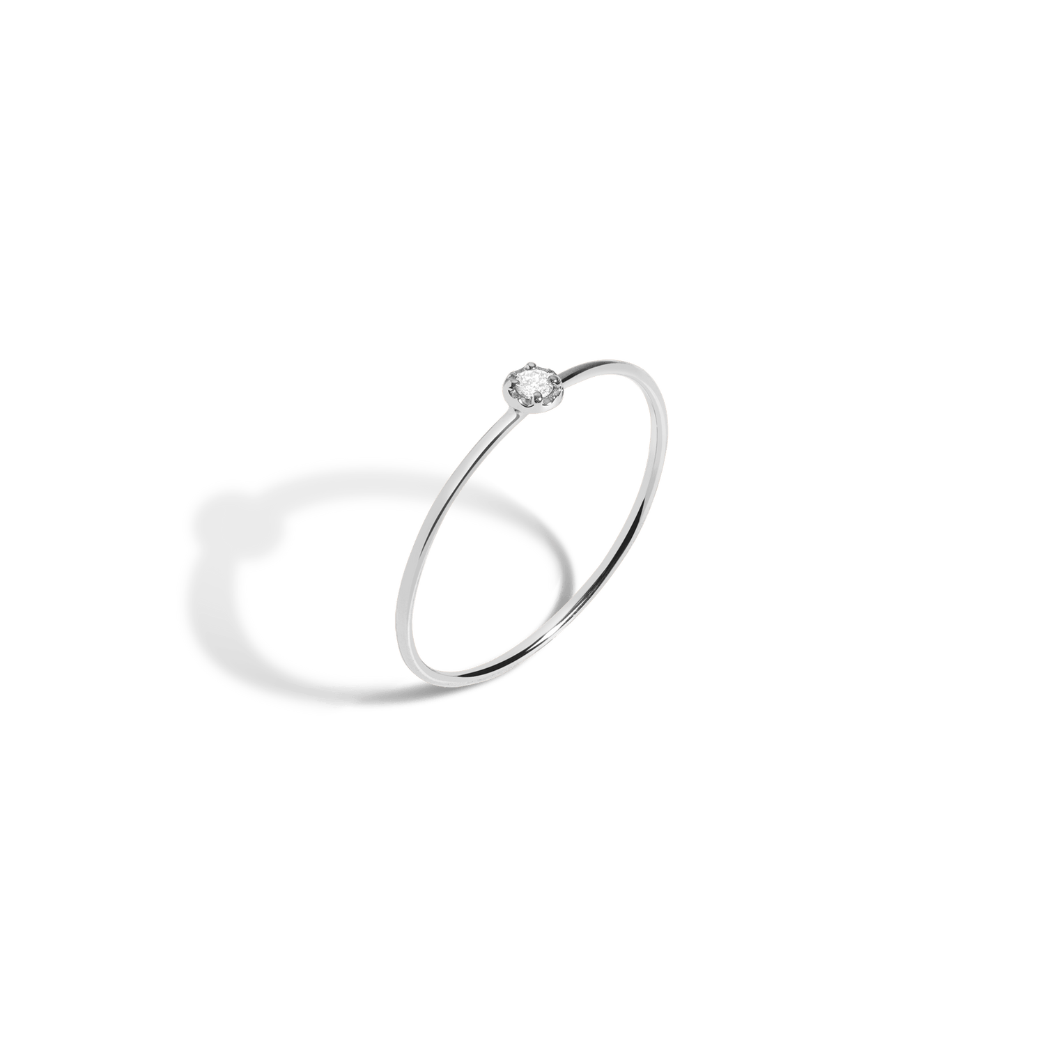 Handcrafted in 18k gold with 1 round brilliant SI clarity diamond (0.03 carat, 1.4mm). Thickness: 0.6mm. Weight: 0.4g.