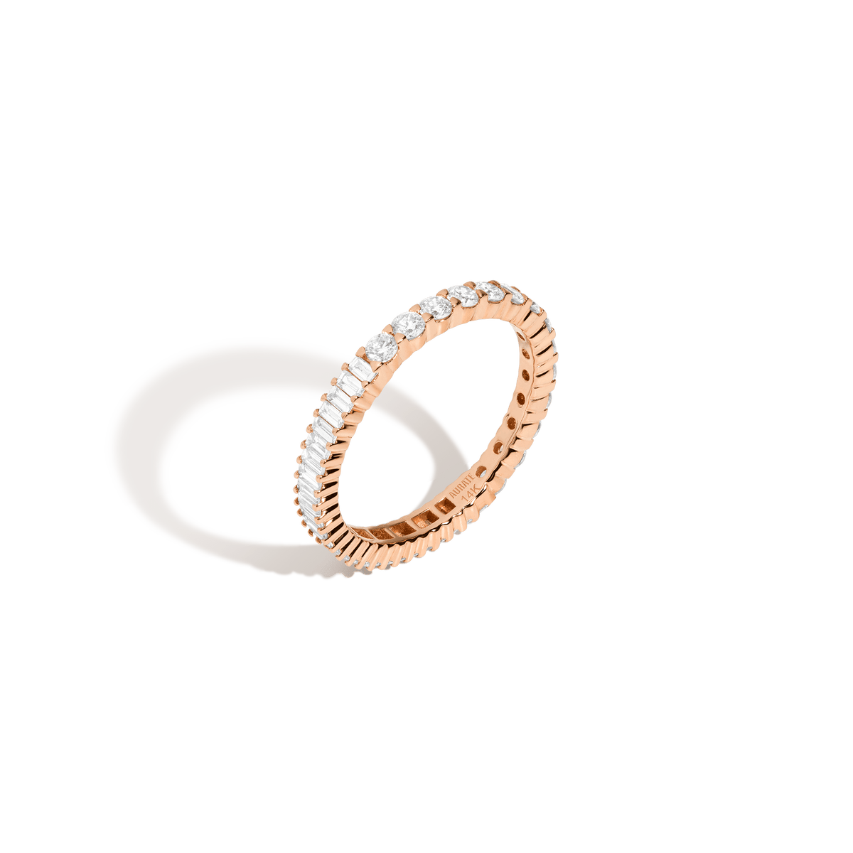 Handcrafted in 18k recycled gold with GH/SI quality round (2.2mm, 0.03ct) and baguette (2.2x1.1mm, 0.02ct) lab-grown diamonds. Total carat weight: 1.07tcw. Width: 2.5mm. Thickness: 1.4mm. Weight: 3g.