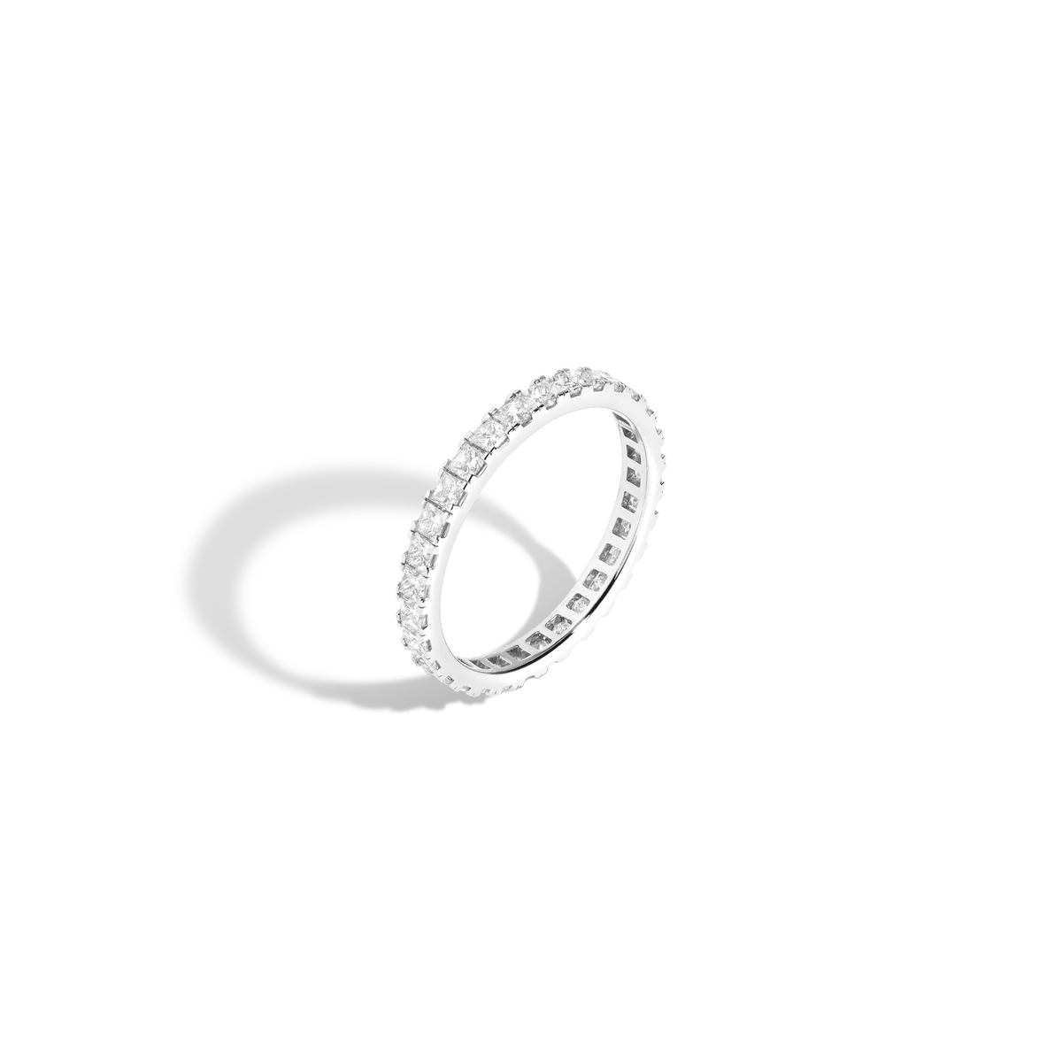 Handcrafted in 14k solid gold with GH SI-quality lab-grown princess cut diamonds totaling 1.24 carats. Each diamond measures 1.8 x 1.8mm (0.04ct). Ring width: 2mm; Thickness: 2mm; Weight: 2.4g.