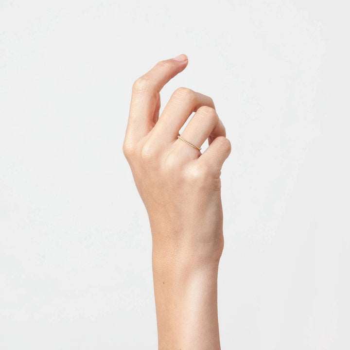 This Thick Stackable Twist Ring by Aurate in 14k brings movement and texture to any ring stack. Crafted from twisted solid gold, it delivers a sculptural look that’s bold yet adaptable, making it a signature layering piece or standalone staple.