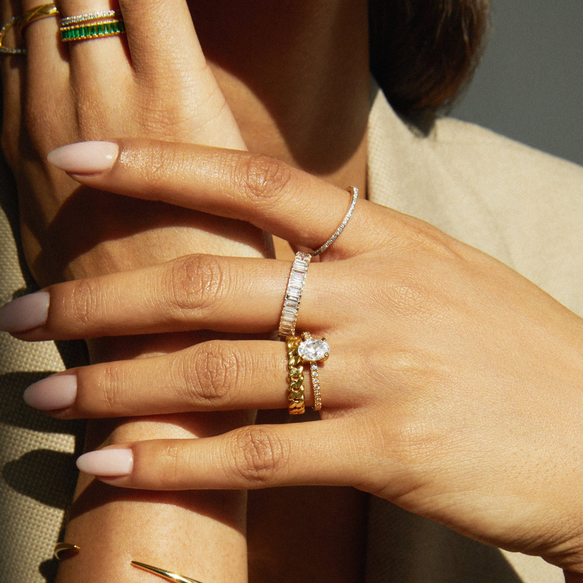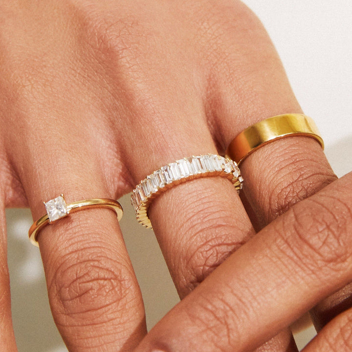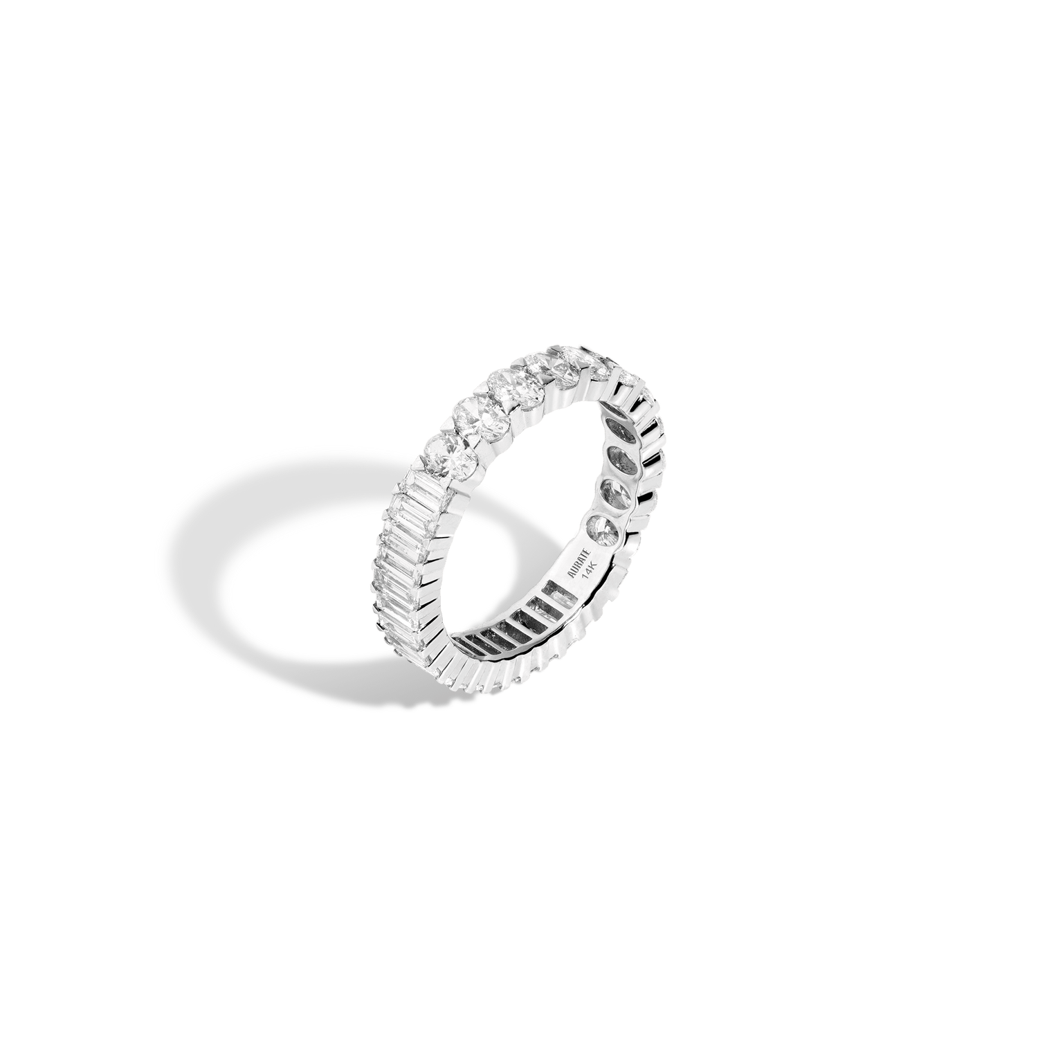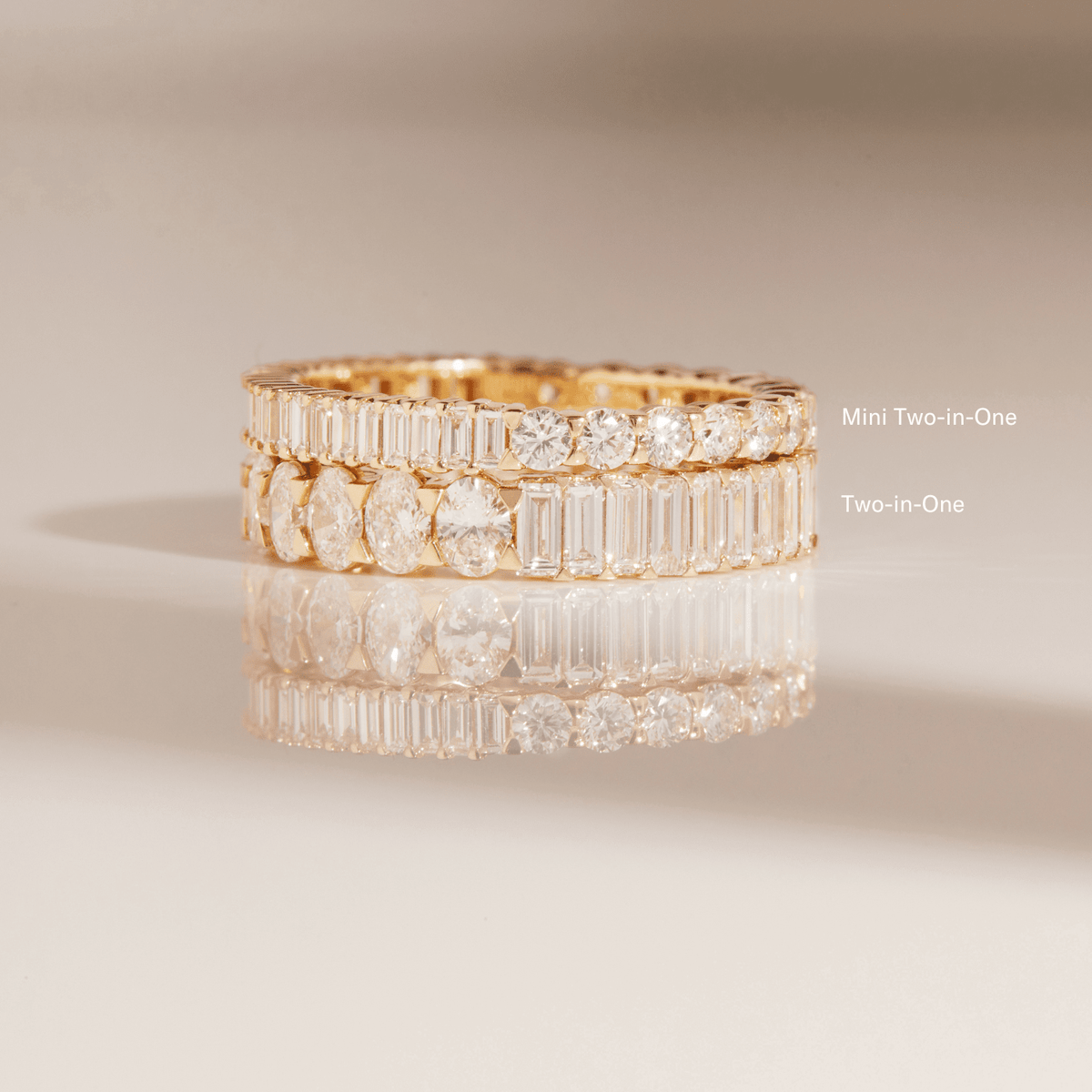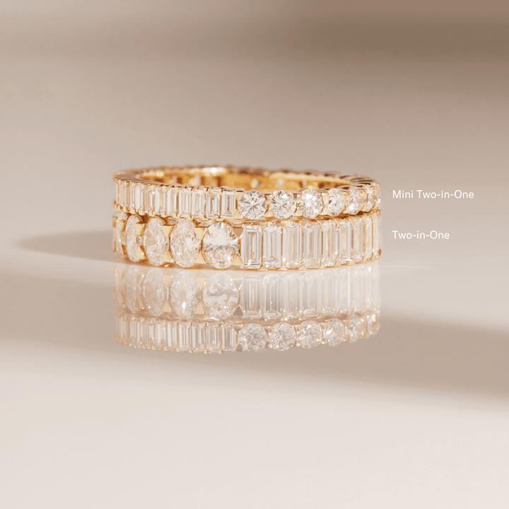 This Two-in-One Lab Grown Diamond Eternity Ring by Aurate in 14k gold is a contemporary twist on classic eternity. One side shimmers with oval cut diamonds, while the other gleams with baguettes — offering versatile sparkle in a single band. A bold yet balanced choice for the mindful modernist.