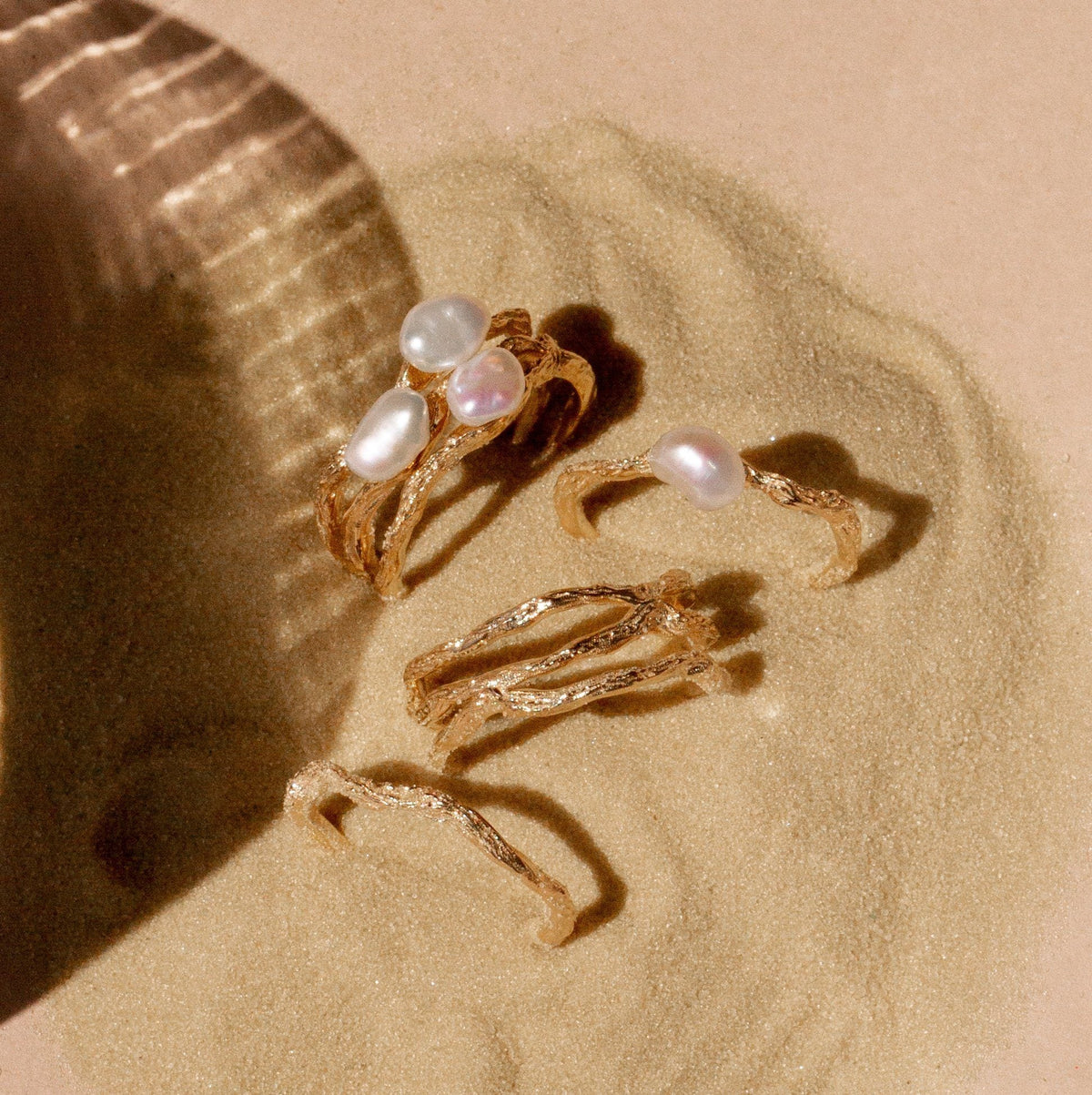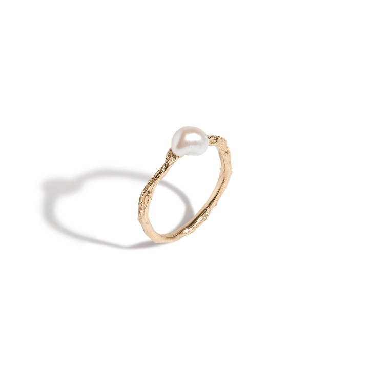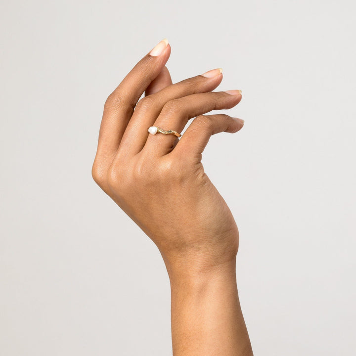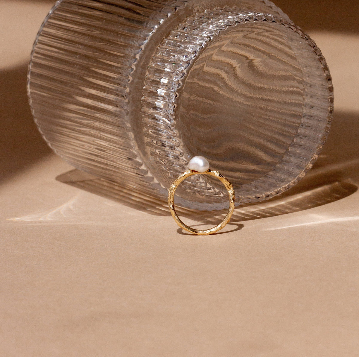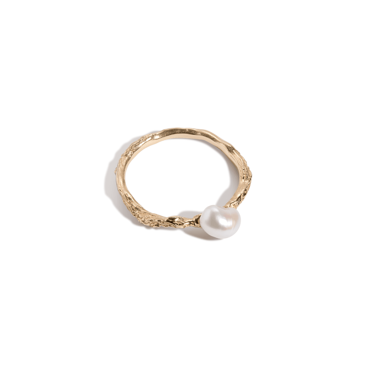 AURATE X KERRY: Venus Organic Pearl Gold Ring