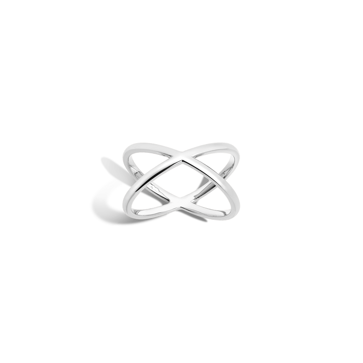 This X Ring by Aurate in 18k gold offers the same sculptural silhouette as its 14k counterpart, with added warmth and depth. The intersecting bands elevate any stack or stand powerfully alone for graphic, gold-forward elegance.