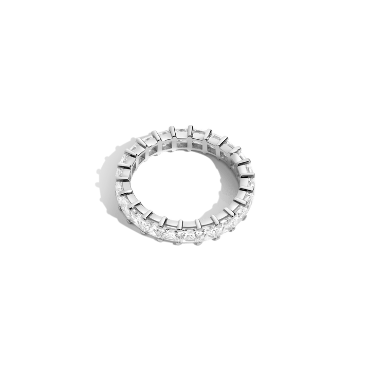 This XL Princess Cut Diamond Ring by Aurate is a true heirloom in the making. Featuring 4.4 carats of hand-selected princess cut diamonds, this eternity ring wraps your finger in continuous brilliance. The solid 14k gold setting enhances each meticulously placed 3x3mm diamond, designed to reflect maximum sparkle with architectural grace. Fit for a modern-day royal, it's elegance redefined.