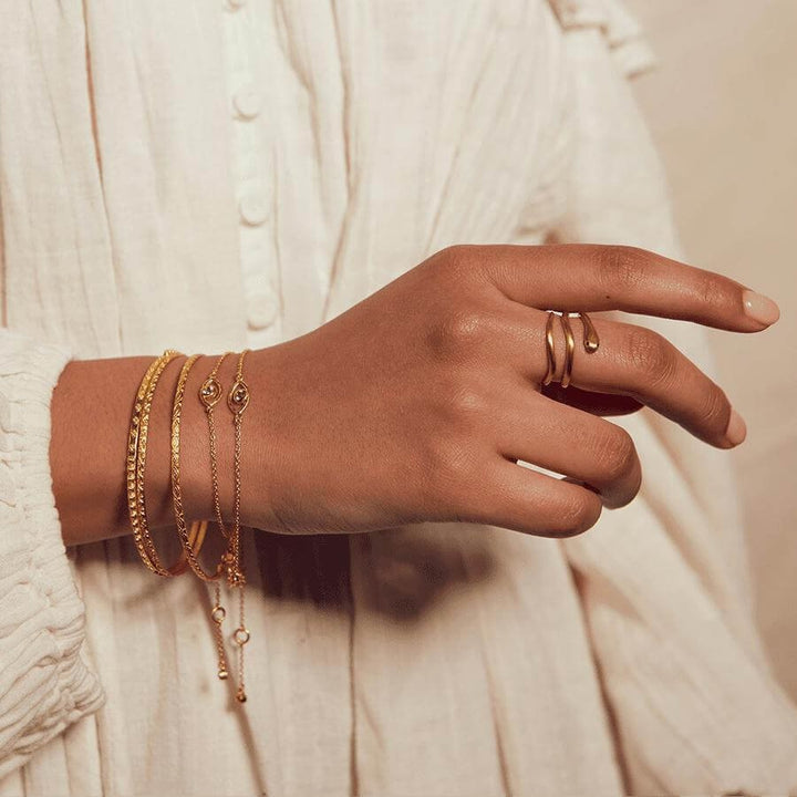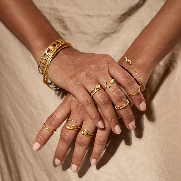 Satya Scainetti has been crafting inspiring jewelry designed for life's journey since 2002. Featuring sacred symbols and healing gemstones, each creation is infused with spiritual meaning to evoke empowerment and joy. Designed with intention in New York City, the jewelry is handcrafted with love in India, Thailand, and the USA, upholding the highest quality standards, ethical practices and social responsibility. Join the brand in supporting children through the Satya Foundation partnership.Style notes: Wrap your finger in one of nature's most elegant creatures with our coiled serpent ring. Featuring black eyes, the ring has just the right amount of sparkle.Price: Please note price may vary due to exchange rate differences or shipping, duties and taxes. Price may also vary with materials choice. Final price is calculated at checkout at the designer's website. Materials: 18k gold plated brass with serpent.