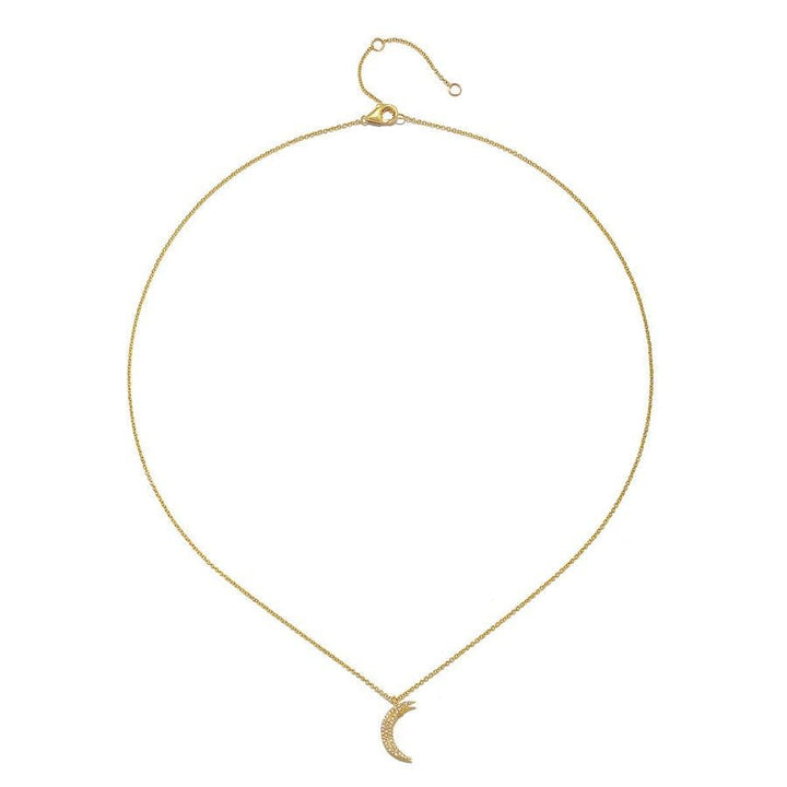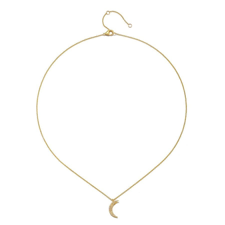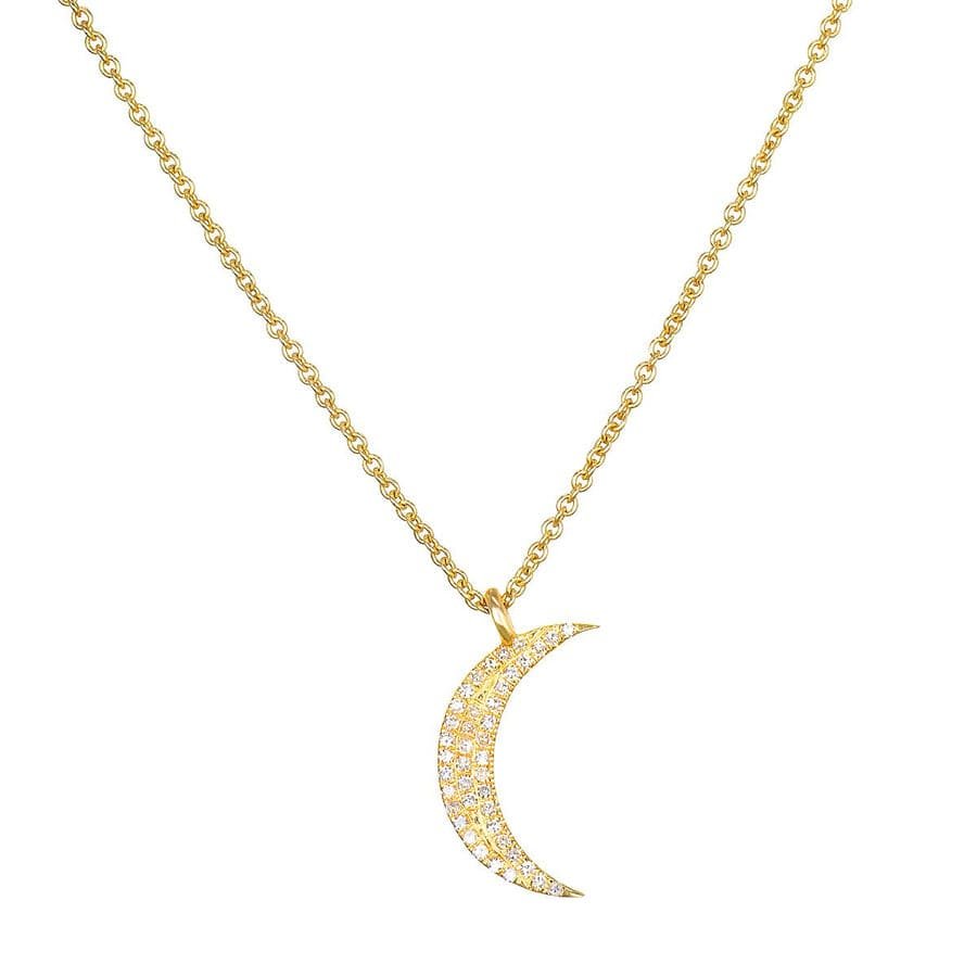 Satya Scainetti has been crafting inspiring jewelry designed for life's journey since 2002. Featuring sacred symbols and healing gemstones, each creation is infused with spiritual meaning to evoke empowerment and joy. Designed with intention in New York City, the jewelry is handcrafted with love in India, Thailand, and the USA, upholding the highest quality standards, ethical practices and social responsibility. Join the brand in supporting children through the Satya Foundation partnership.Style notes: The brilliant glow of the moon reminds us to let our souls radiate light, so we may share our beauty with the world. A 14kt gold crescent moon-symbol of nourishment, protection, and the goddess- is bejeweled with diamonds, creating a pendant necklace worthy of becoming a cherished heirloom.Price: Please note price may vary due to exchange rate differences or shipping, duties and taxes. Price may also vary with materials choice. Final price is calculated at checkout at the designer's website. Materials: 14k yellow gold with 0.08ctw single cut diamonds, SI1 clarity, G-H color. Dimensions: Pendant size - 13.5 x 8mm. Necklace length - 16' + 2' extension.