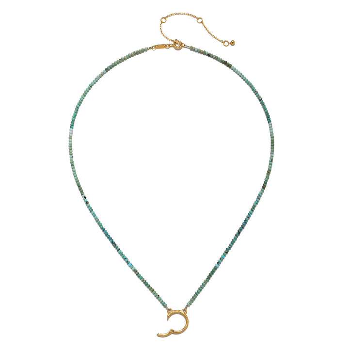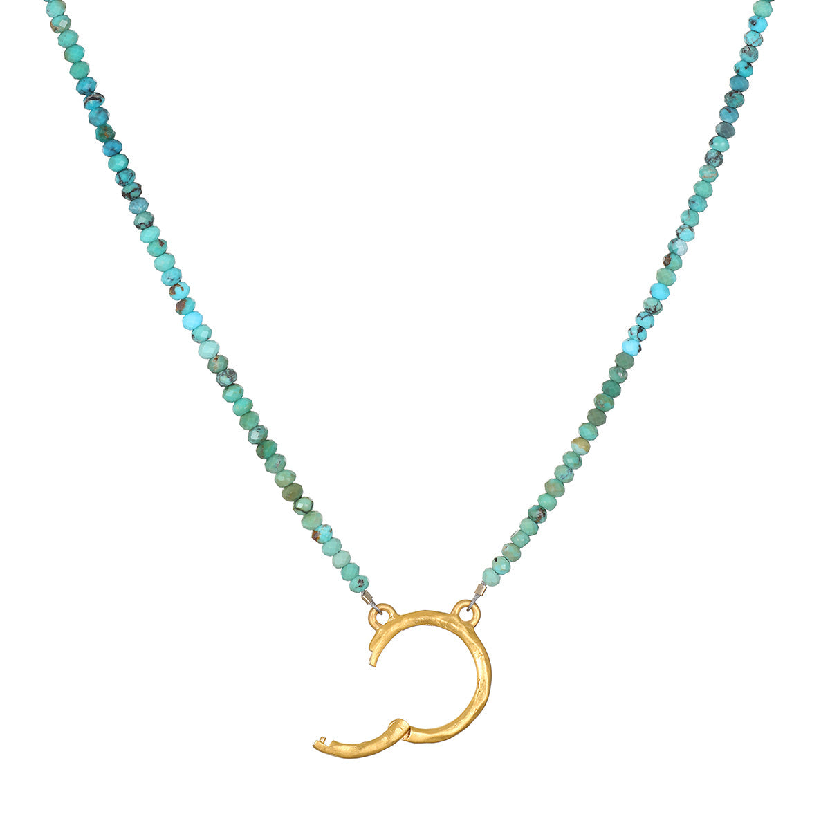 Create a unique talisman with this 16' charm holder necklace, featuring delicate turquoise beads that enhance health, intuition, and self-expression. The hammered 18kt gold plate charm holder opens to hold empowering charms, allowing you to easily add or swap out charms to inspire your personal journey. Whether worn alone or layered with other pieces, this necklace is designed to make a meaningful statement.