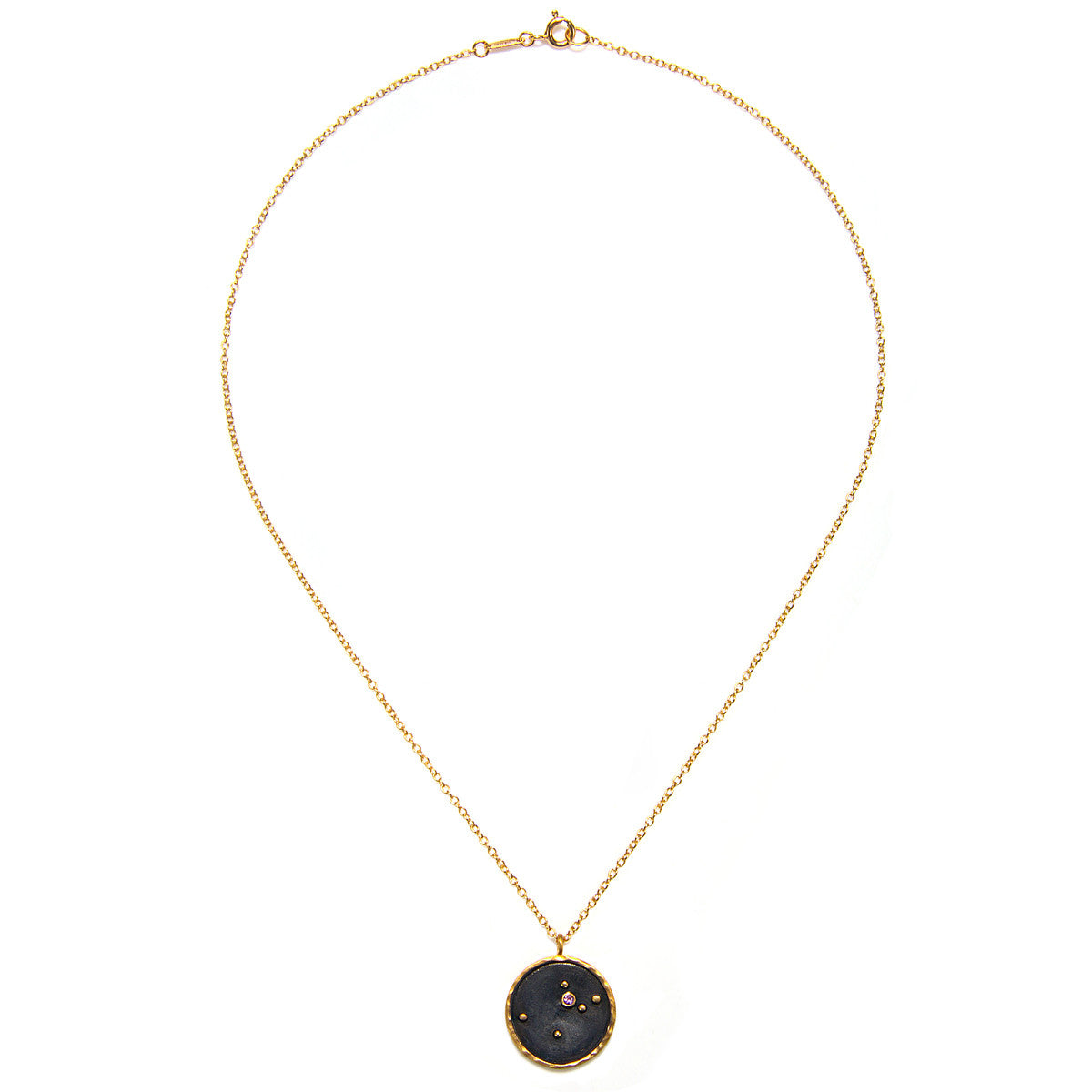 Pendant diameter: 0.8', Necklace length: 18', 18kt gold plate over brass