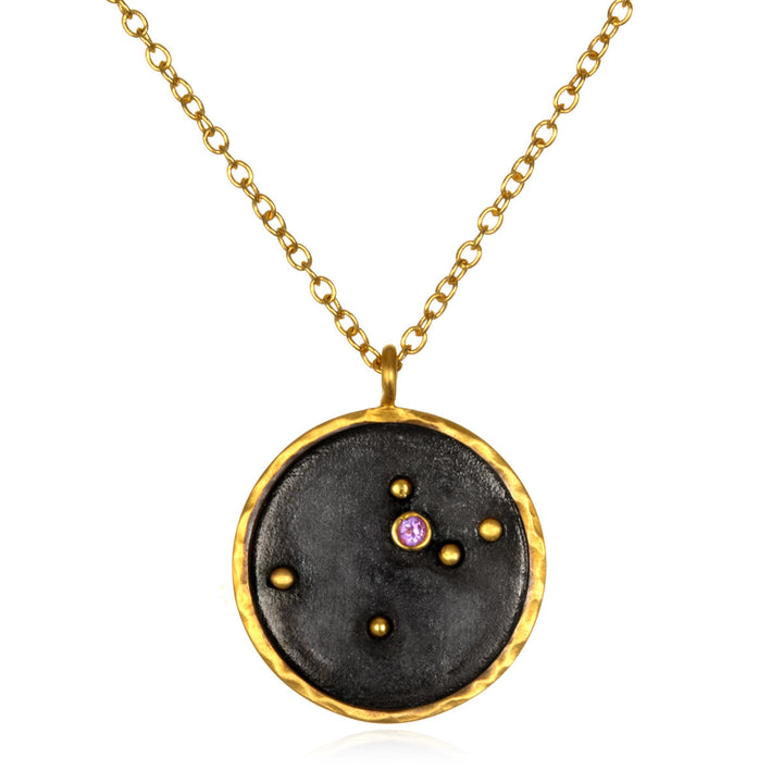 Aquarius, the Water Bearer, symbolizes beauty, humor, and the spirit-lifting joy you bring to those around you. Amethyst, the birthstone for Aquarius, promotes love and spiritual growth, making this necklace a meaningful choice for everyday wear.