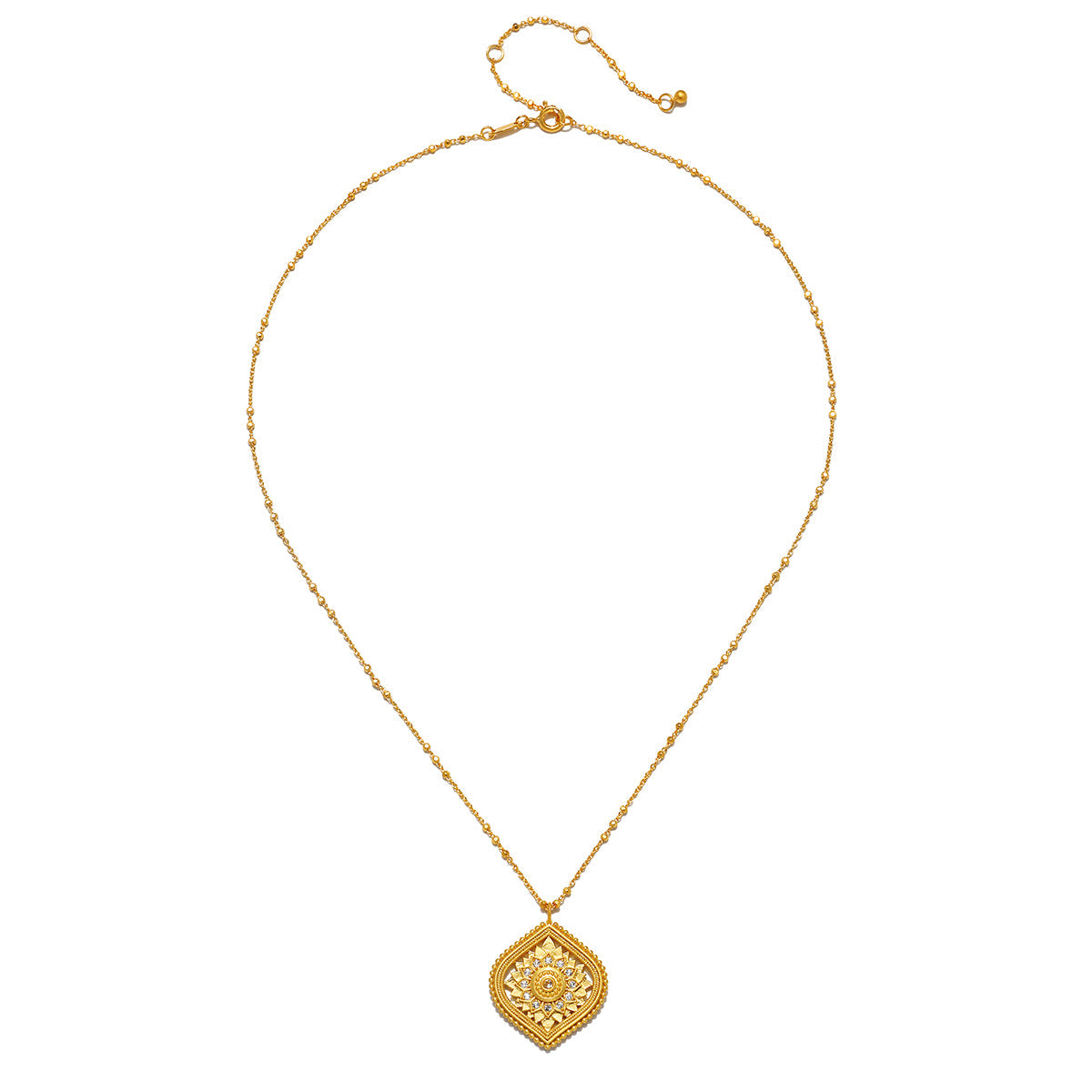 Pendant size: 26 x 25mm, Necklace length: 18' + 3' extension, White topaz, 18kt gold plate over brass