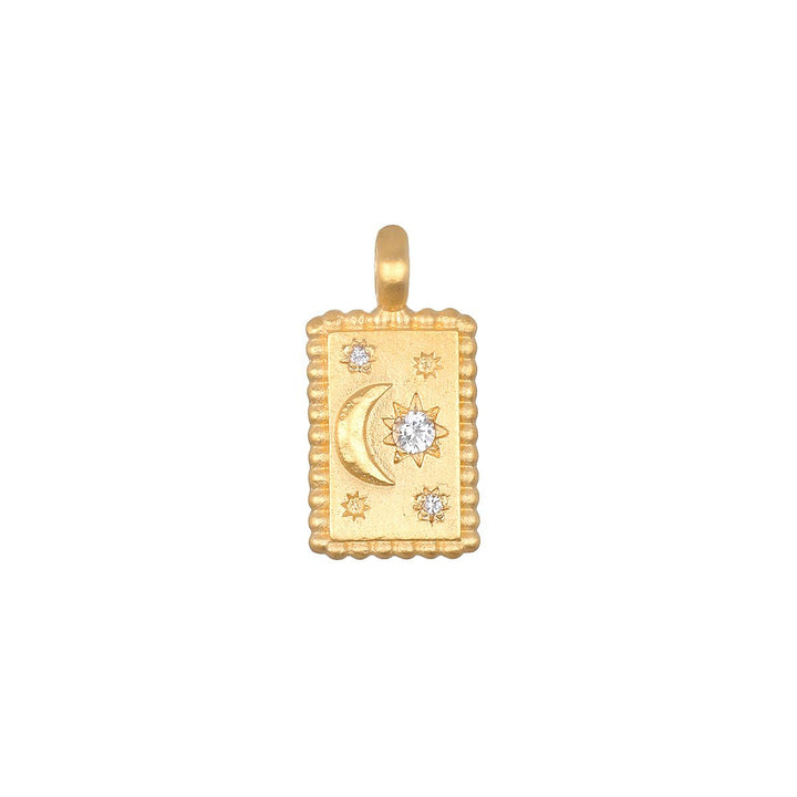 The celestial rectangle charm symbolizes the moon’s nourishing, protective qualities and the star’s guiding, inspirational light. This charm adds a personal touch to any necklace, perfect for expressing individuality and creativity with the shimmer of white topaz stones.